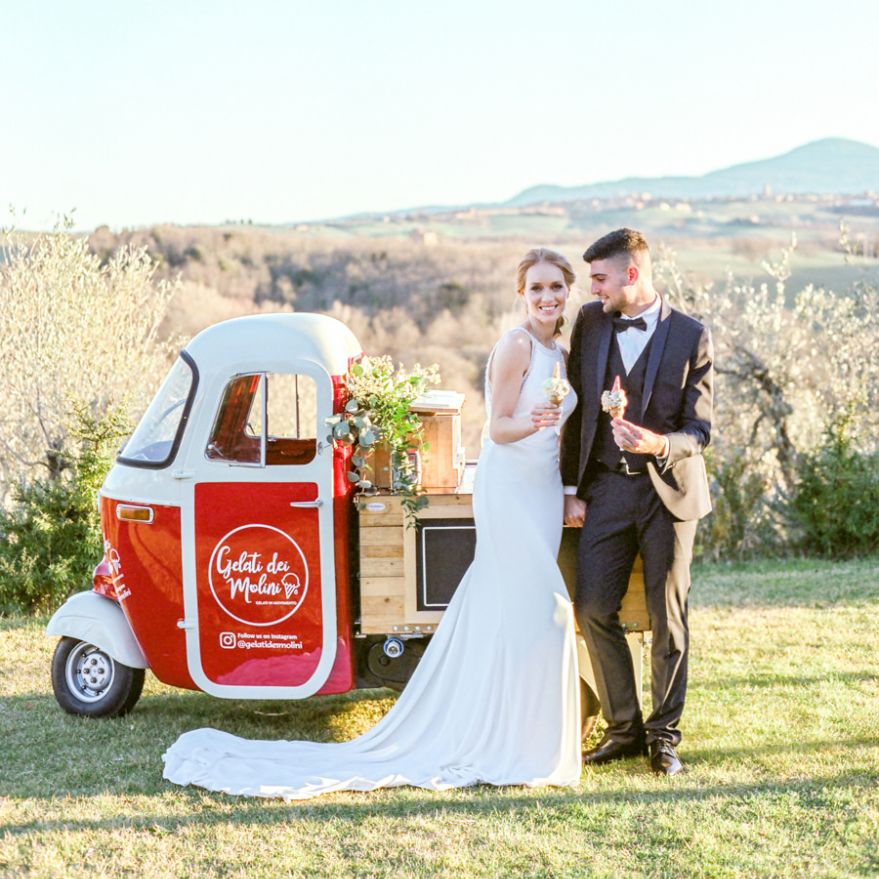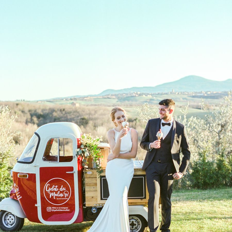 Tuscany Wedding Venue with Vintage Bicycle and Gelato Ice-Cream Truck