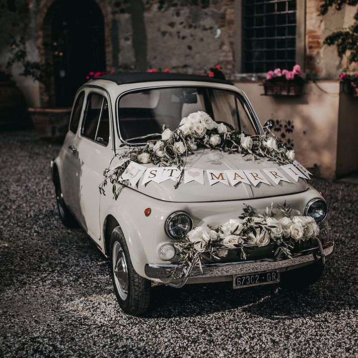 Black Fiat 500 Wedding Car for a Chic Destination Wedding in France