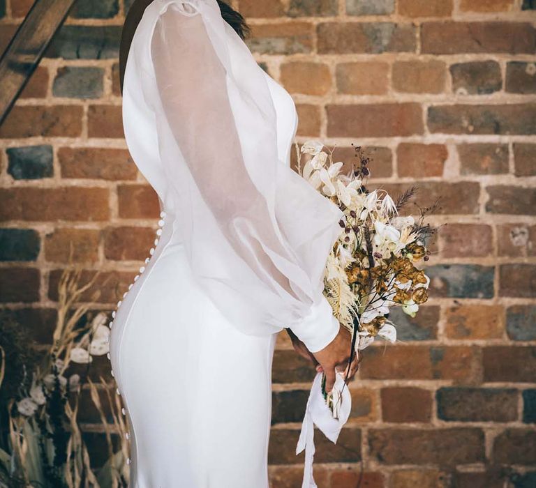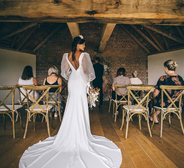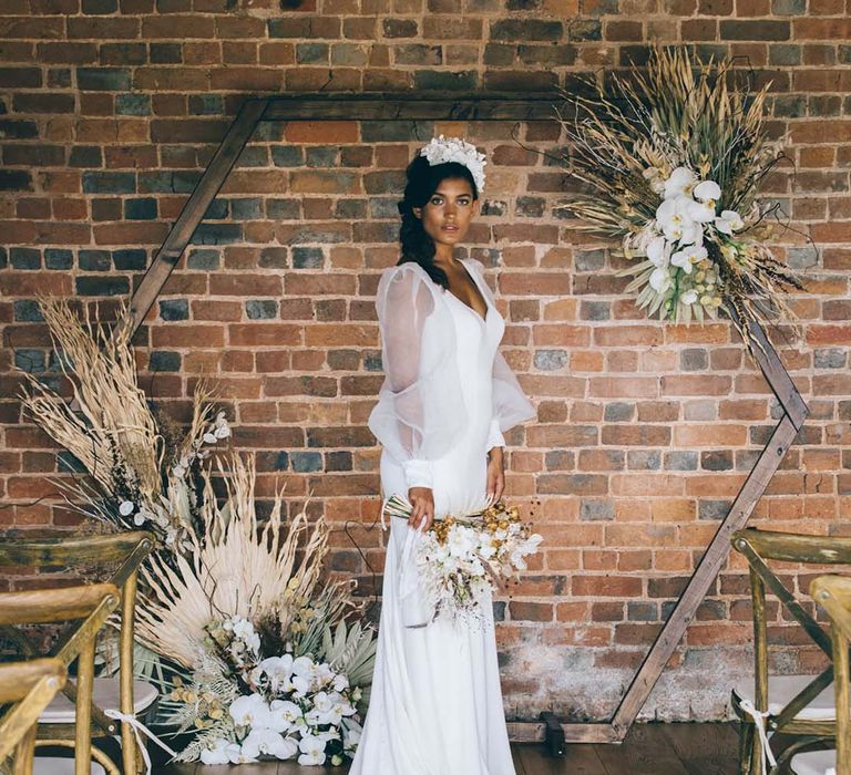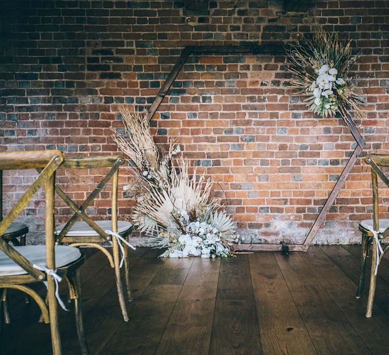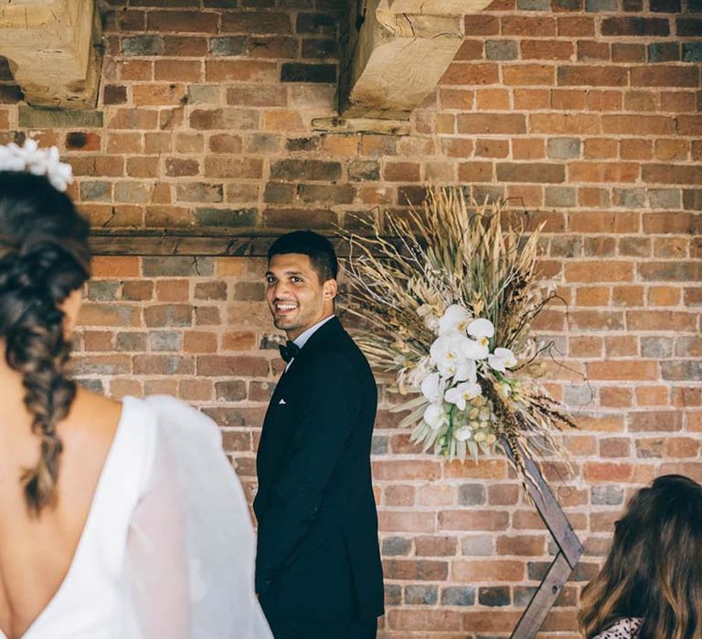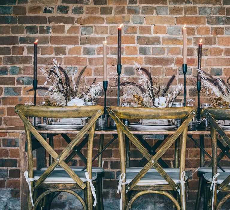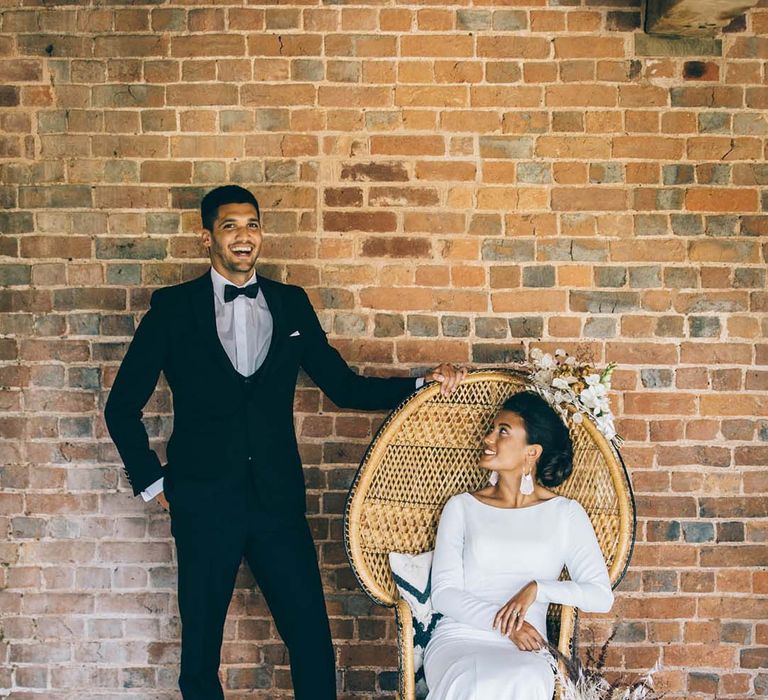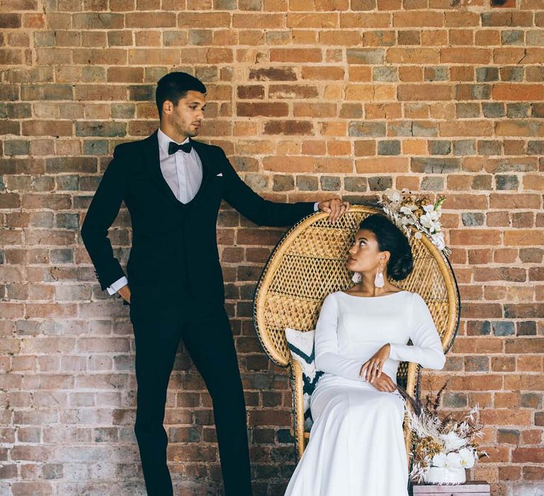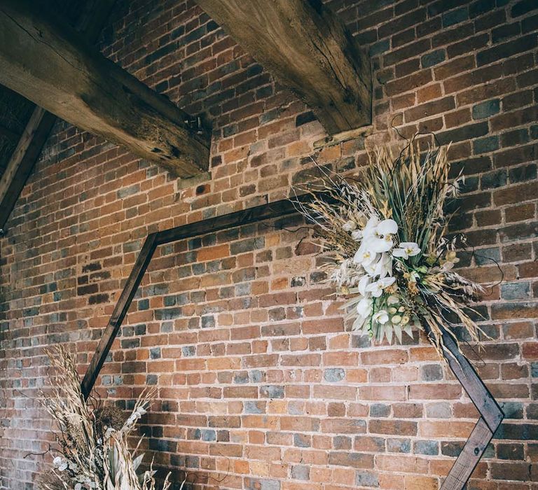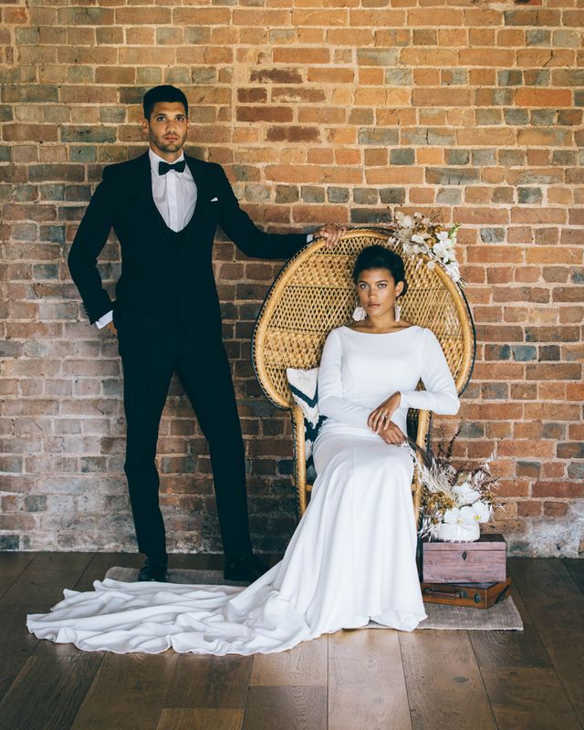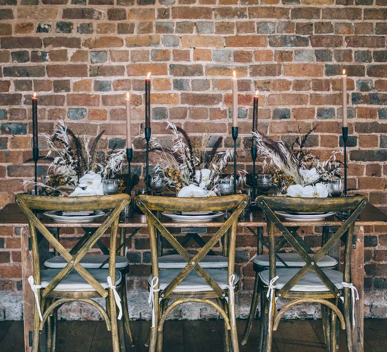 Our vision was to create luxe boho black tie modern styling in a rustic Devon barn and vineyard setting.