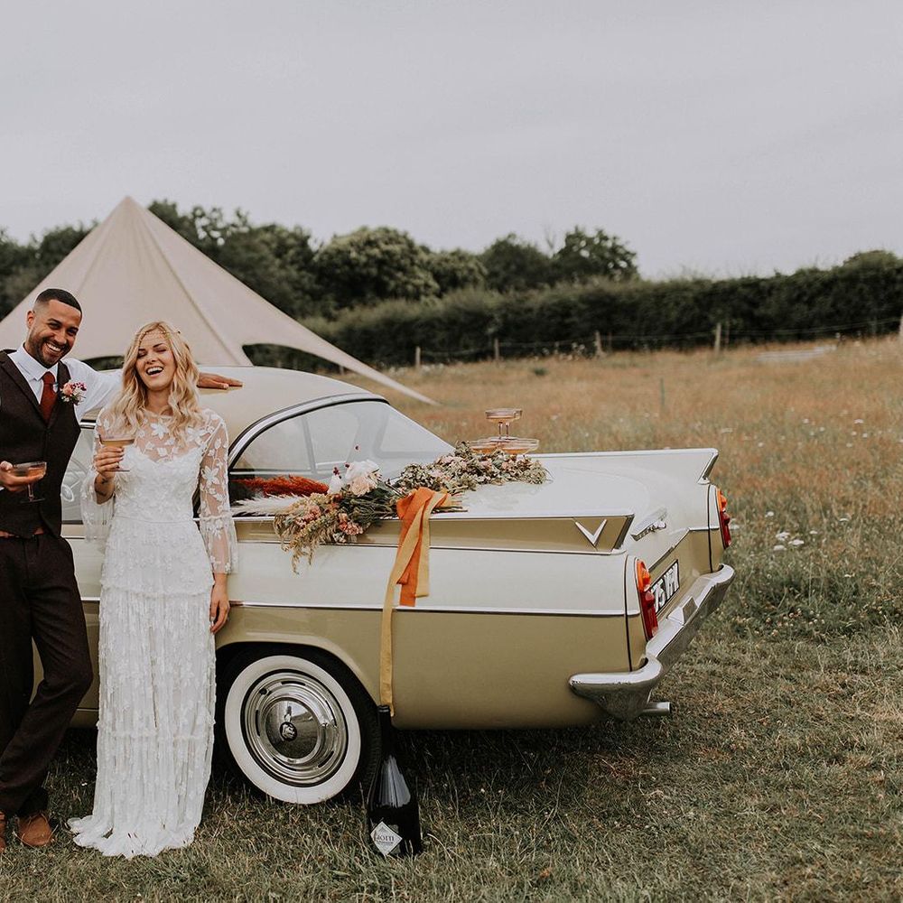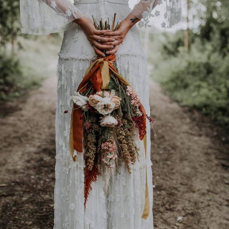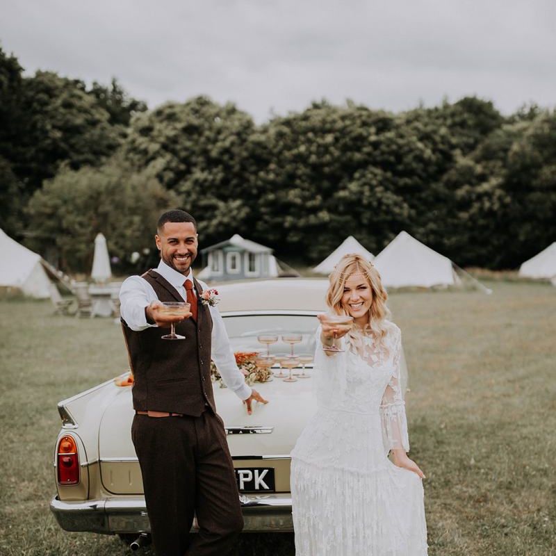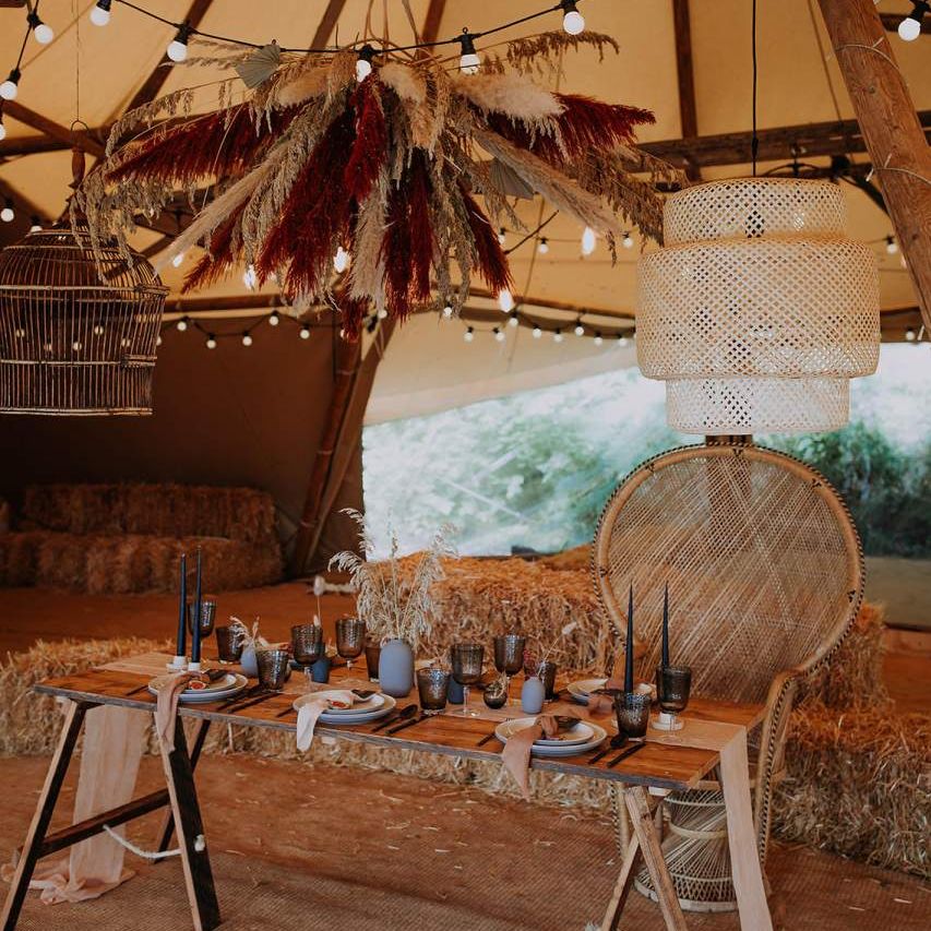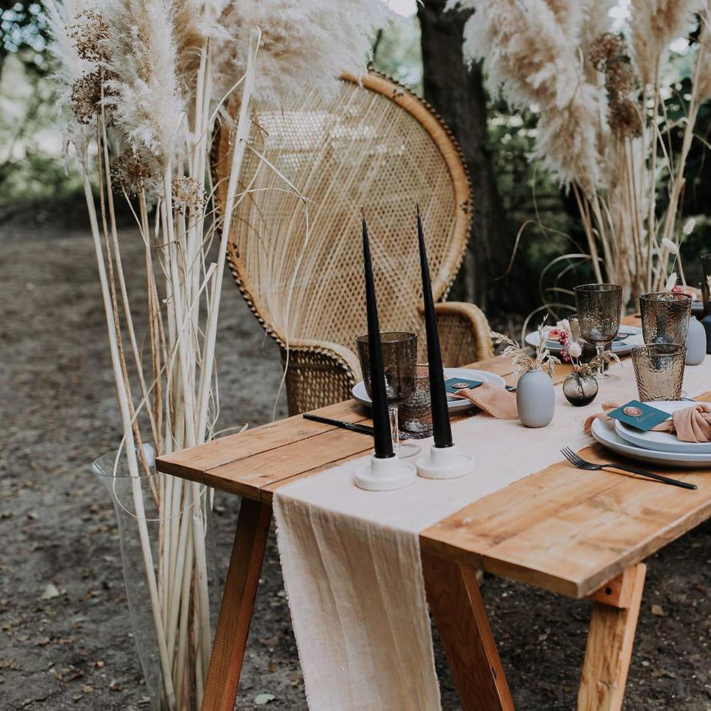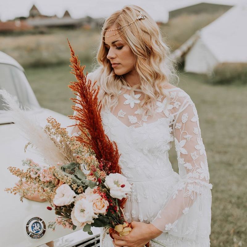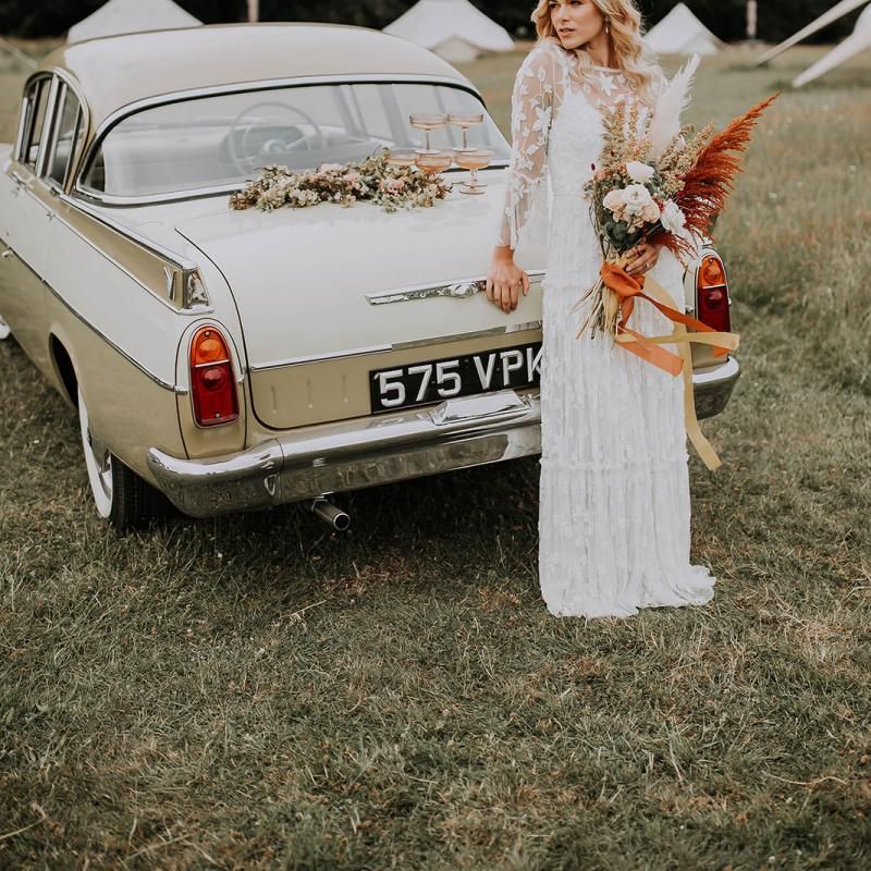 Charlie Westlake and Wilderness Weddings teamed up with event design creatives at Idyllic Days, to bring the warm colours and feelings of the desert meets boho look. Fabulous Ester & Erik candles, deep rust and apricot hues filled the venue, along with a food lovers dream in the form of a 6 foot grazing table, vintage car and plum champagne coupes. A perfect fit for any boho brides!"