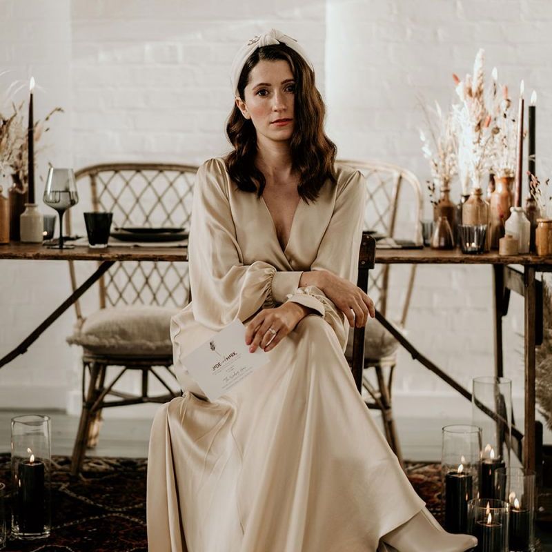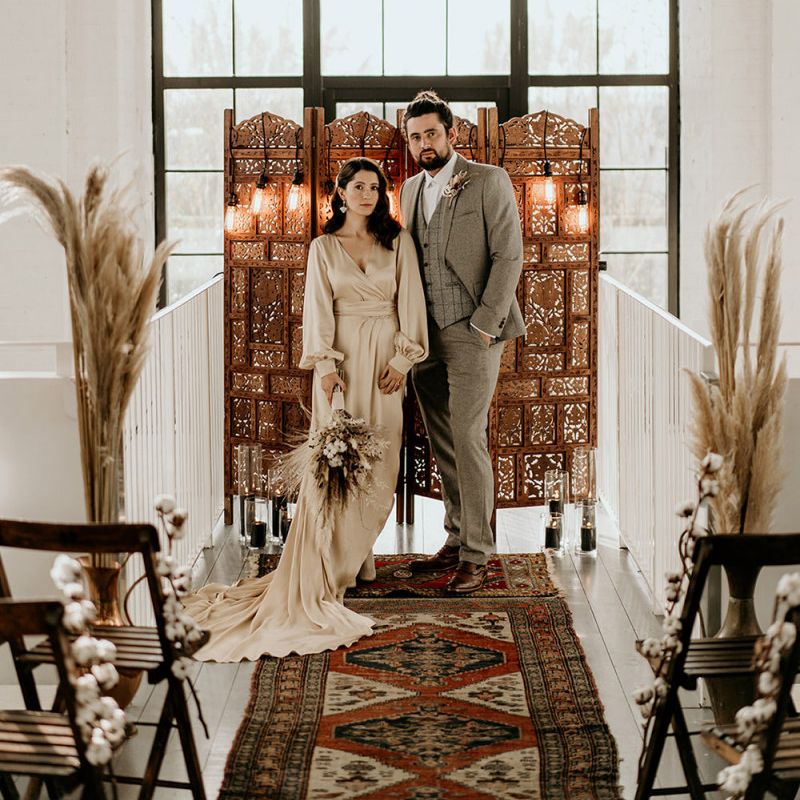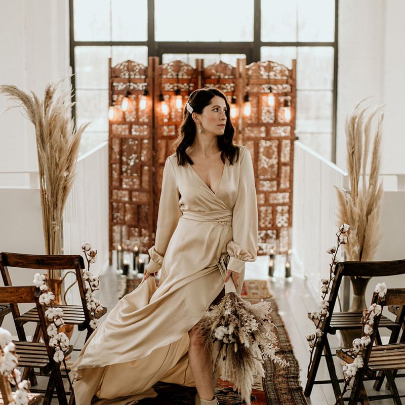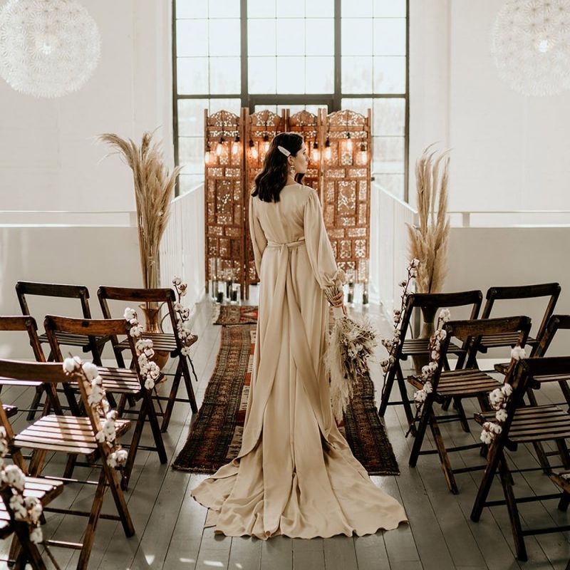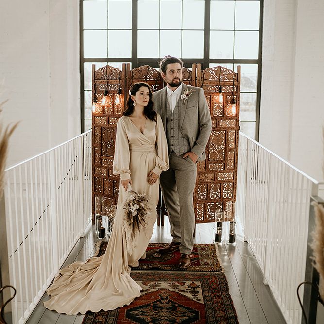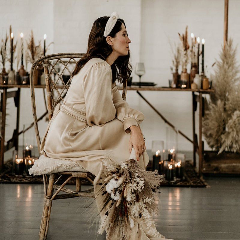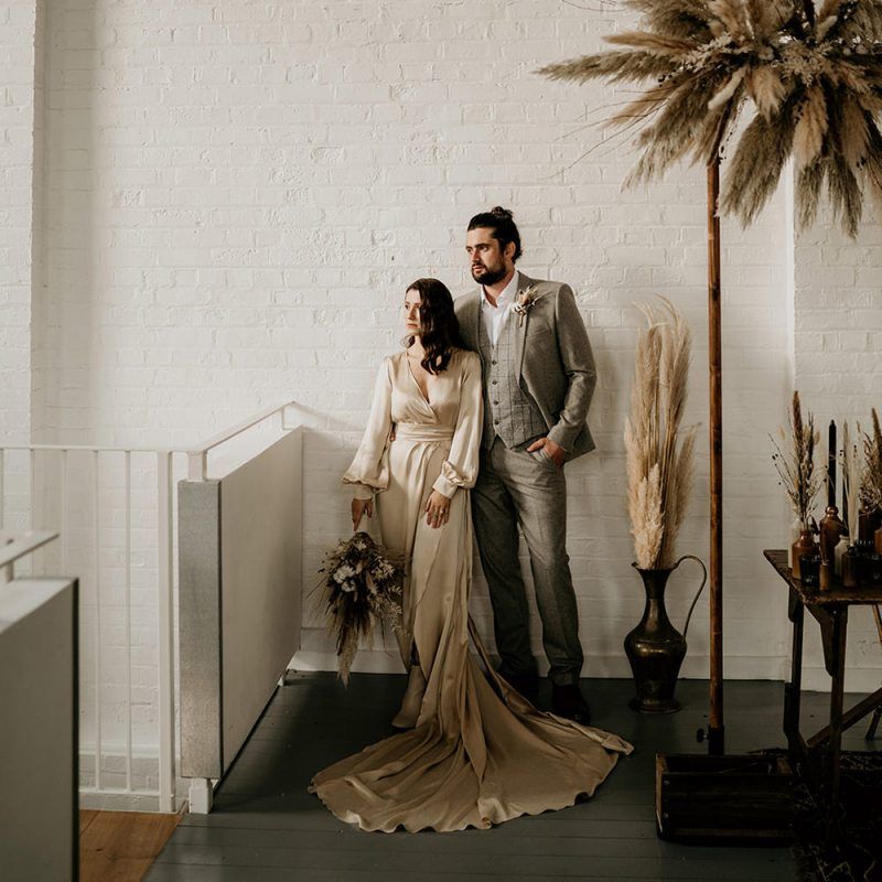Neutral tones, natural fabrics and luxury touches for a stylish industrial shoot with bohemian references.