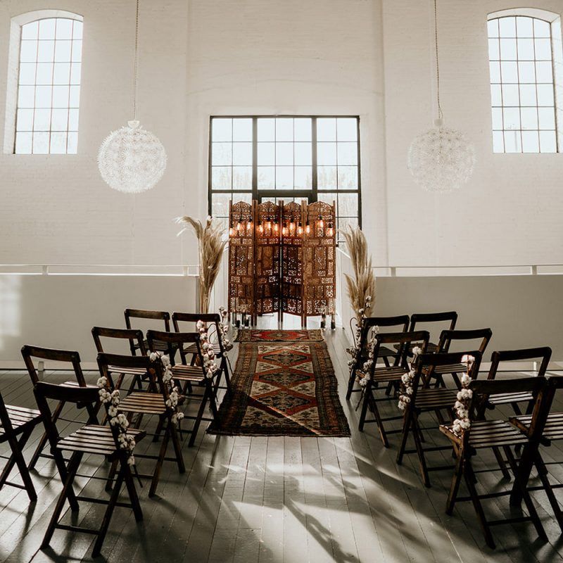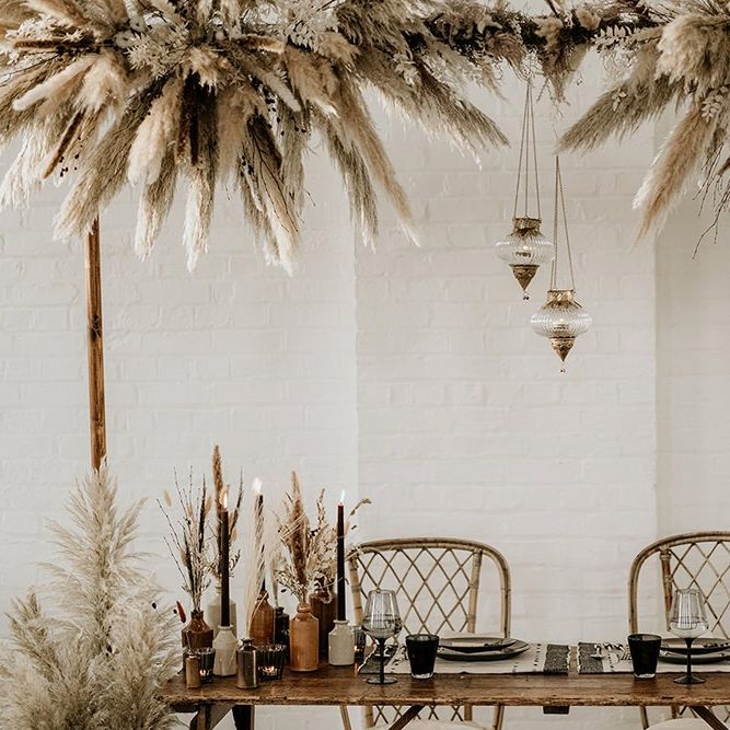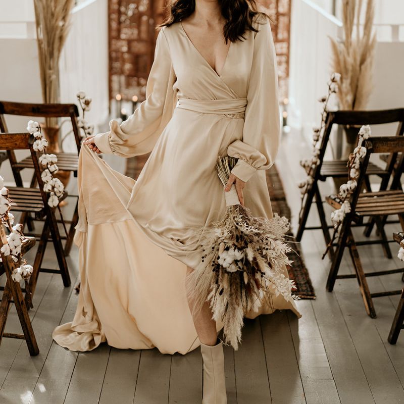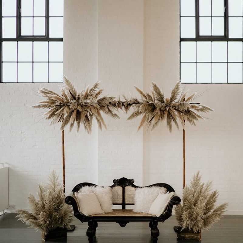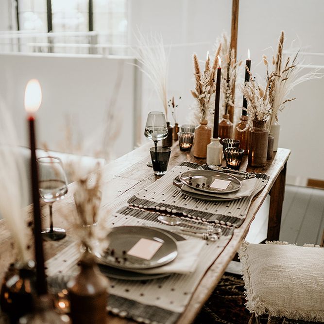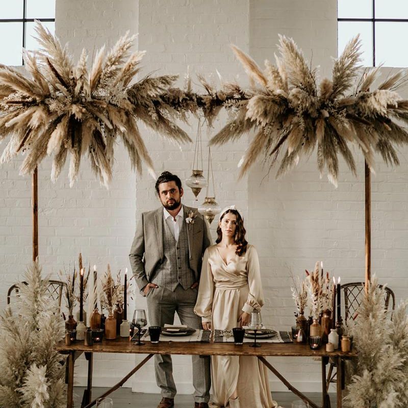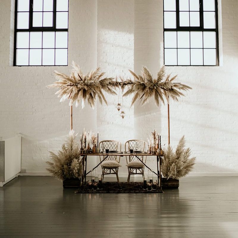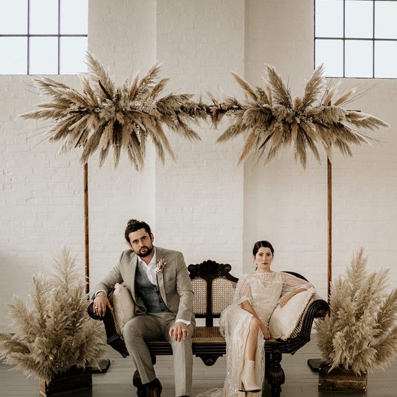 Neutral tones, natural fabrics and luxury touches for a stylish industrial shoot with bohemian references.