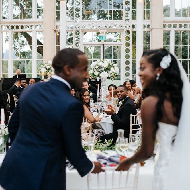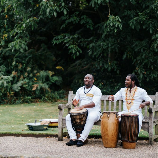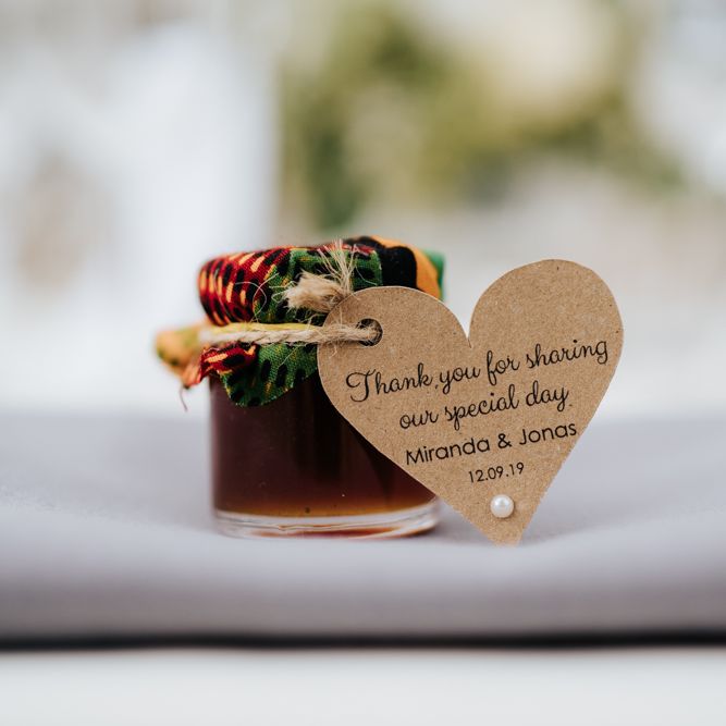 Whilst maintaining a traditional air of a black-tie wedding, we ensured that we included indications of our Ghanaian heritage. This was provided by way of traditional Ghanaian drummers who performed during our cocktail hour and table-settings in form of handmade Ghanaian honey jars, which we hand-finished with traditional “Kente” cloth. Finally our wedding goody bags including personalised bars of Ghanaian chocolate, handmade “Bolga” fans and “Kente” cloth notebooks.