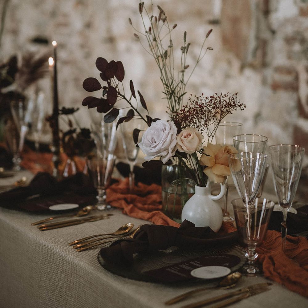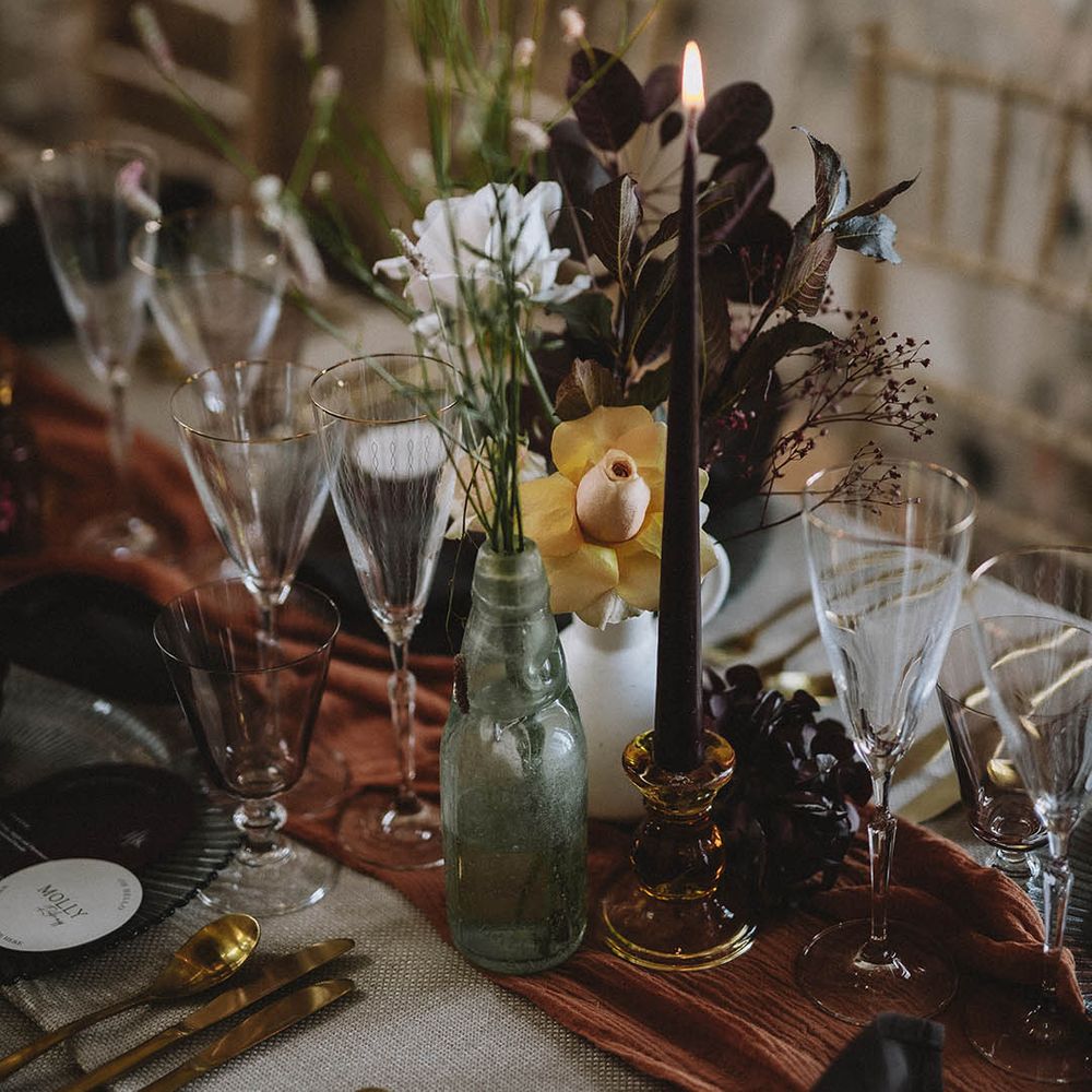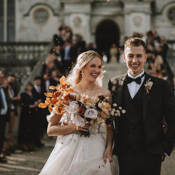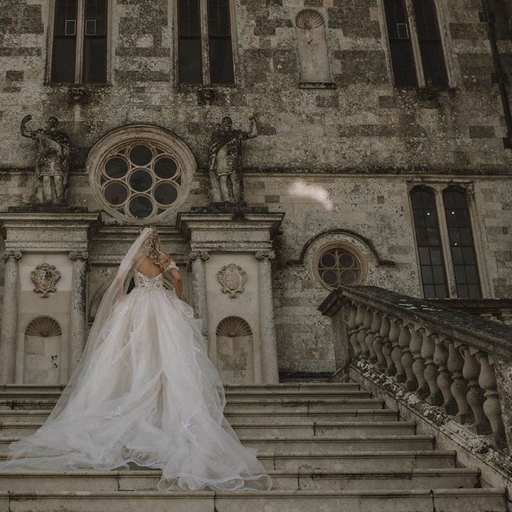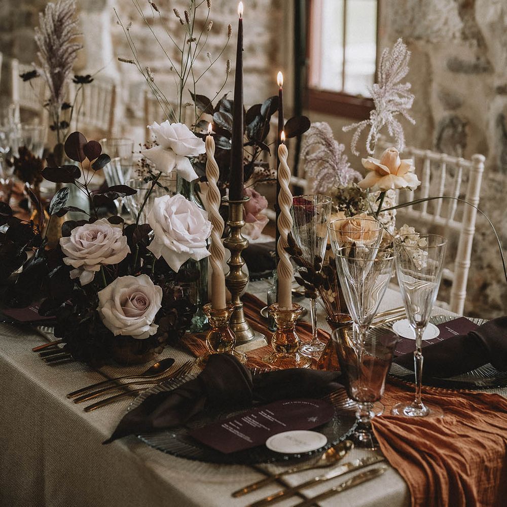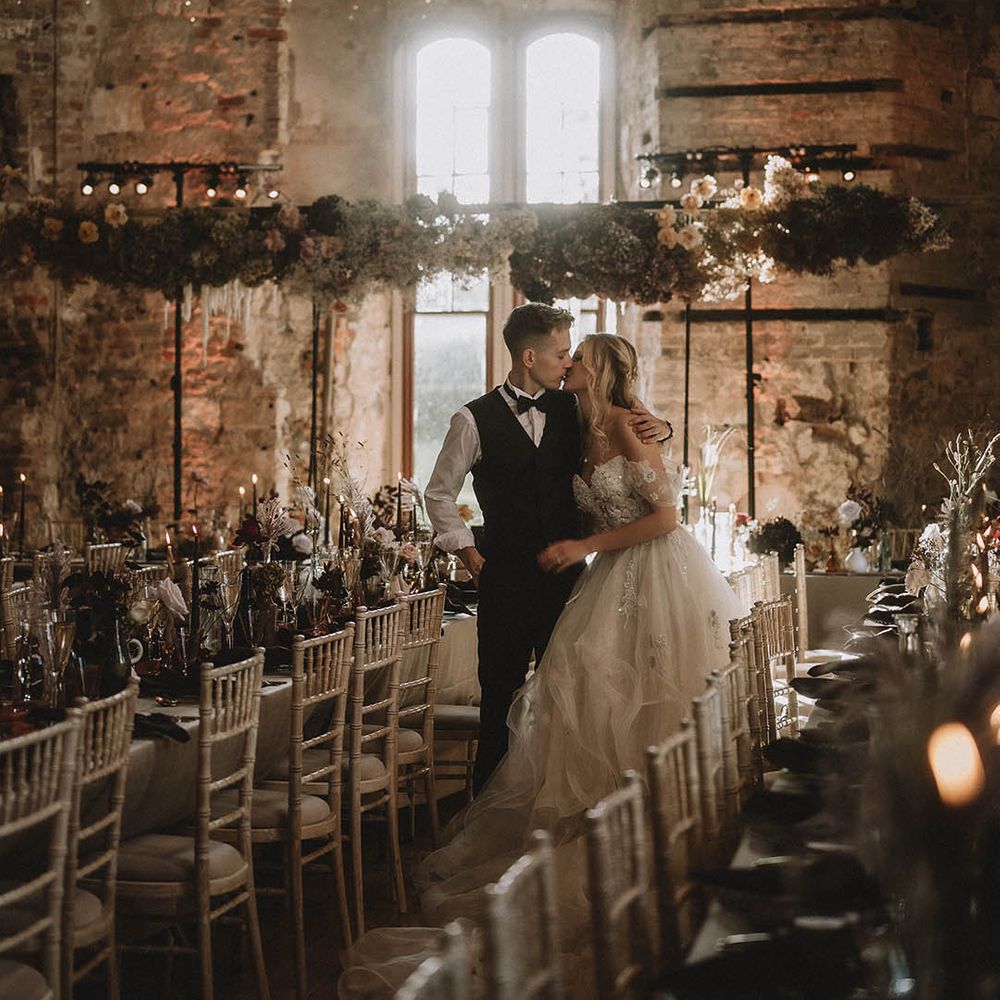 The incredible venue, complemented by the insane styling, came together beautifully to create the perfect atmosphere for our fairytale wedding. It felt warm and intimate, despite being a Grade 1 listed castle that had been almost destroyed by fire 100 years ago.