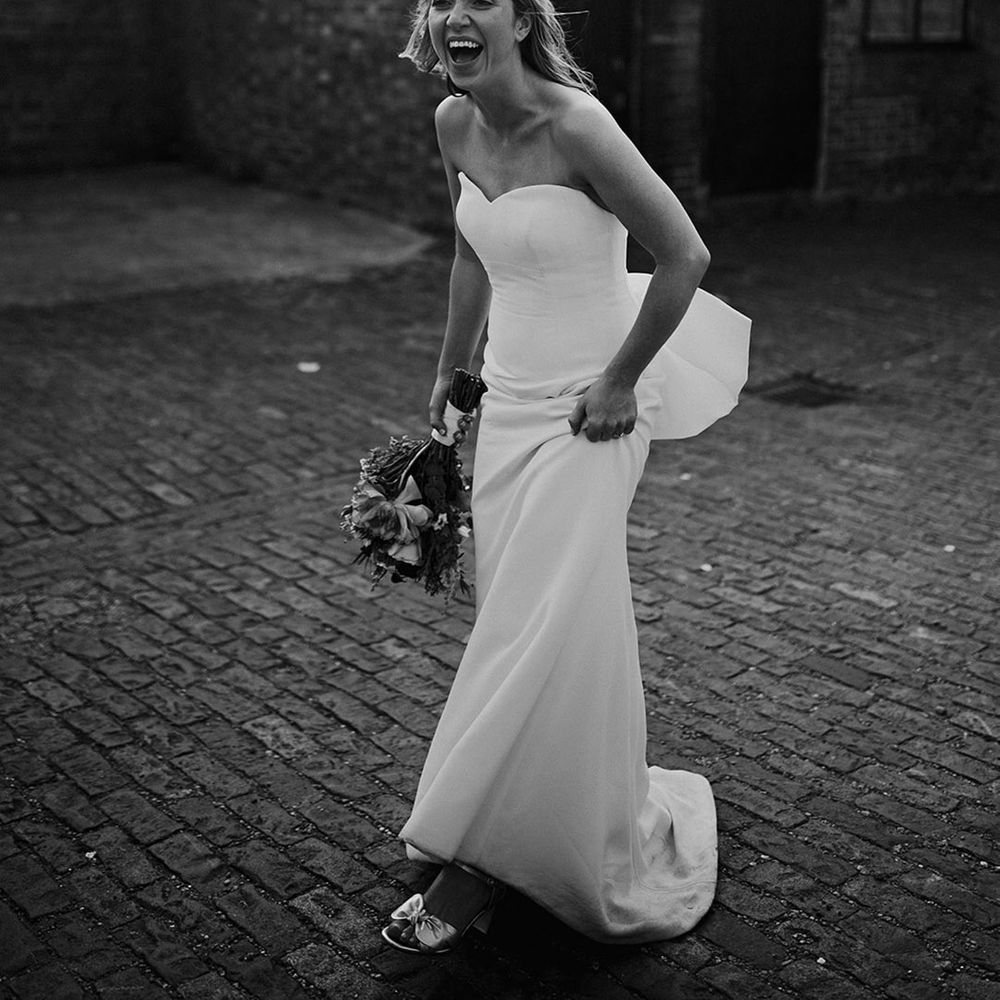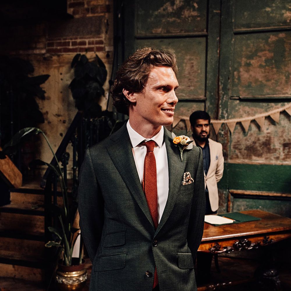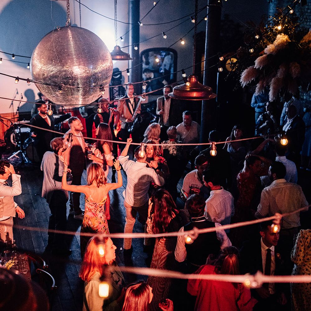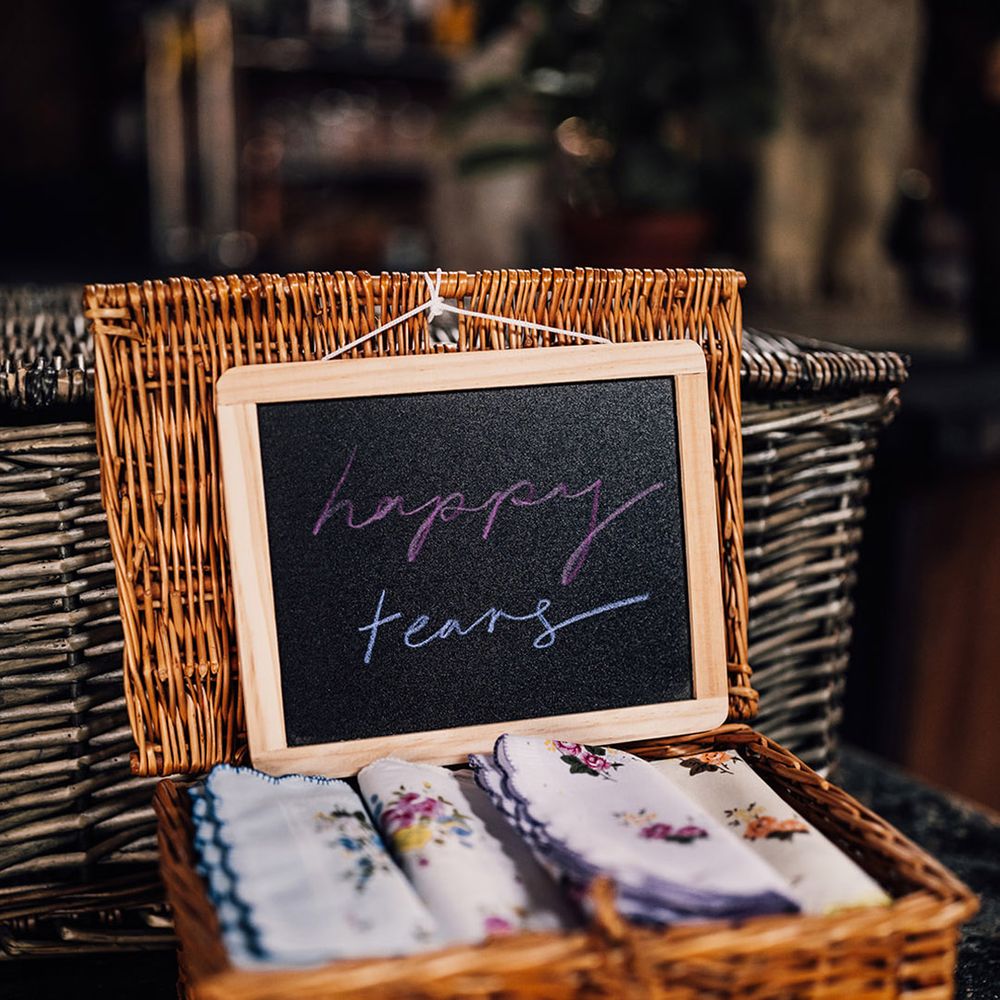 A massive shout-out to the musicians on the day. We had Solas String - an incredible trio quartet playing music at our drinks reception. Soul Factor, our band, STOLE THE SHOW as they performed in the evening - the garage remix was insane and a highlight for us! We didn't have enough time to create a photo wall, so we visited charity shops the week before the wedding and collected a bunch of frames that we popped family photos in and displayed inside the ceremony room. Our amazing artist friend Alma Singer designed all the signage on the day, table favours (badges), and names on the menus.