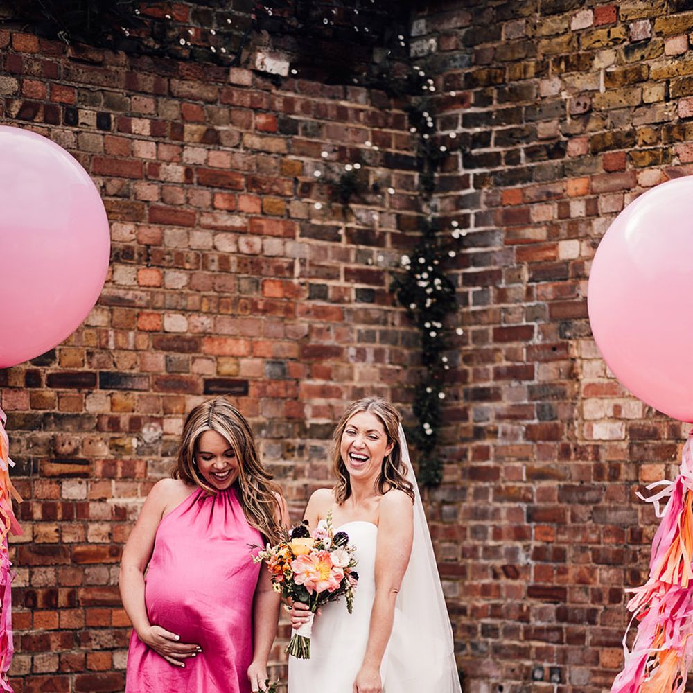 We’ve also shared pregnant bridesmaid Lizzy’s wedding at The Cherry Barn earlier this year! The bride, Charlotte, was also a bridesmaid at Lizzy’s wedding. How sweet that these ladies have been there for each other through such magical milestones!