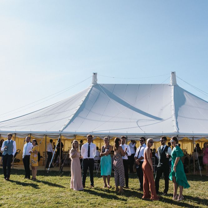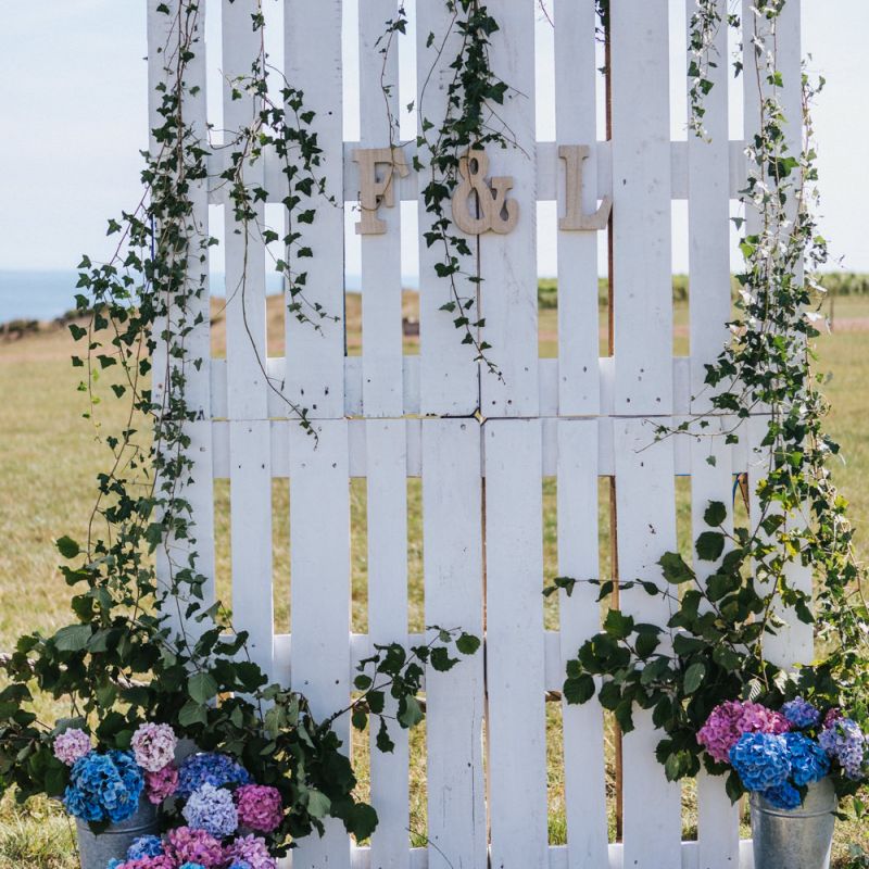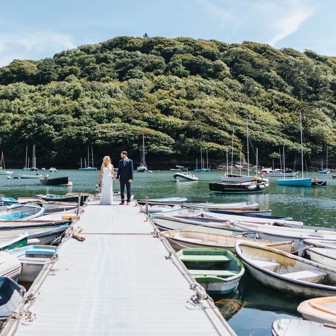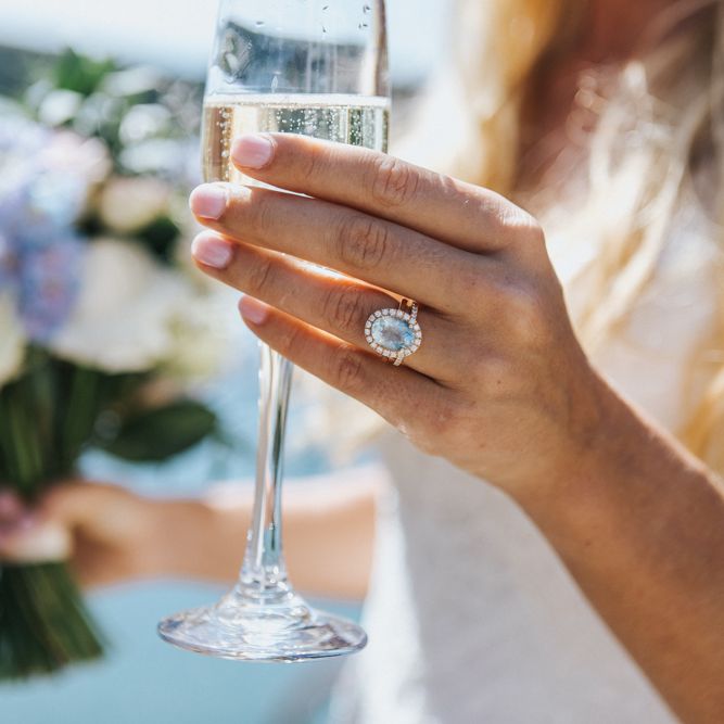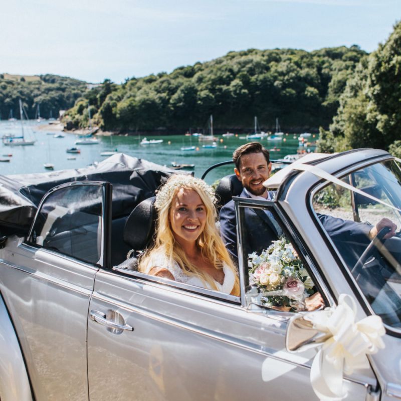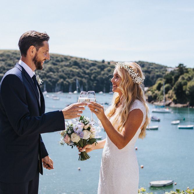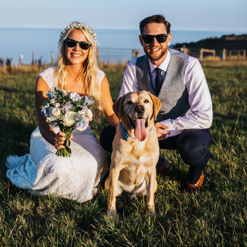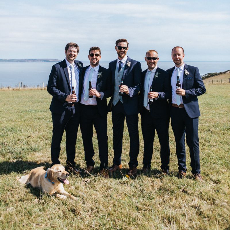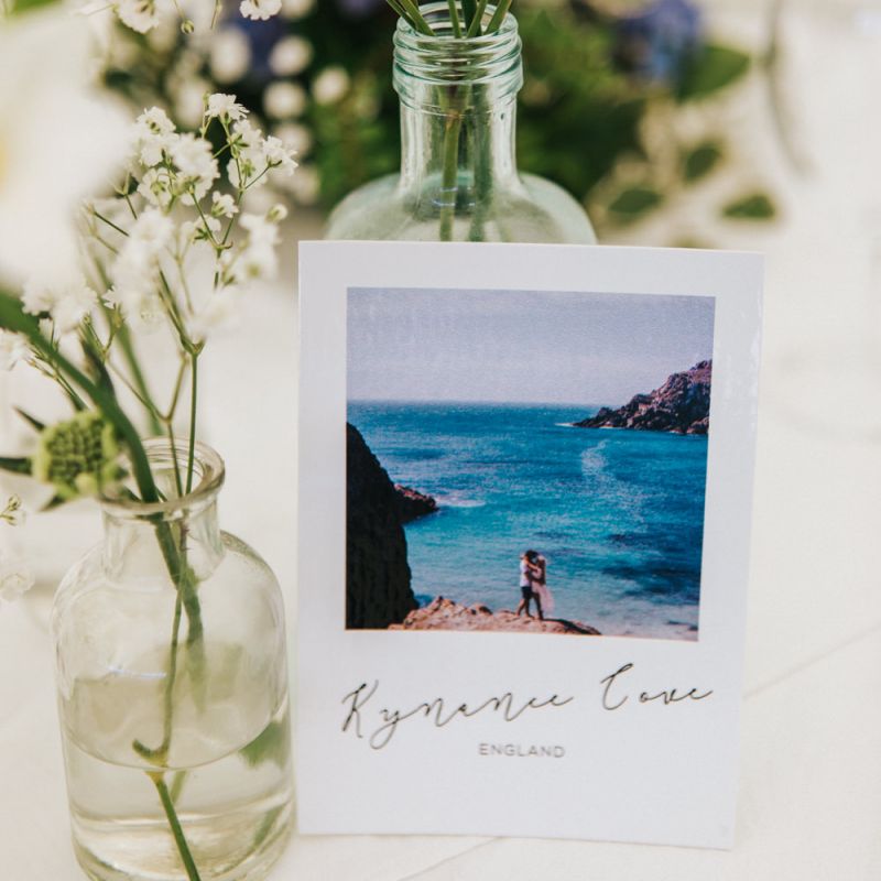 Having got engaged (with the most incredible aquamarine ring!) on the tidal beach at Kynance Cove we wanted to keep a coastal theme throughout our day. We decided on having a relaxed marquee wedding overlooking the sea. The bridesmaid's dresses, wedding cake and even my shoes were sea blue! Our table names were all beaches from around the world that we had travelled to together and welcome drinks were served from a boat. Lots of our family and friends camped in the wedding field that night and as we didn't want to miss out on the fun, the bridal suite was a bell tent closest to the sea.