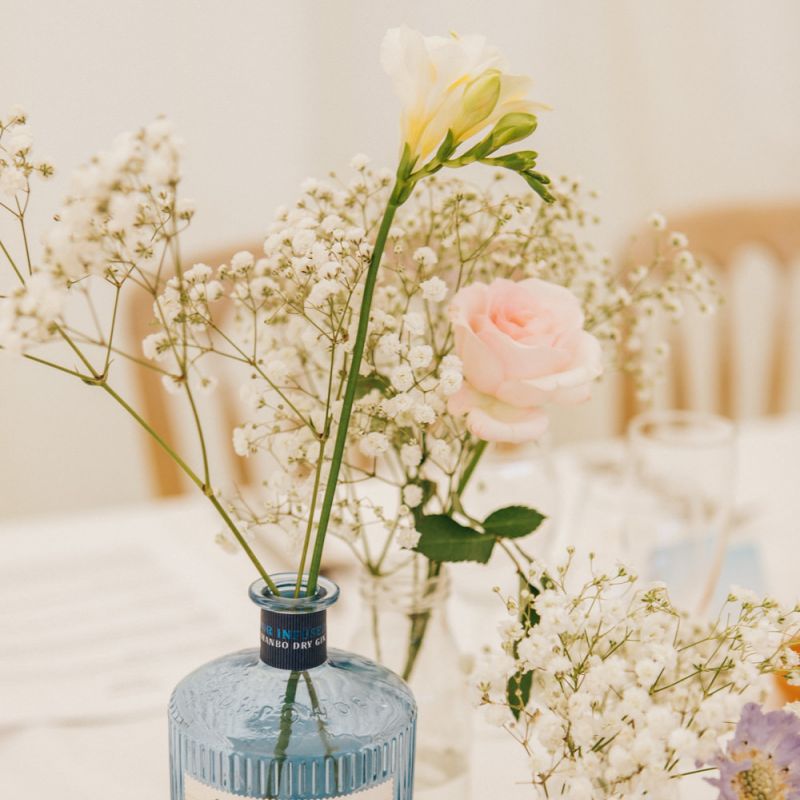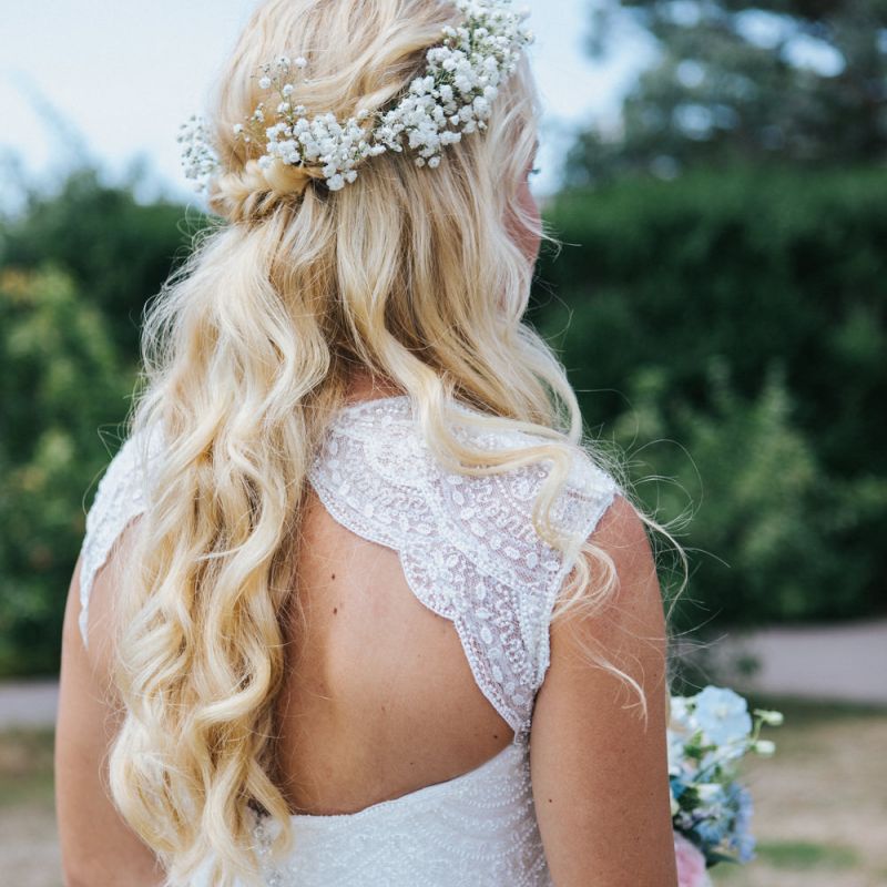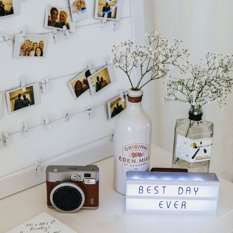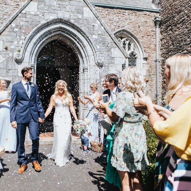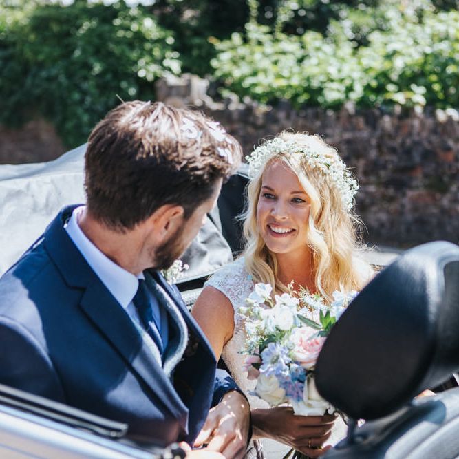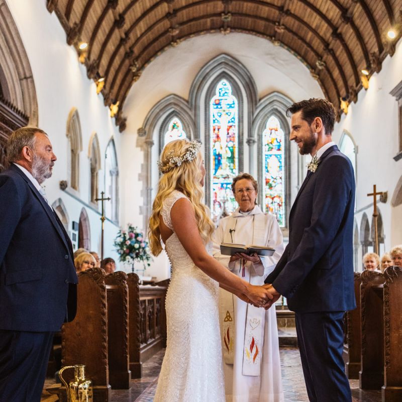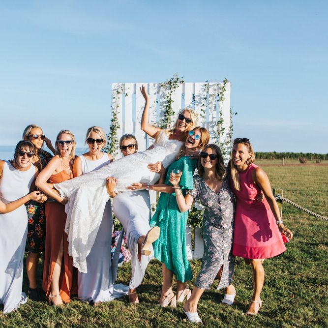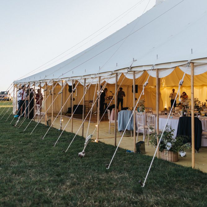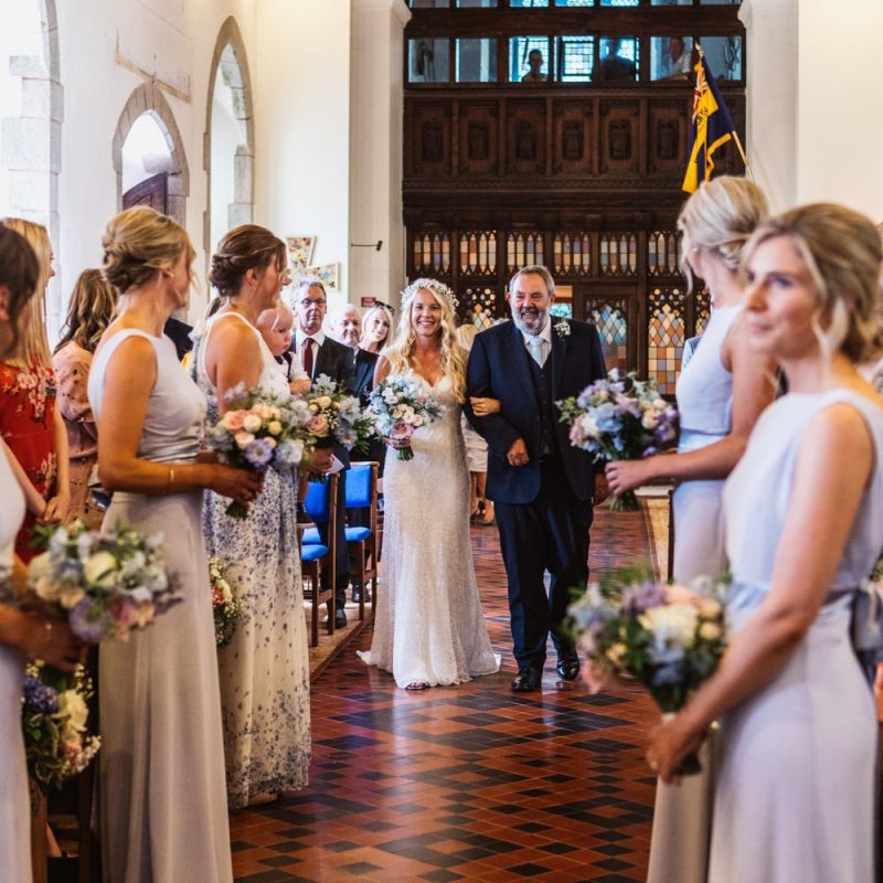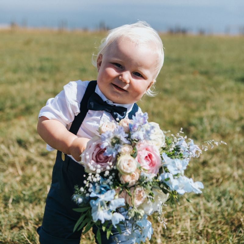 Having got engaged (with the most incredible aquamarine ring!) on the tidal beach at Kynance Cove we wanted to keep a coastal theme throughout our day. We decided on having a relaxed marquee wedding overlooking the sea. The bridesmaid's dresses, wedding cake and even my shoes were sea blue! Our table names were all beaches from around the world that we had travelled to together and welcome drinks were served from a boat. Lots of our family and friends camped in the wedding field that night and as we didn't want to miss out on the fun, the bridal suite was a bell tent closest to the sea.