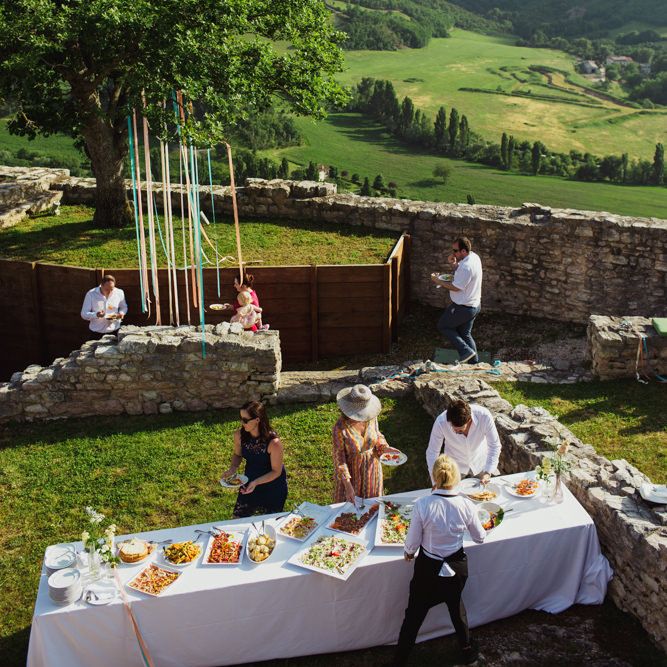 As we didn't have a so-called "traditional" wedding we could really create a unique ceremony and that's exactly what we did. We tore up the rule book to create something special to celebrate us and our lives together incorporating our family and friends into the celebration. We had our mothers give us away, we had 'best sisters' instead of best men and we had two good friends officiate the wedding. The ceremony was basically the story of our lives together as told by family and friends and ended with a beautiful and unique Celtic pagan hand binding.