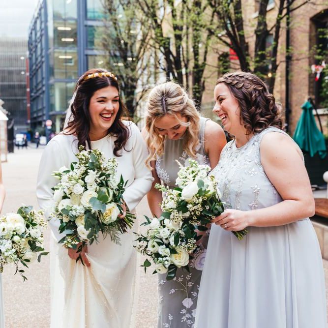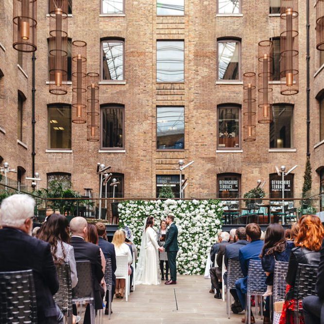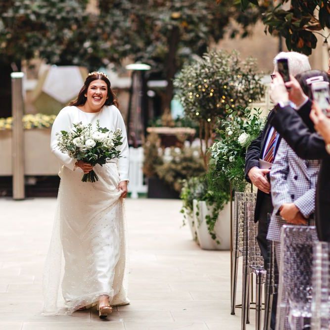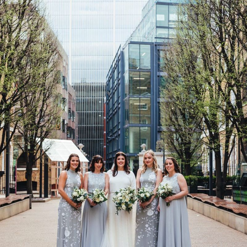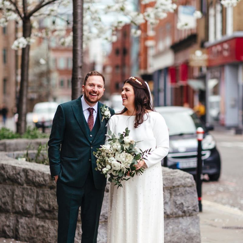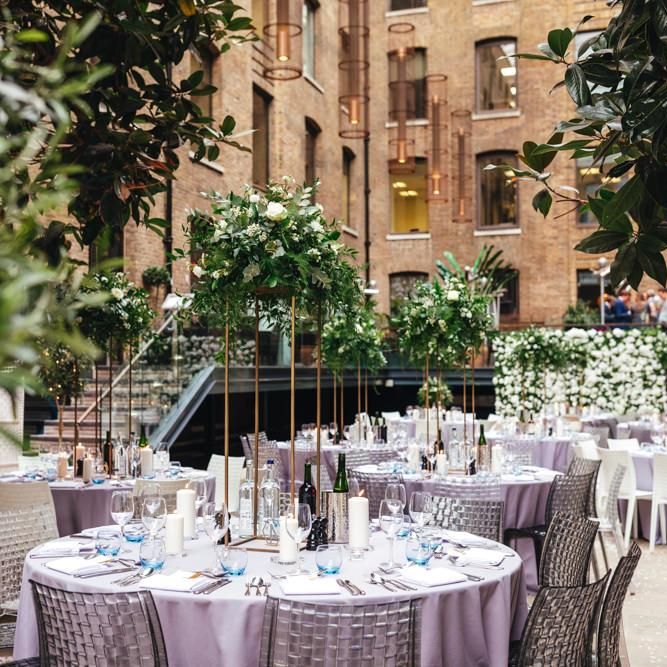 We love having friends and family over for parties and wanted our wedding to retain that same essence. We wanted people to feel that they were coming to an occasion but really relax, let go and enjoy themselves. Our inspiration was London, we love the architecture of the city and the pockets of greenery. The courtyard of the venue really captured this for us and to add softness we added lots of white flowers, foliage, candles and hues of soft greys.