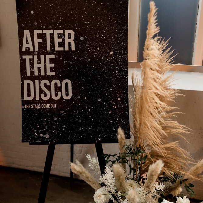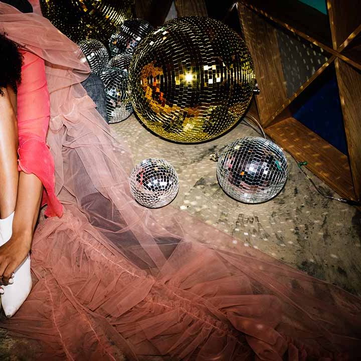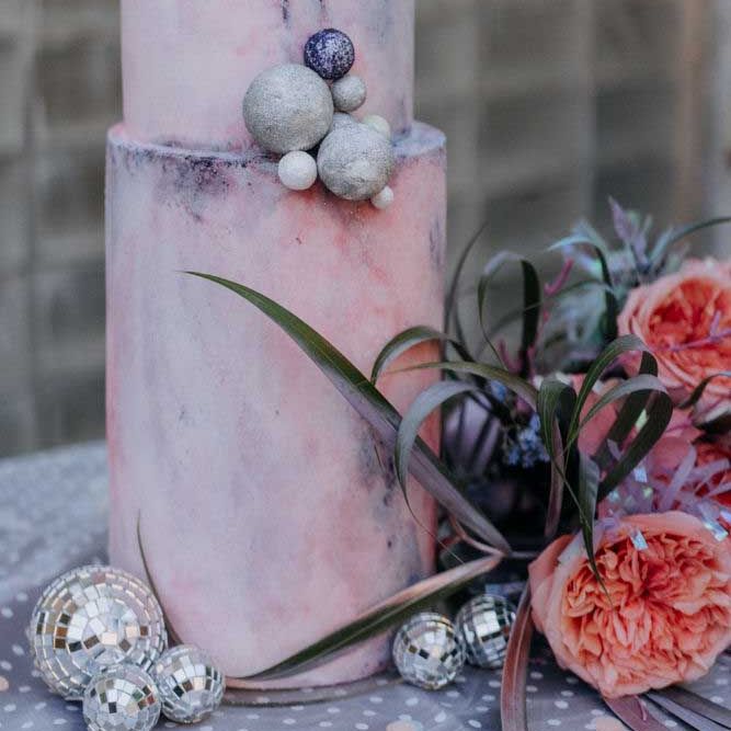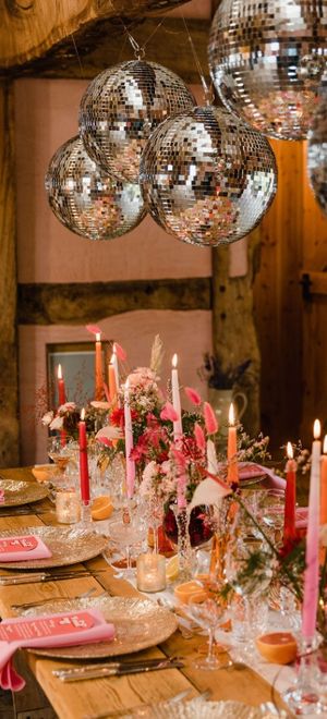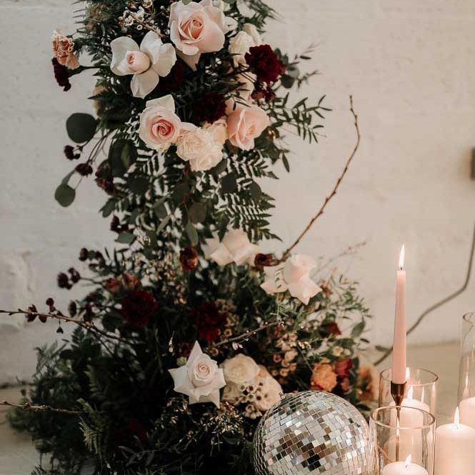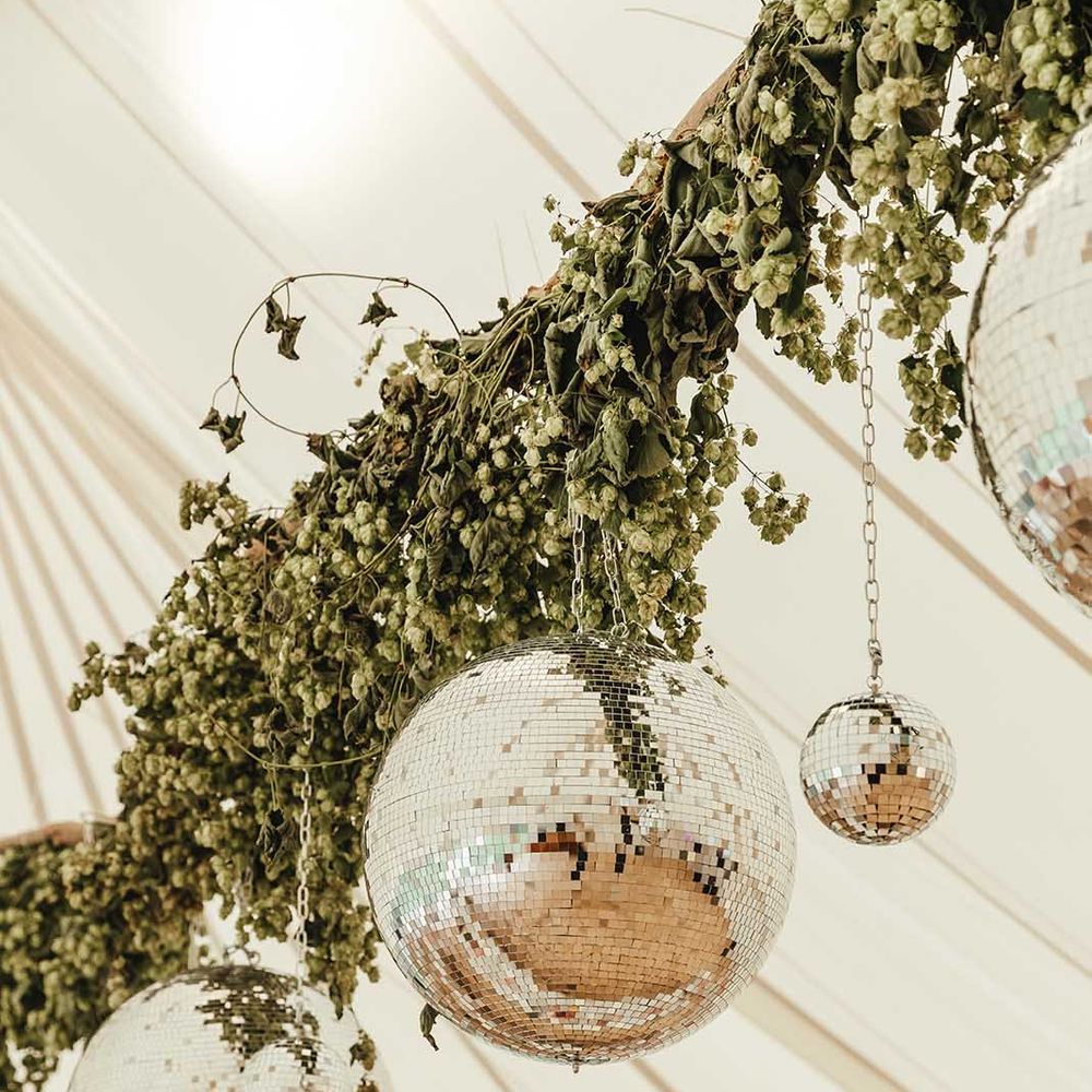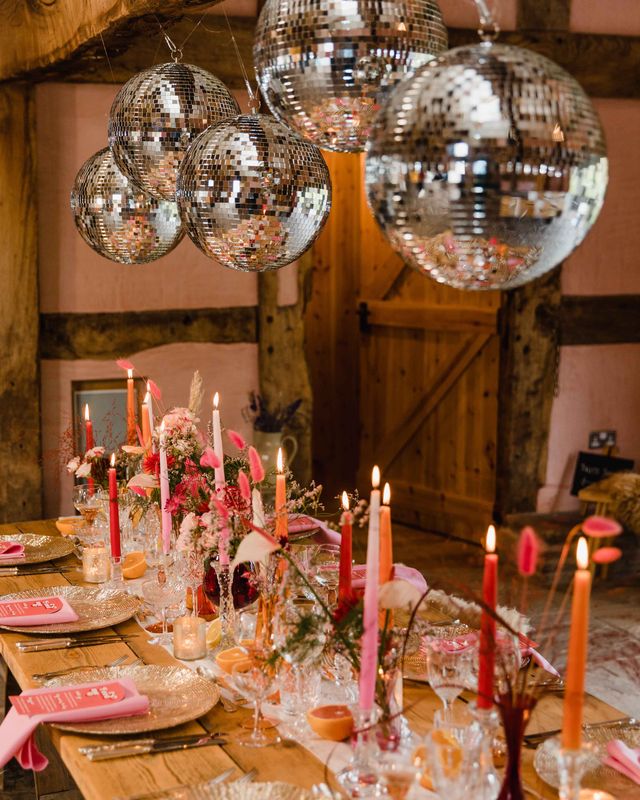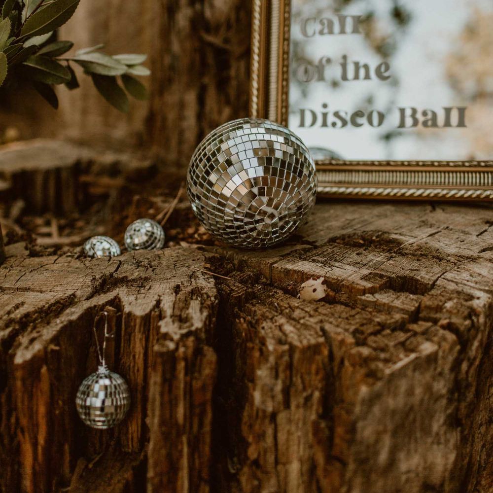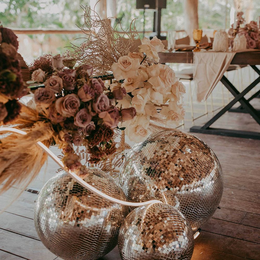 70s Disco Wedding Inspiration with Glitter Balls and Orange Flowers