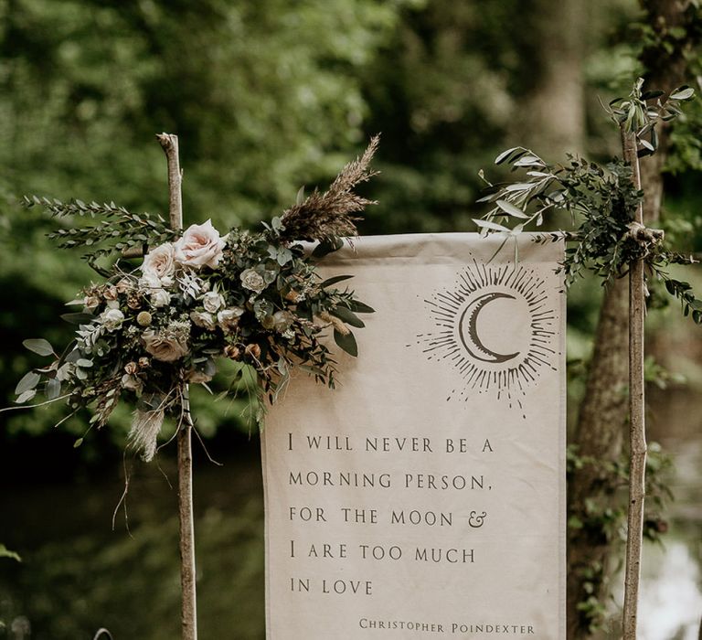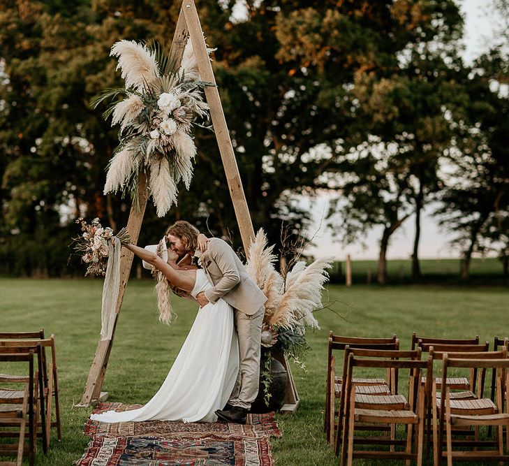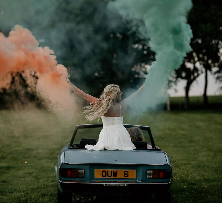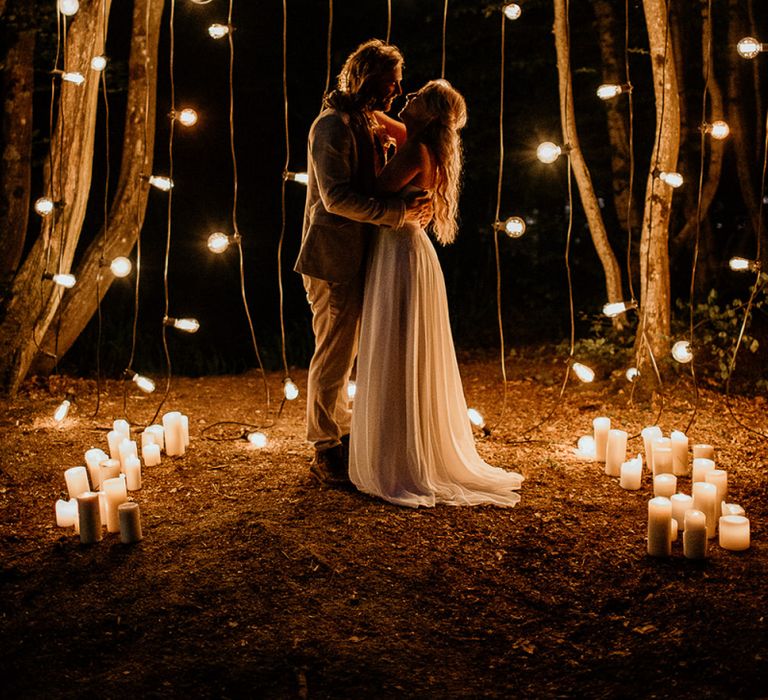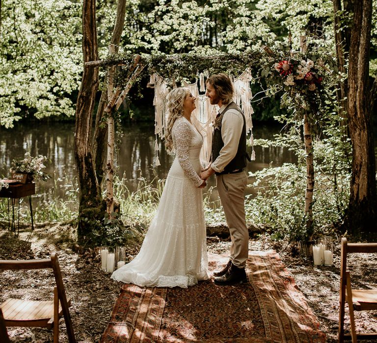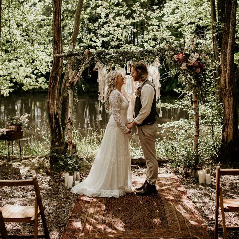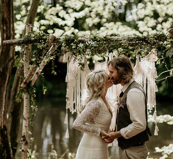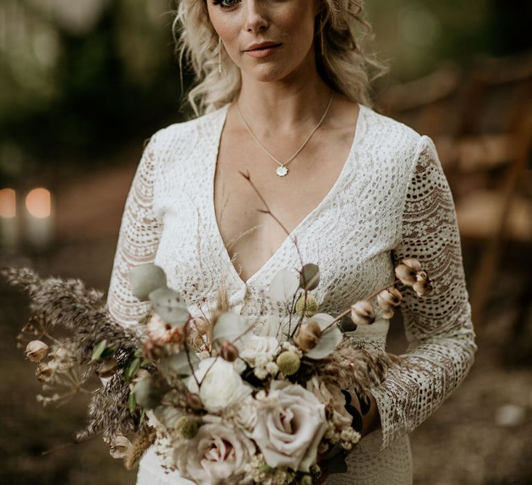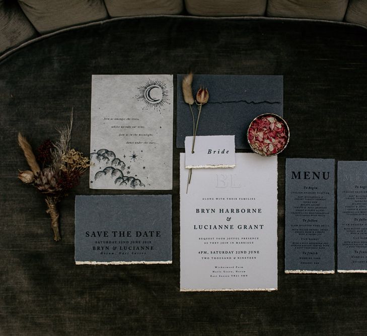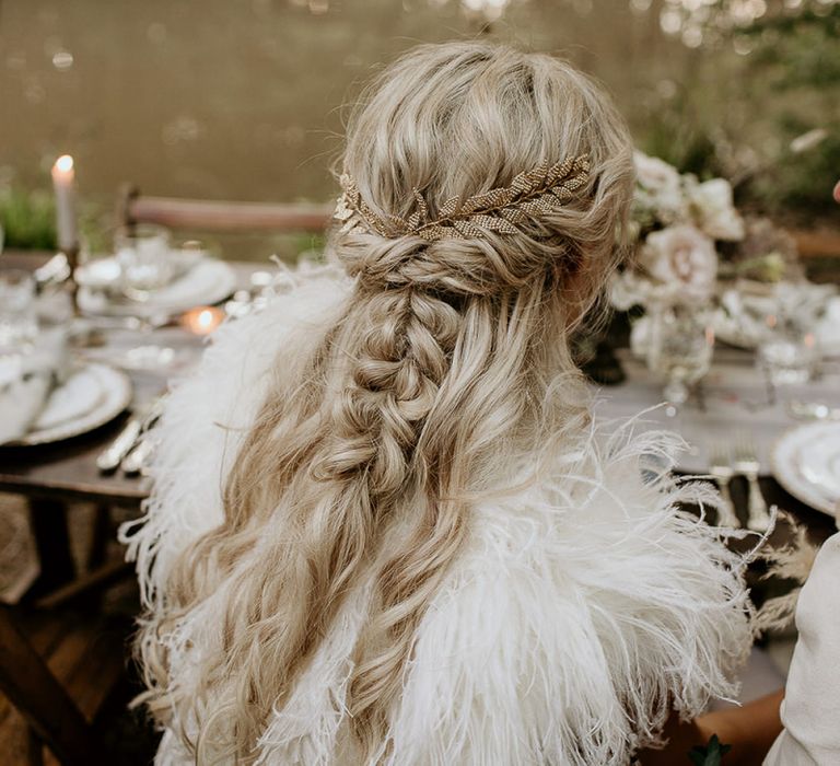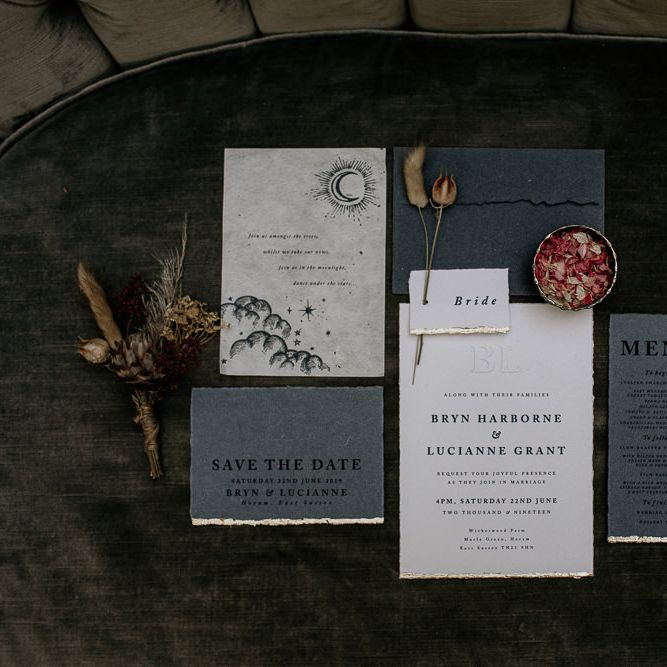 VISION Eco friendly Woodland boho luxe inspiration at Wickerwood Farm with mouthwatering low- and high-dining table set ups a vintage car and chandeliers surrounding a delicious cake!