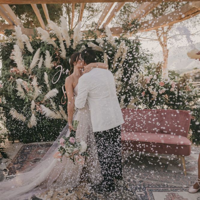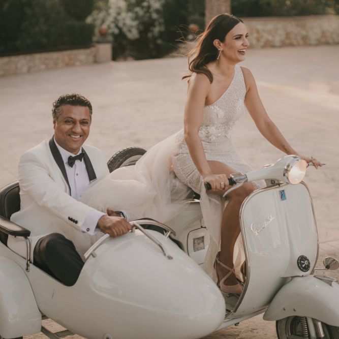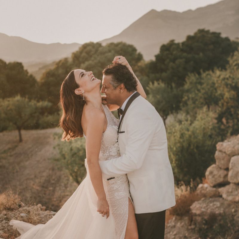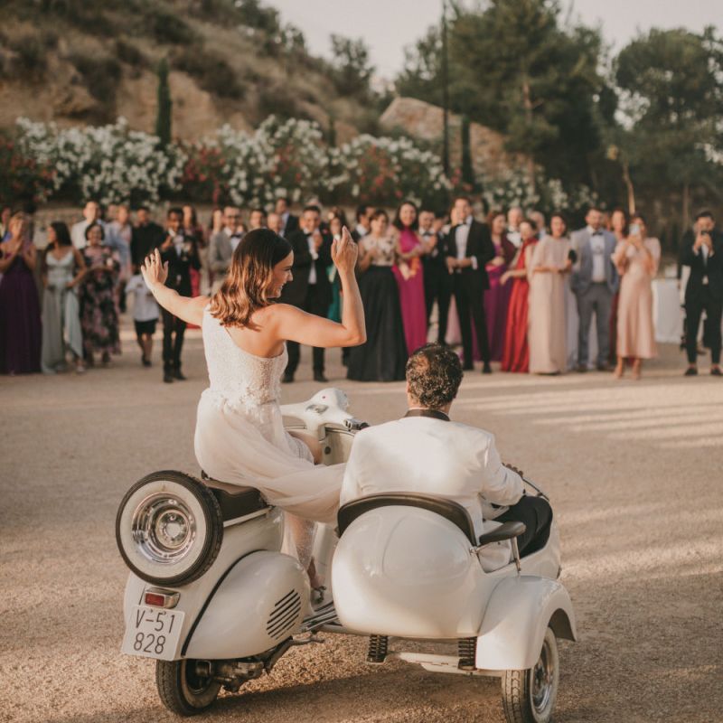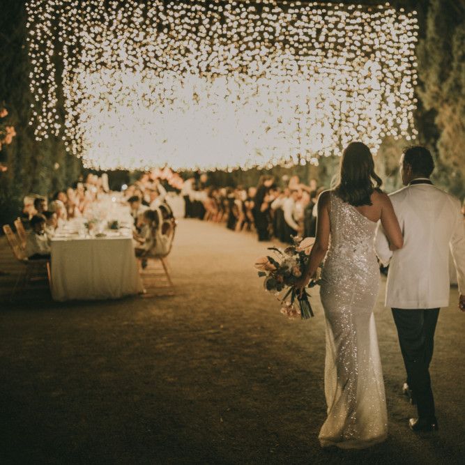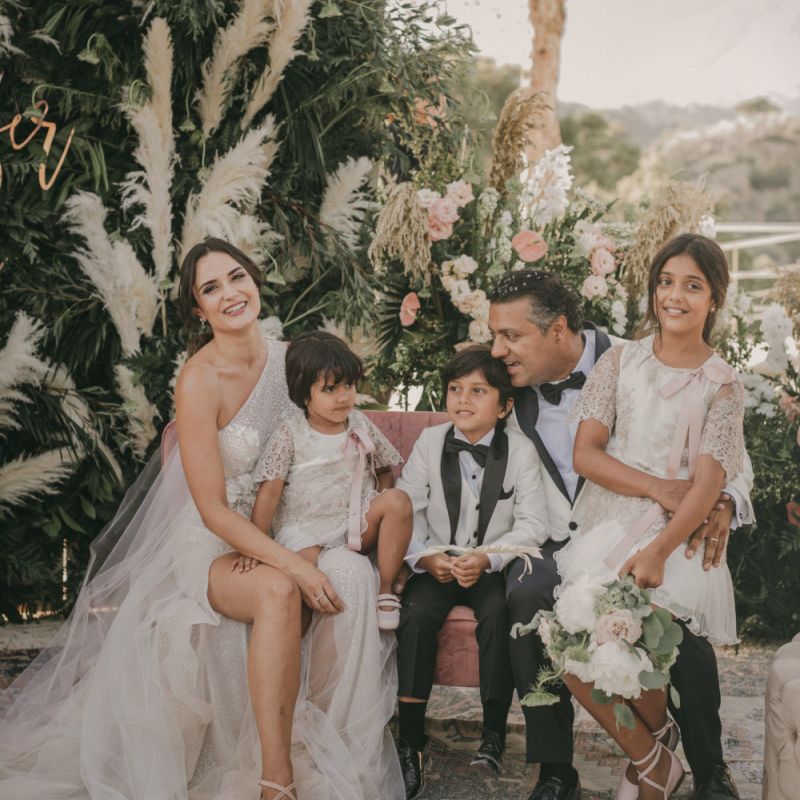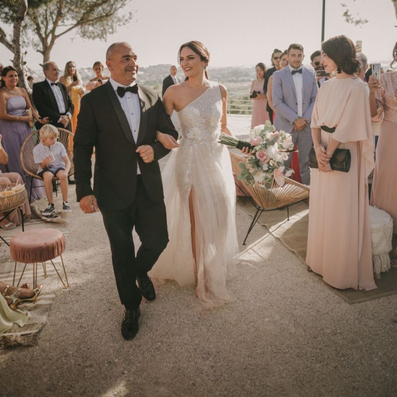 It was unique as it all came out as we had planned in our minds, what we had dreamt, a warm summer night, with the sea breeze, full of light, friends, family and music. Fun filled ,magical, complete with our personal things. An open air wedding hall, surrounded by trees, a ceiling full of lights, and dining tables filled with candles, and in the background the town of Altea.