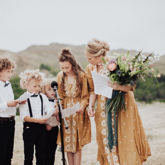 We really wanted our wedding to reflect us as a couple so took the time to think about what would make a wedding day important to us, not just following tradition. We have four children and we always have always said the reason we weren't married before is because we like to do things differently. And we wanted all our children there to celebrate with us. We wanted it to be where we live, outdoors (as much as possible) and a good party. The children having a party in the service outside in the field meant so much to us.