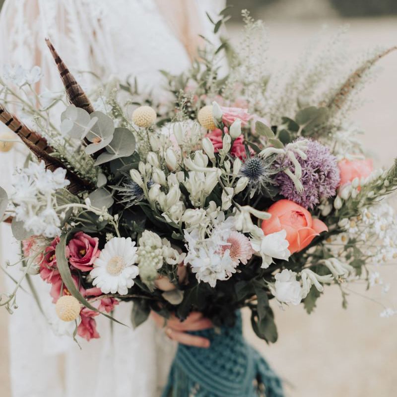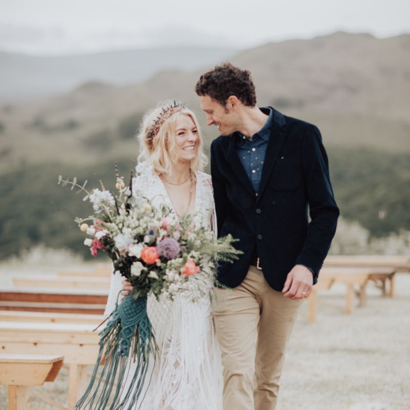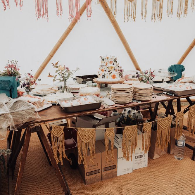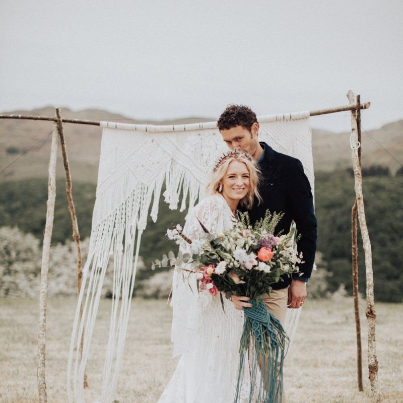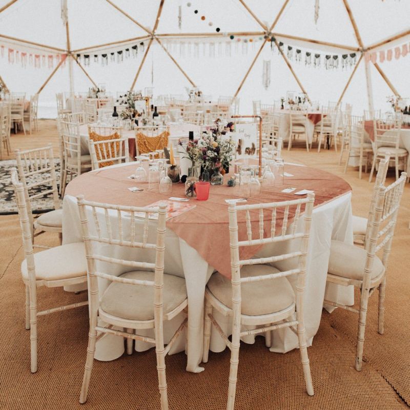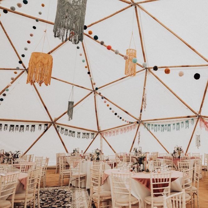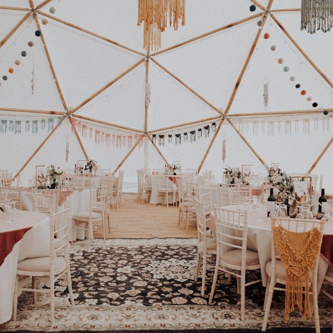 I really love anything bohemian, from clothes, homeware etc, and with us wanting the day to be very laid back it made sense to have a boho vibe. We wanted the day to be unique and colourful, but in keeping with the surroundings. So wild and unstructured it was. Our bamboo Geodone from Atlas Domes fit the brief perfectly, and with no down posts we could maximise the space.