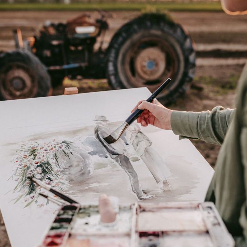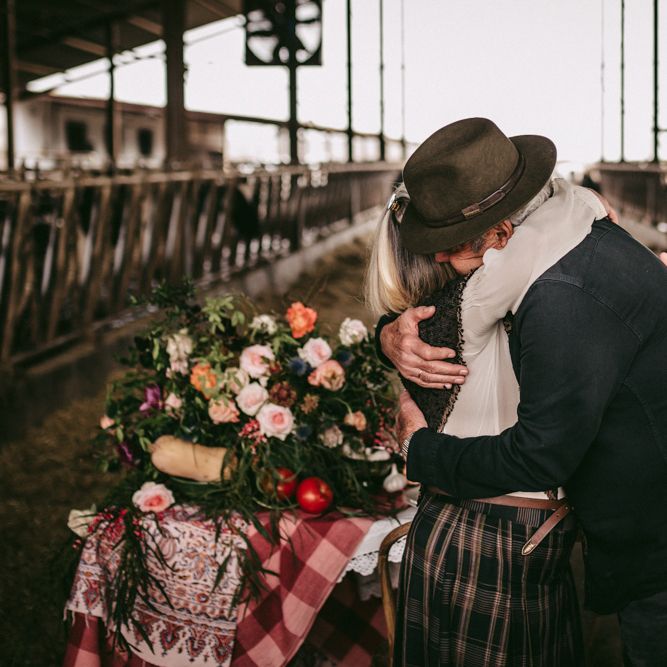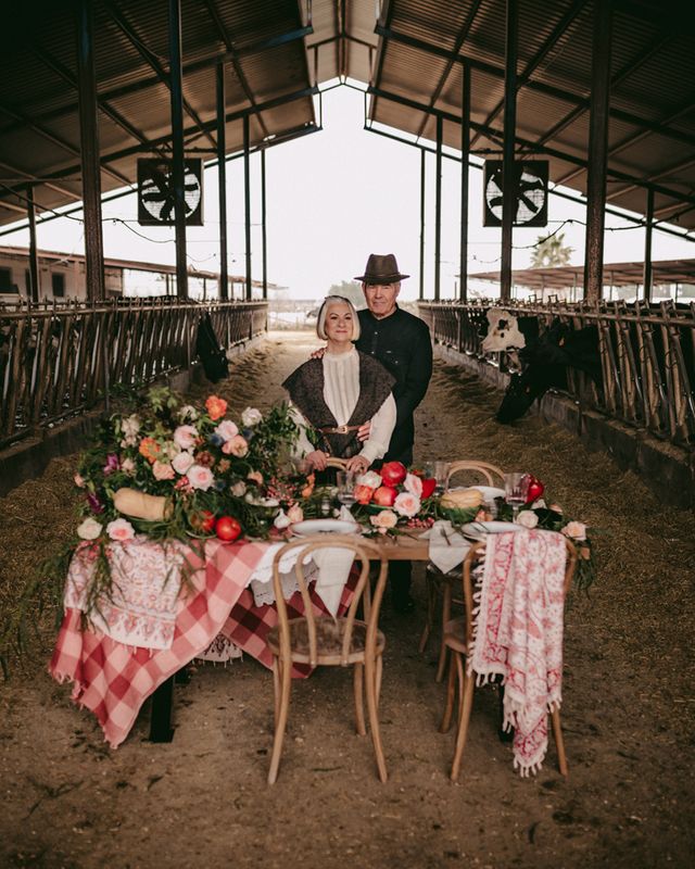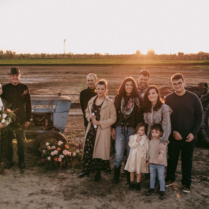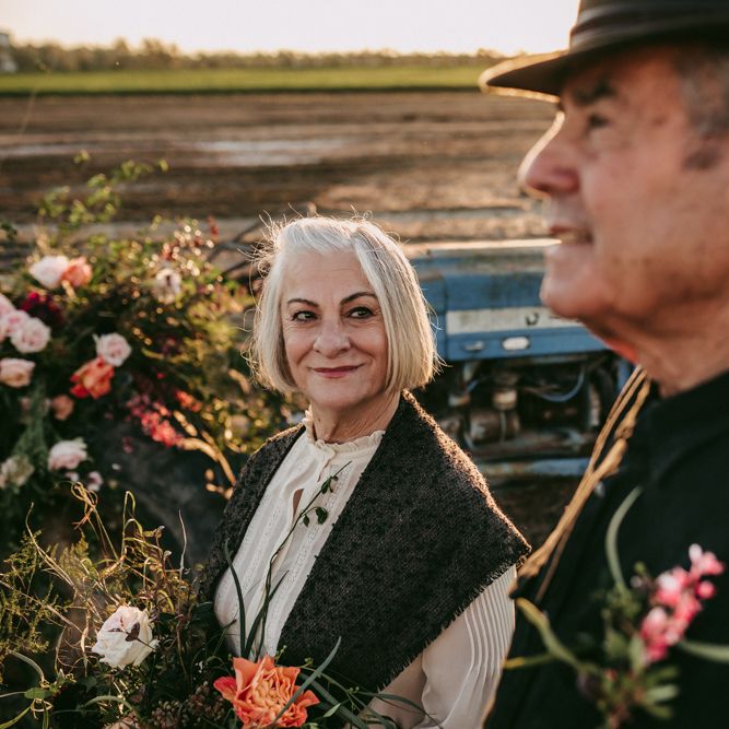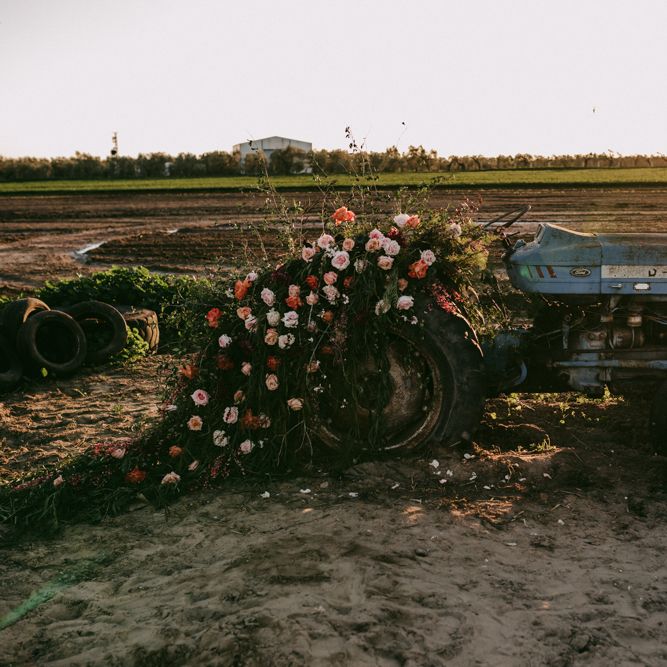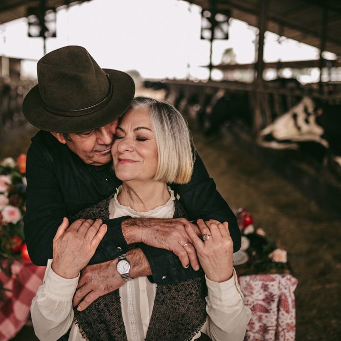 The cow yard, a lot of nature and the beauty of everyday nature as the setting for the eternity of love. Looks, caresses and words of mutual gratitude for everything they have built together, a family, a business, and for the illnesses and the rough patches, they have overcome with courage. A surprise ceremony at dusk, in the presence hundreds of flowers over a truck and a very special set of guests. Improvised words full of emotion towards the stem of their love, tears of joy accomplice looks ... and in the middle of it all, the bride. His great treasure, the love of his life. All in a unique setting and so dear to renew their vows and change the editorial into a real wedding surrounded by their children and grandchildren.