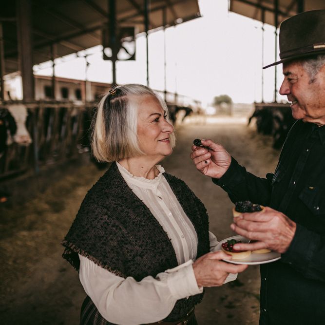 72 years, a life spent together, a cattle yard, and a golden wedding anniversary to celebrate. An excuse to celebrate the love that a couple of endearing grandparents who have gone through great battles and difficult times together profess, but still their love remains. They show us the kind of love that endures and thrives, not like the first day but with the strength of the years, as a consequence of infinite caresses, hugs and tickles, added to the complicity of a whole life shared together.