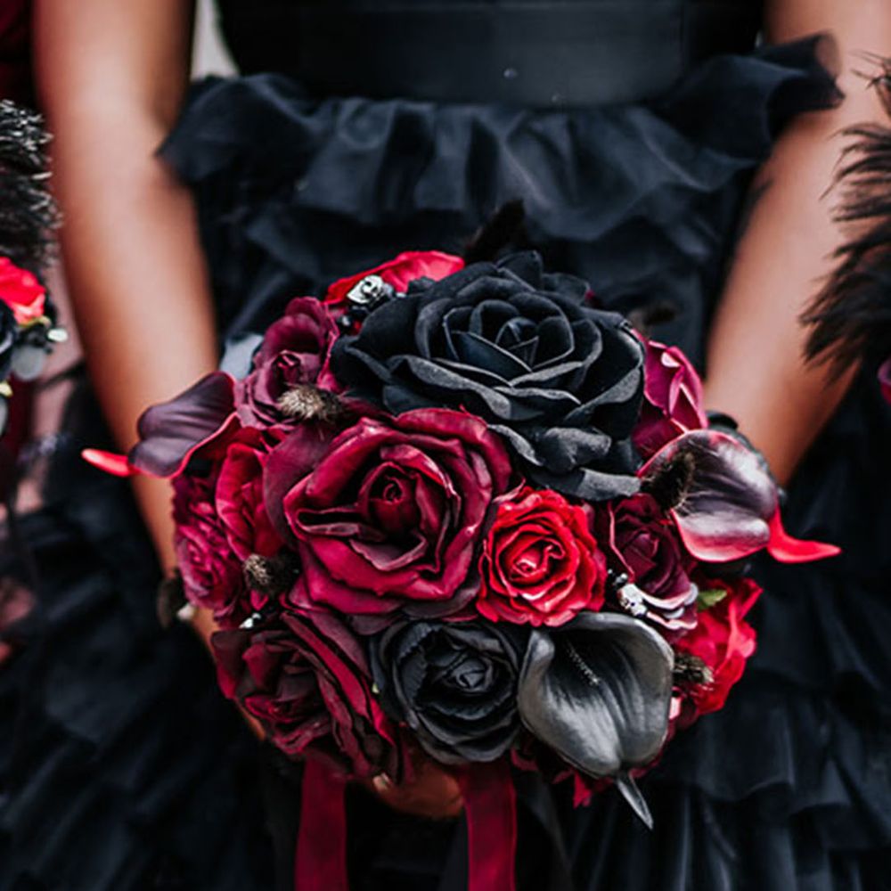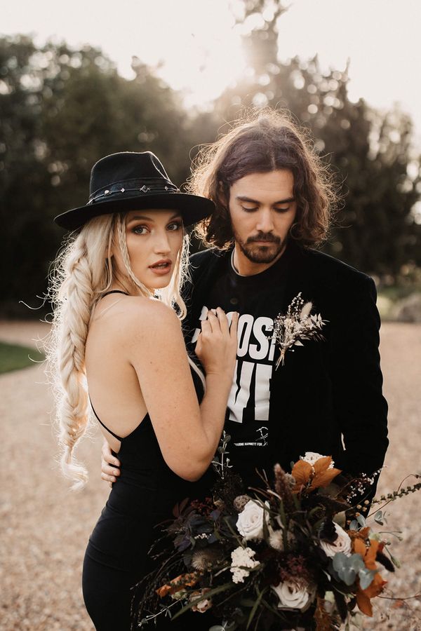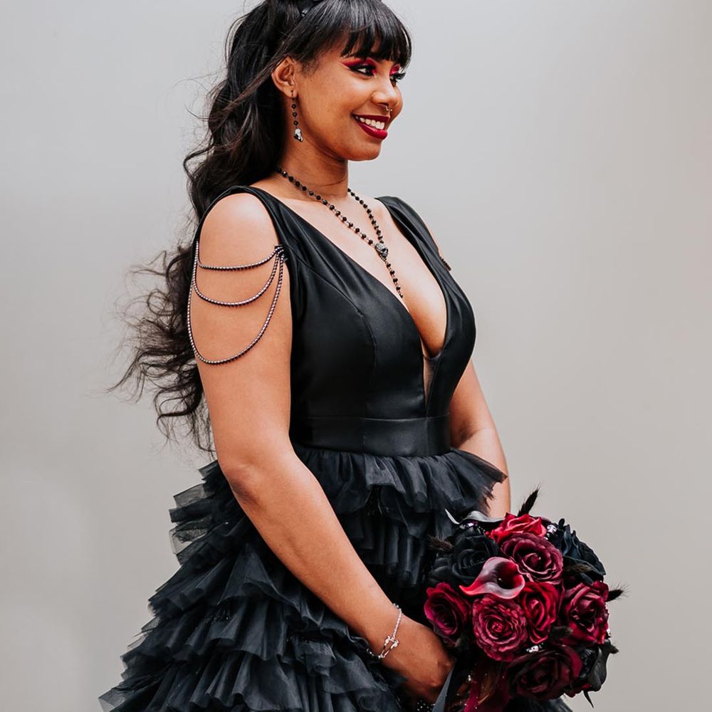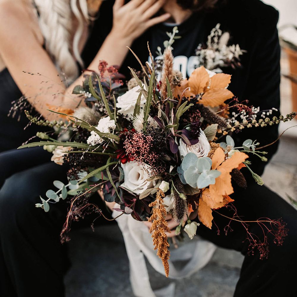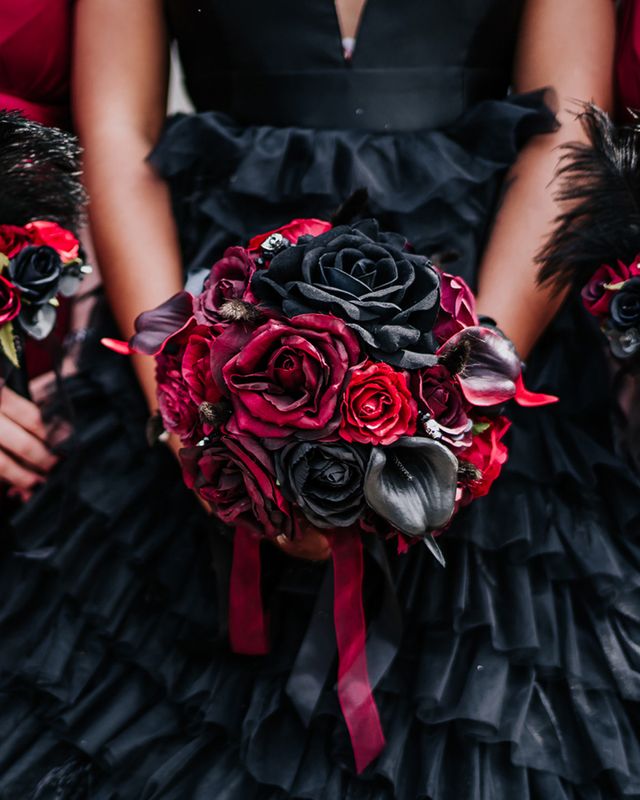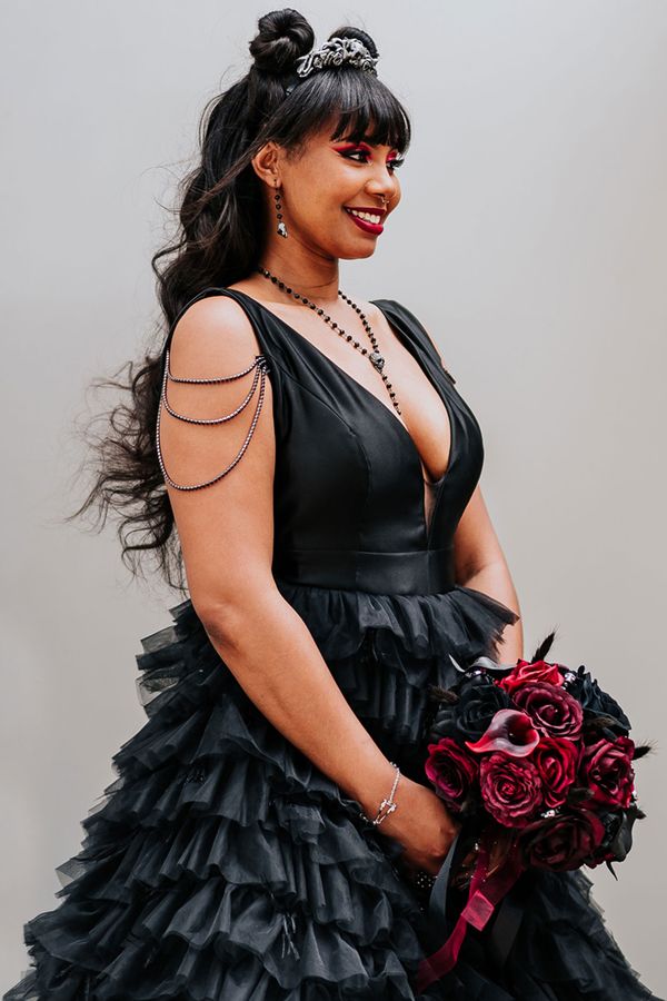 Halloween Wedding with Autumn Flowers & Black Wedding Dress