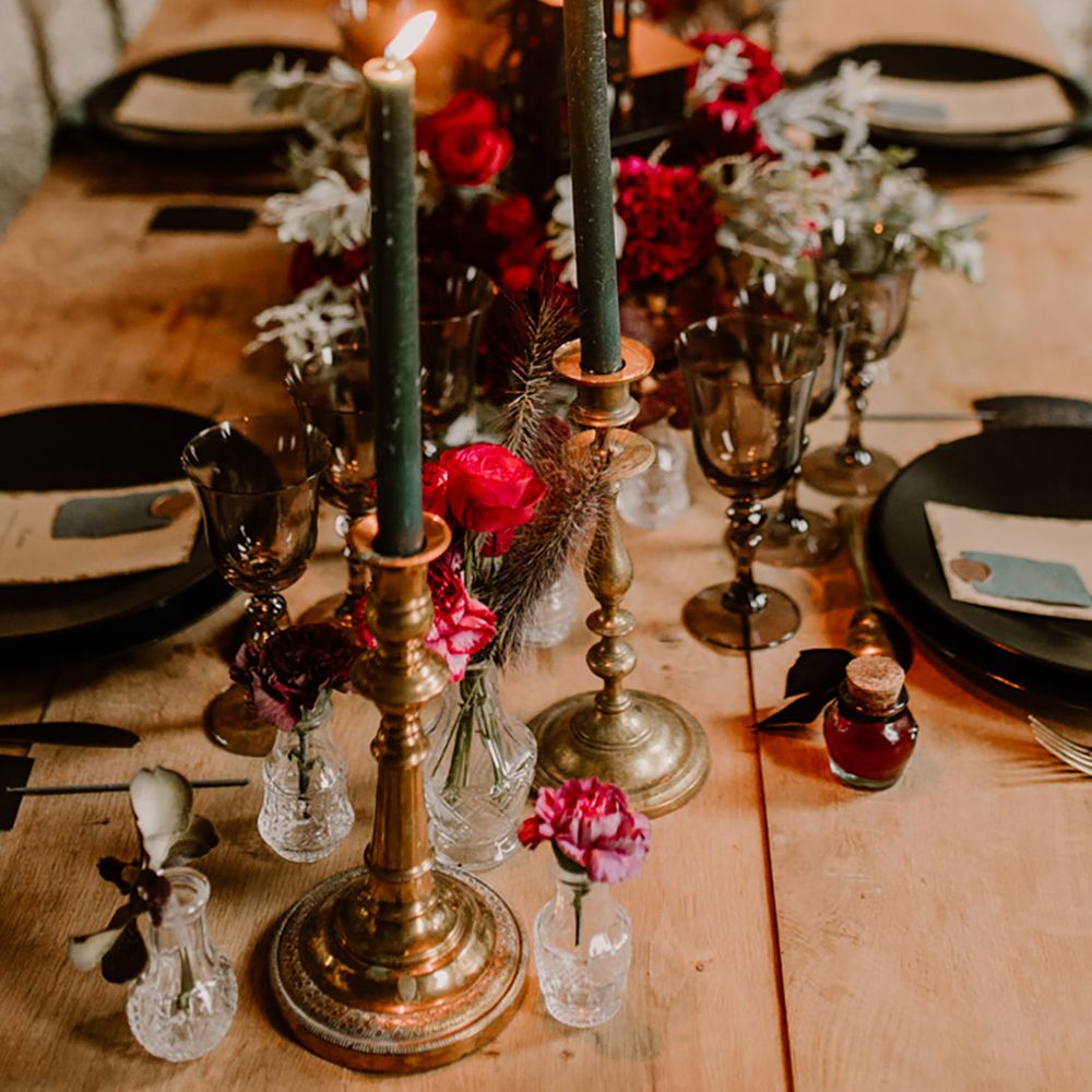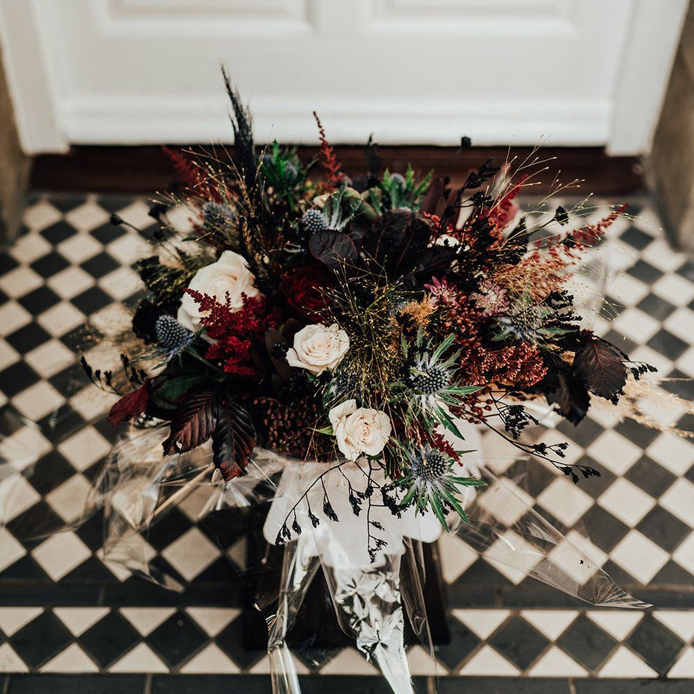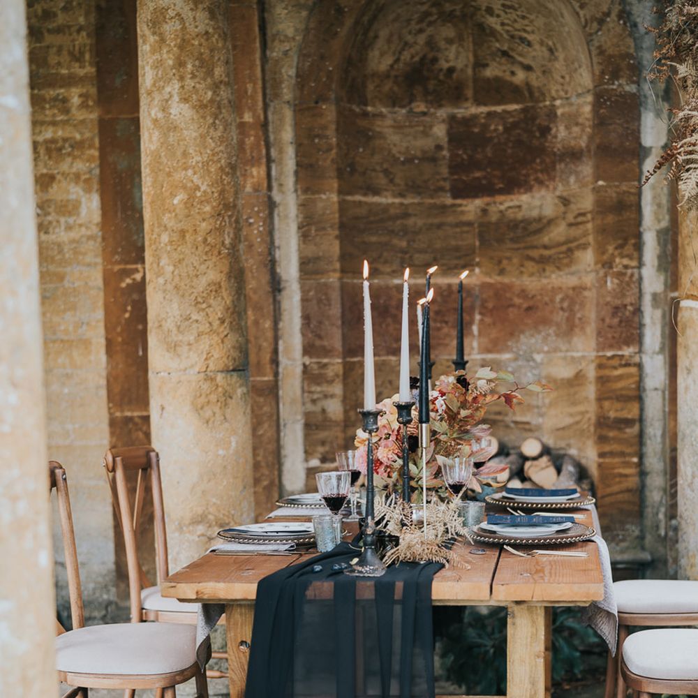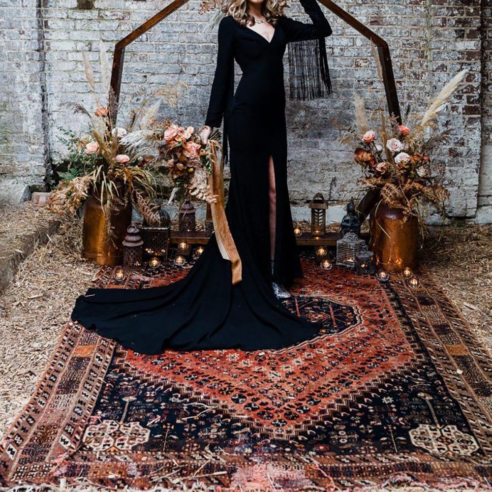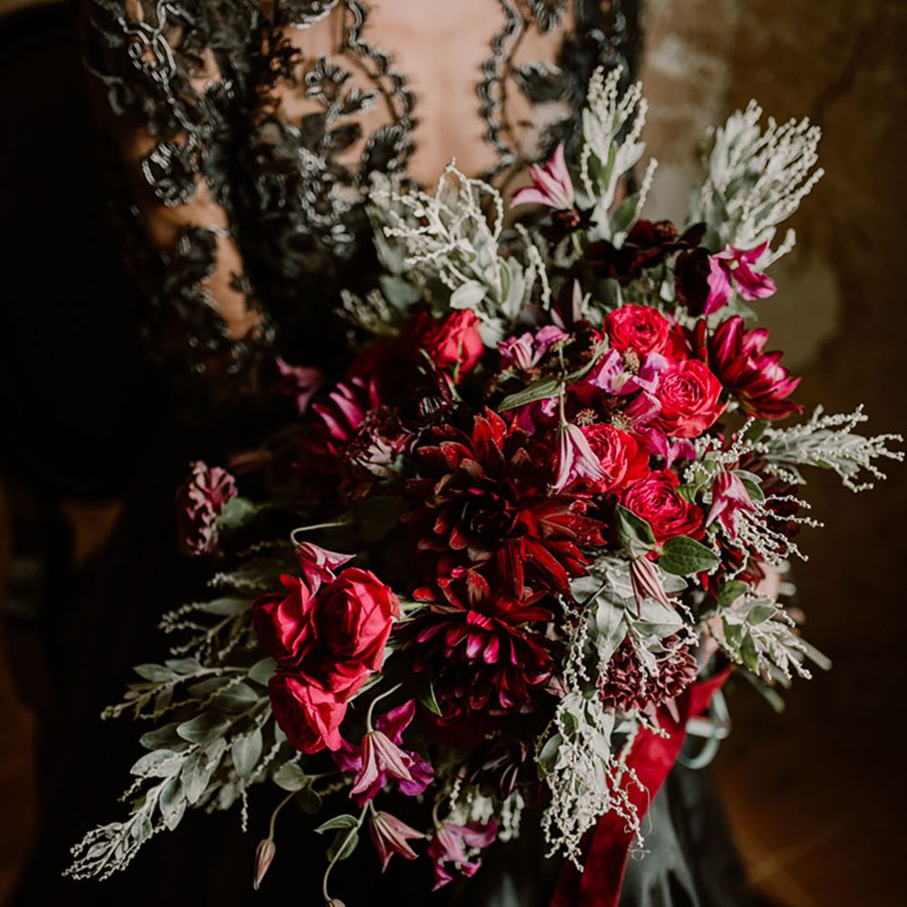 Halloween Wedding with Autumn Flowers & Black Wedding Dress
