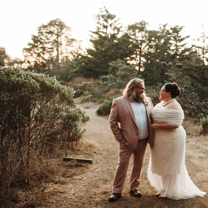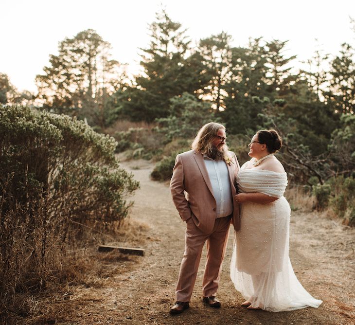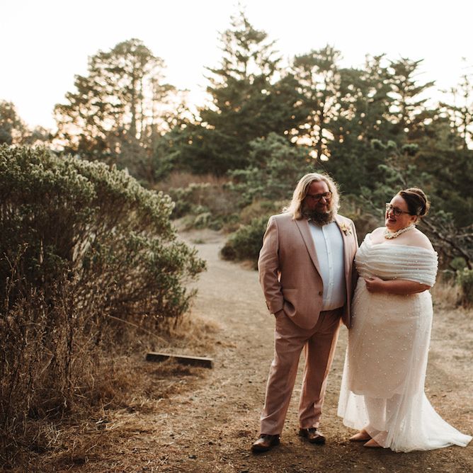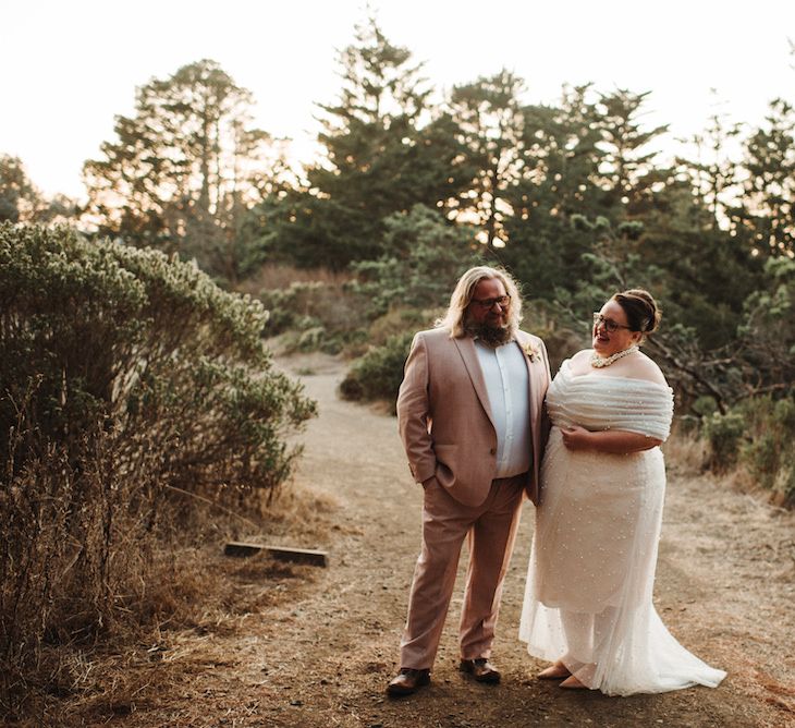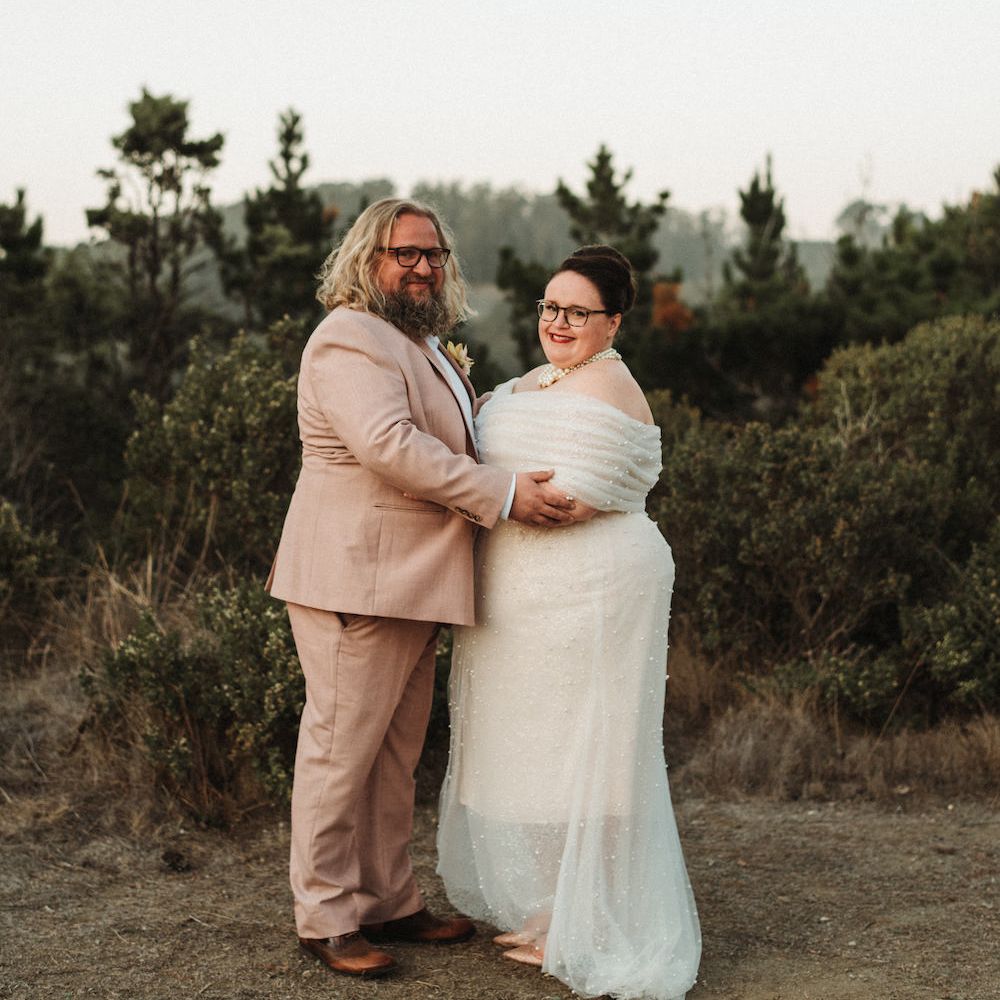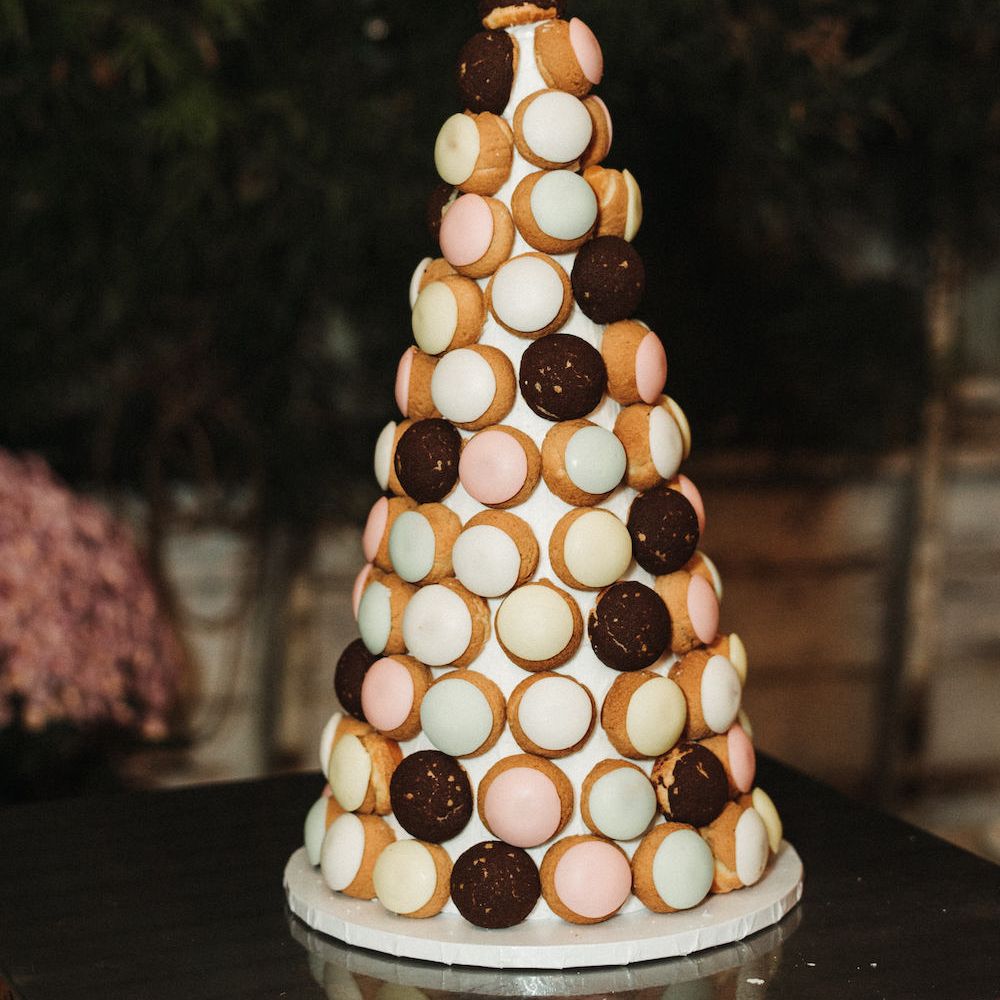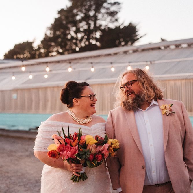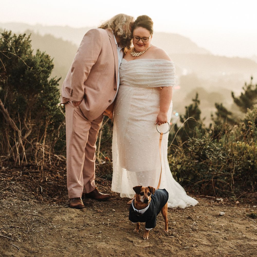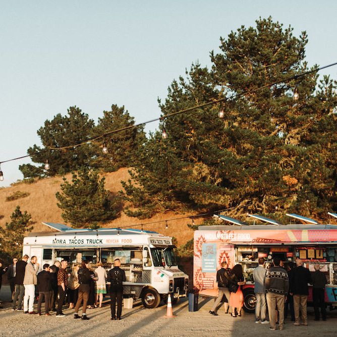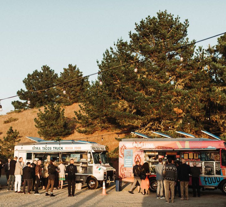 Outside, against the beautiful scenery and sunset, everyone was served dinner from Indian street and taco food trucks. Marcy and Kasper used to live in San Francisco and it was important for them to incorporate elements of their life together there into their wedding. Mora Taco Truck was a food truck they had frequented often. Marcy is an avid baker and wanted a showstopping dessert so they served cream puffs set in a tower and meringue bites from Choux SF, along with Marcy’s homemade caramels. They ended the night dancing to music from a live band, surrounded by twinkle lights.