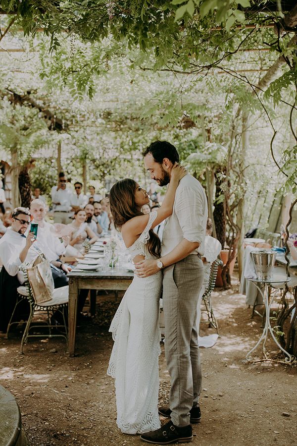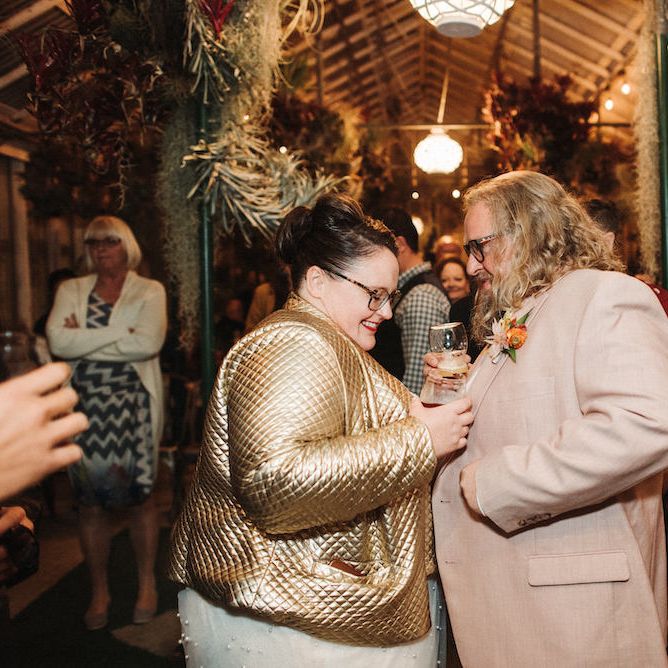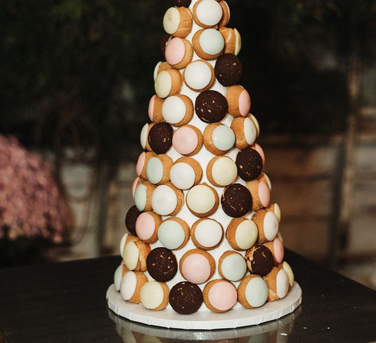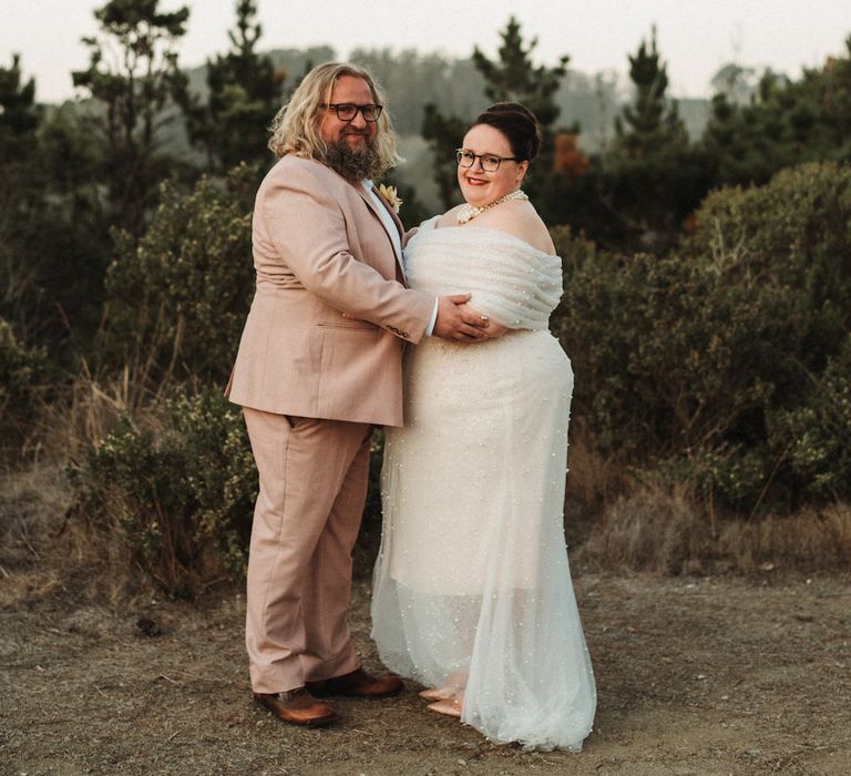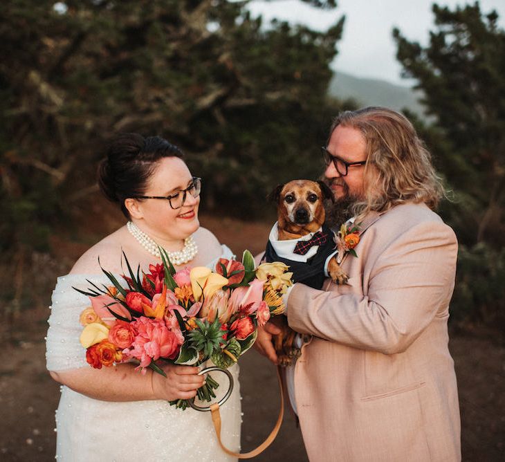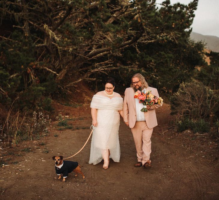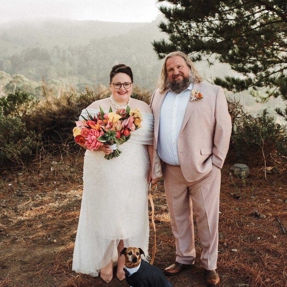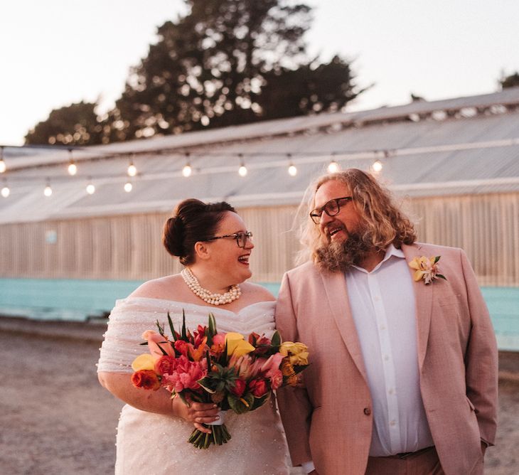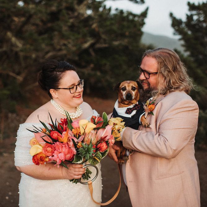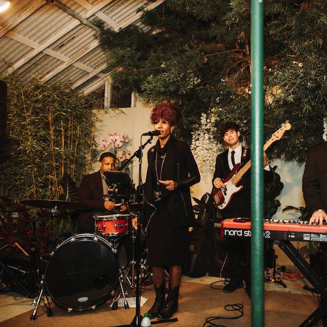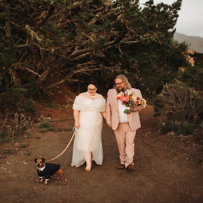 Outside, against the beautiful scenery and sunset, everyone was served dinner from Indian street and taco food trucks. Marcy and Kasper used to live in San Francisco and it was important for them to incorporate elements of their life together there into their wedding. Mora Taco Truck was a food truck they had frequented often. Marcy is an avid baker and wanted a showstopping dessert so they served cream puffs set in a tower and meringue bites from Choux SF, along with Marcy’s homemade caramels. They ended the night dancing to music from a live band, surrounded by twinkle lights.