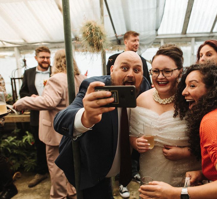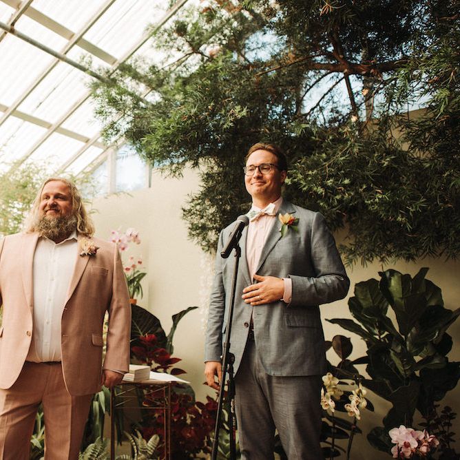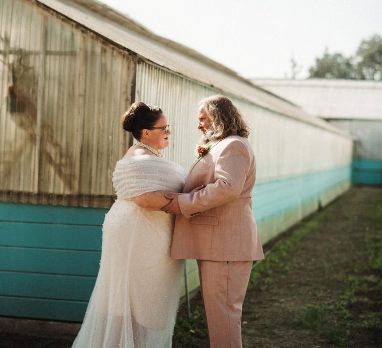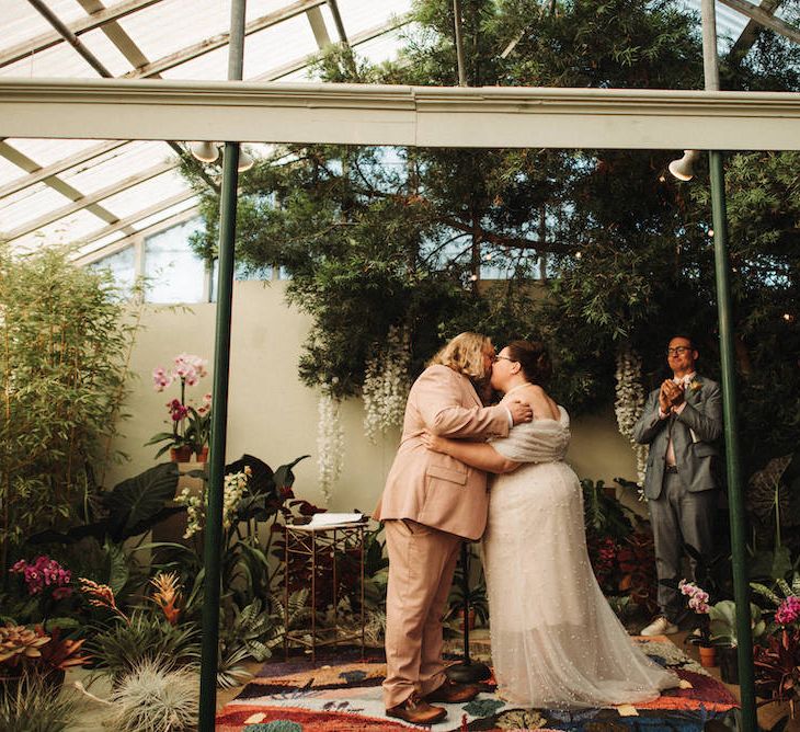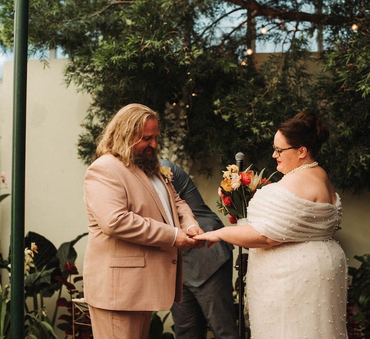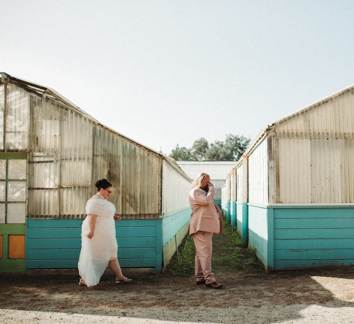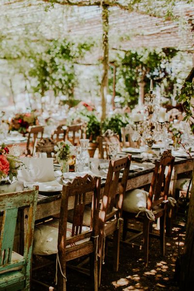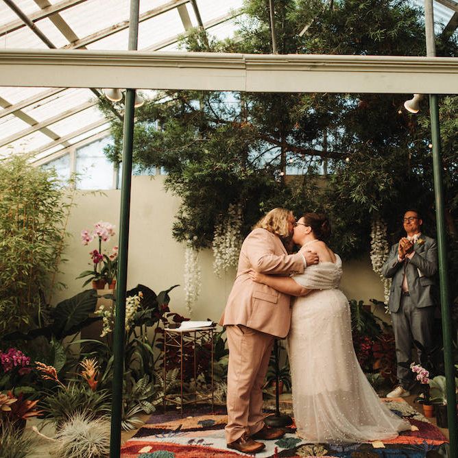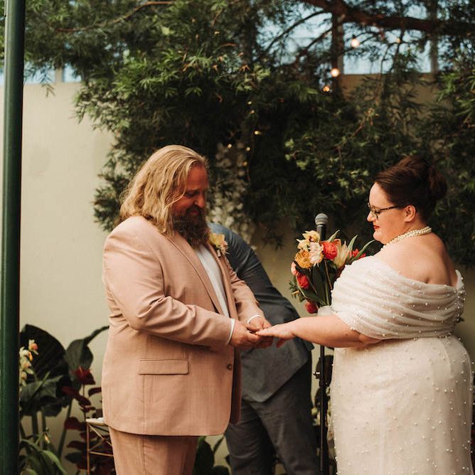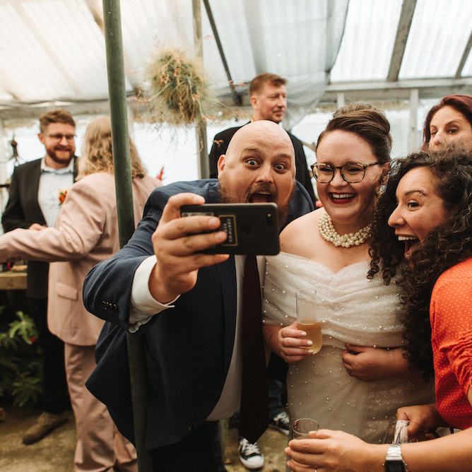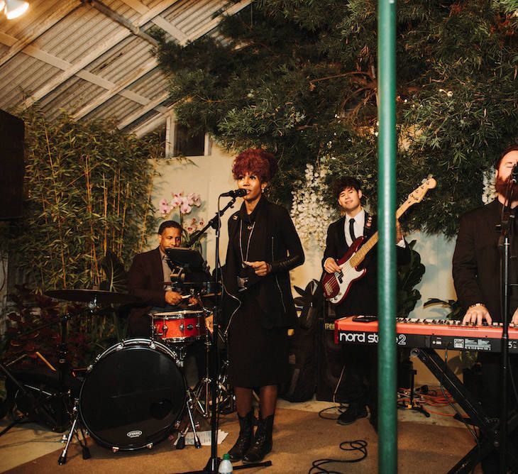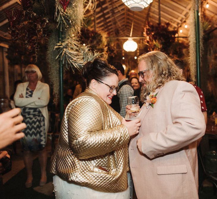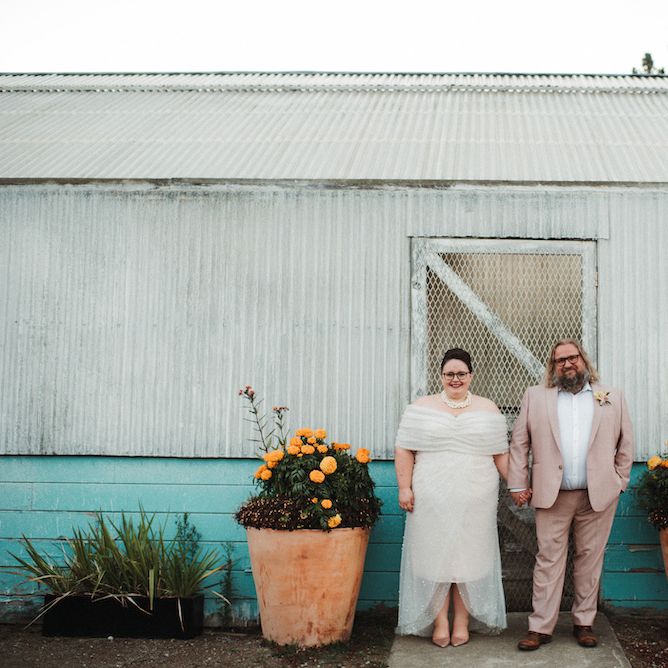 Outside, against the beautiful scenery and sunset, everyone was served dinner from Indian street and taco food trucks. Marcy and Kasper used to live in San Francisco and it was important for them to incorporate elements of their life together there into their wedding. Mora Taco Truck was a food truck they had frequented often. Marcy is an avid baker and wanted a showstopping dessert so they served cream puffs set in a tower and meringue bites from Choux SF, along with Marcy’s homemade caramels. They ended the night dancing to music from a live band, surrounded by twinkle lights.