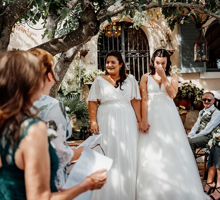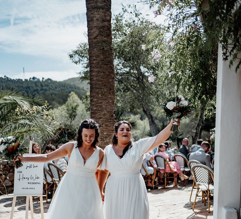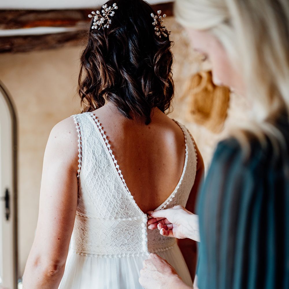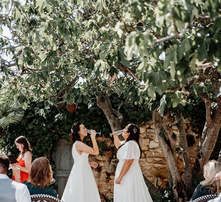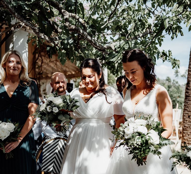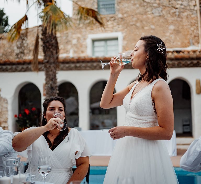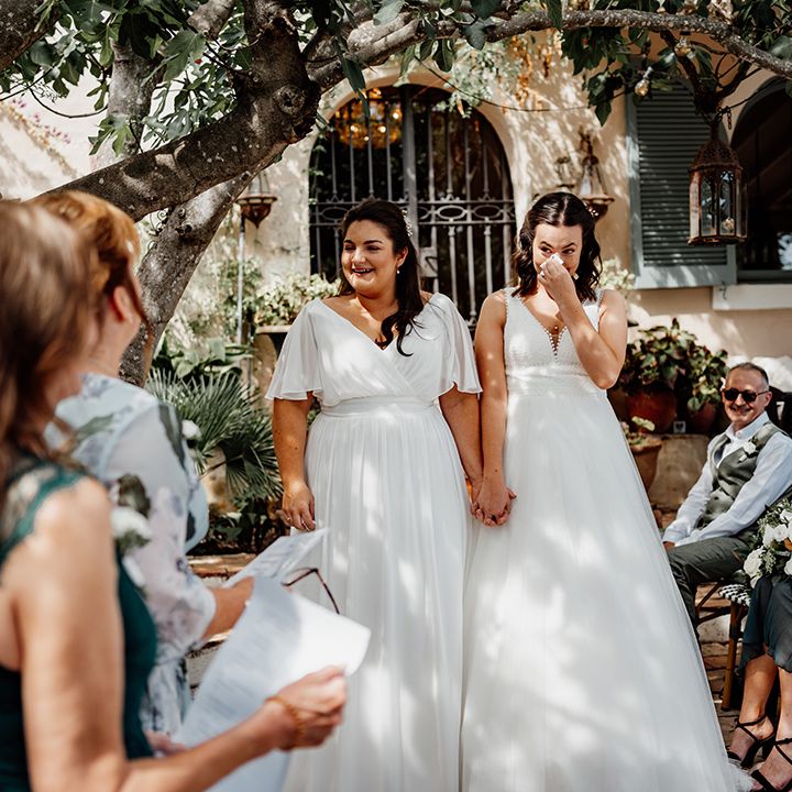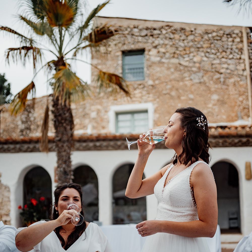 One of our favourite moments of the day came from breaking tradition. We decided to get ready together on the morning of our wedding with our best women with us. It was so special soaking up this time together in the lead-up to the ceremony. Secondly, asking all our guests to join us in a group vow followed by everyone receiving a glass of fizz in the ceremony to toast to us as we walked back down the aisle.