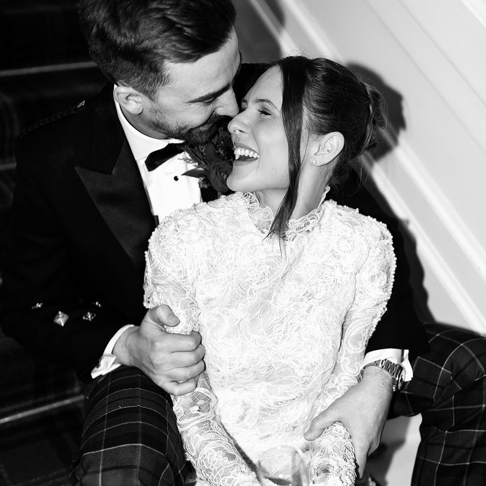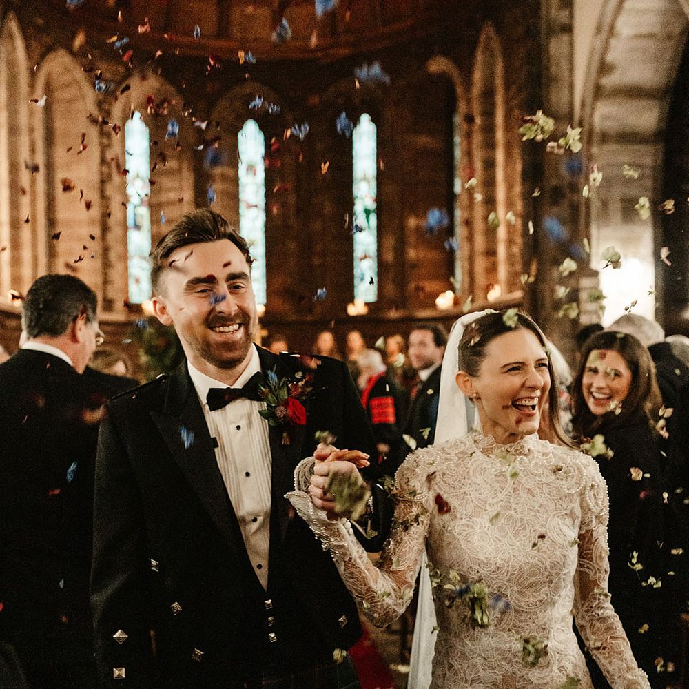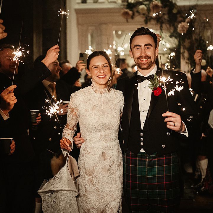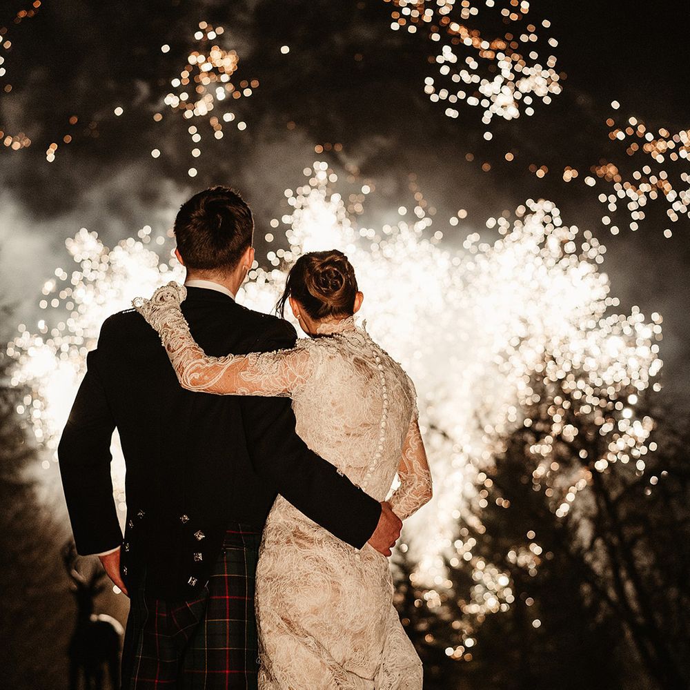 Our highlights of the day were when we both stepped out of the church, jumped in our car and drove the few minutes up to the castle. We were alone, just married and together after spending the night and morning apart. We walked into the castle, just the two of us, were handed a glass of champagne and were just bursting with happiness, watching the day we'd planned come together, and giddy that we'd just become husband and wife. We also loved being piped to our table for dinner with everyone clapping and stamping their feet, and, of course, the INCREDIBLE firework display after dinner (which we kept as a surprise!).