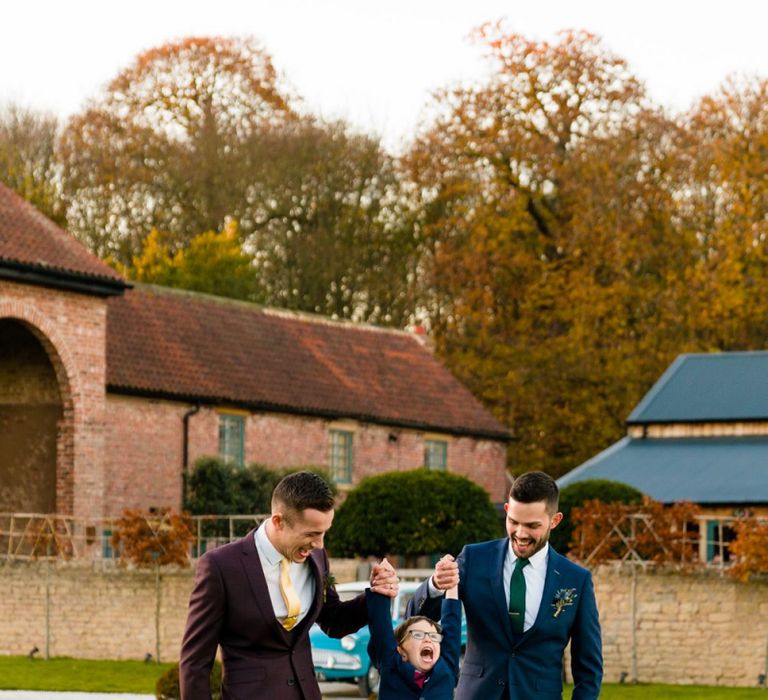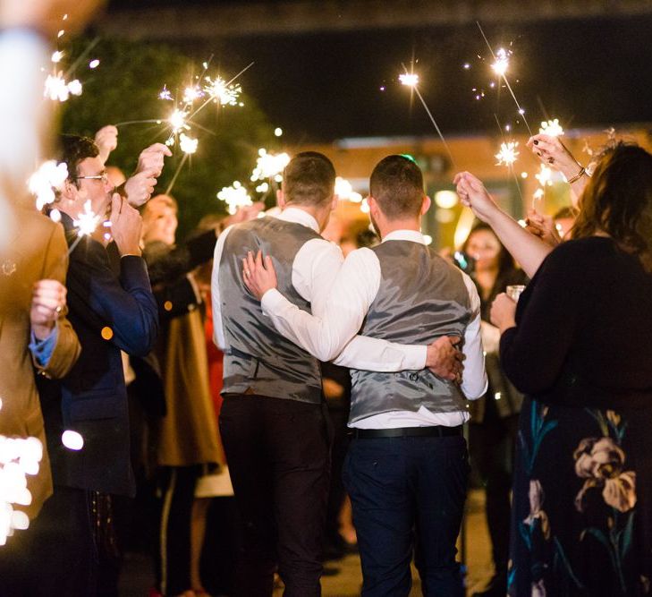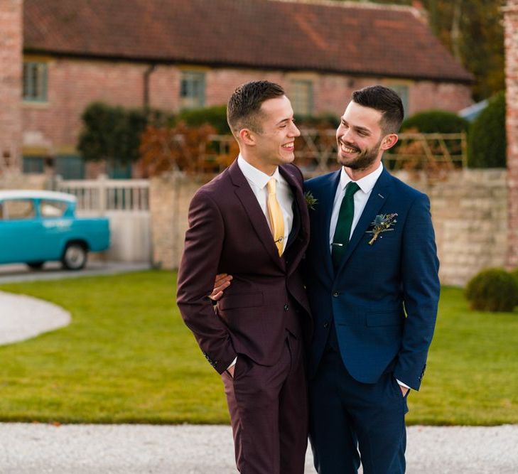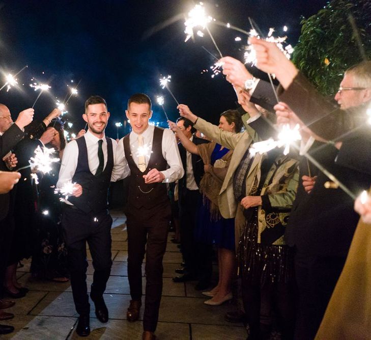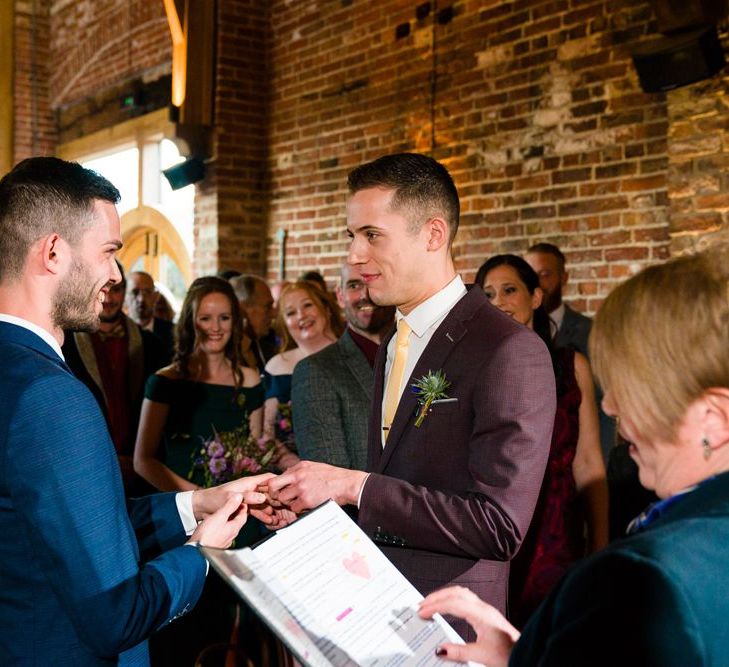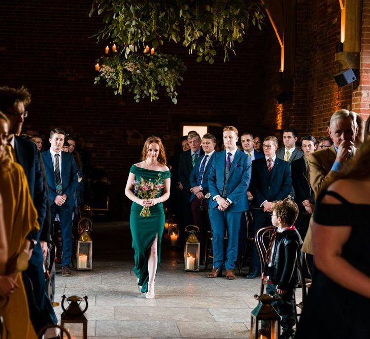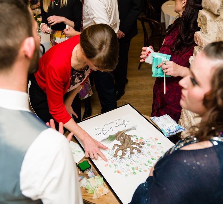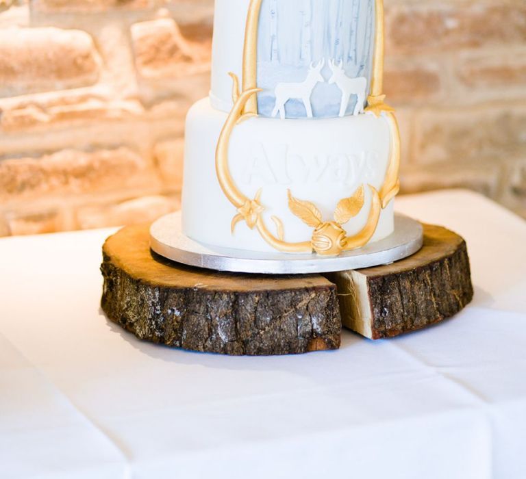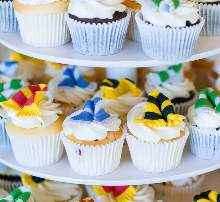 Due to the date being in November, we went for an autumnal wildflower theme with the flowers and candles in the barn during the ceremony. However, the bar and dining area were kitted out with Harry Potter in mind, including Hogwarts house banners, bunting, artwork and many objects relating to different classrooms. With the invitation came a dress code, with guests asked to dress in the colours of the house they were sorted into, and we felt this made for a more relaxed than a completely formal affair, which we loved.