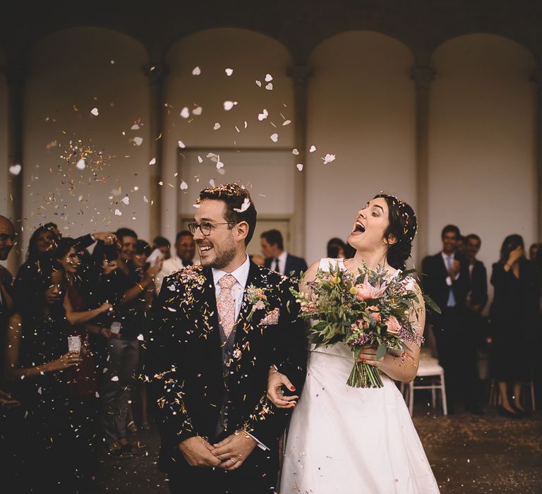 The interiors at Highcliffe were already beautiful so there wasn’t really much we needed to do! Francois found Concept Flowers on Instagram and we both knew Lauren was the right choice. We loved her style – slightly untamed with beautiful use of colour, and when meeting with her she perfectly understood what we were after. Unfortunately all the flowers on my mood board were out of season but Lauren came up with some great alternatives, and suggested the king protea, to bring an unusual twist – this featured in my bouquet and the table centrepieces, which were supported by brushed metal box frames; very modern and unlike anything we’d seen elsewhere! For the dancing, we hired a big mirror ball and up and over fairy lights from Maria at Simply Flower.