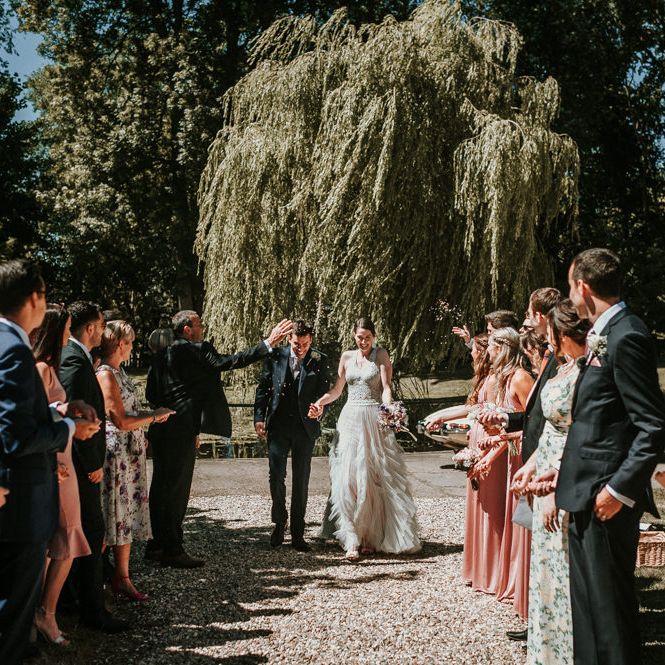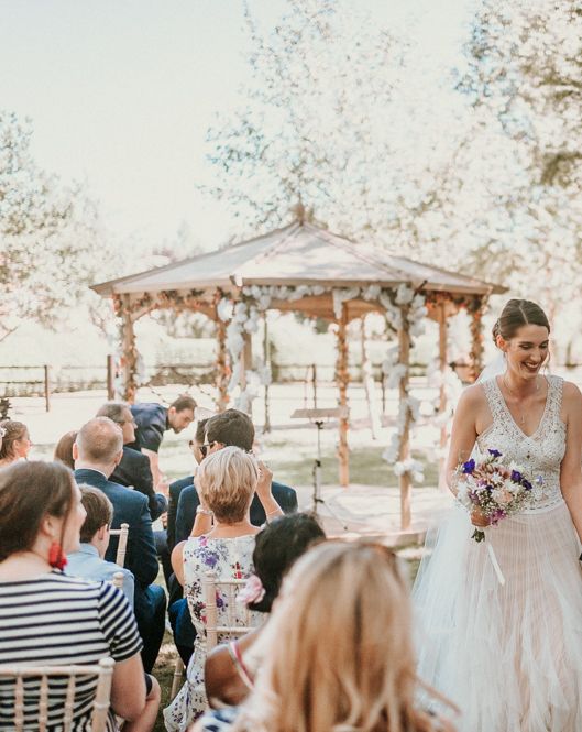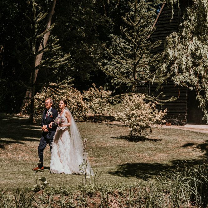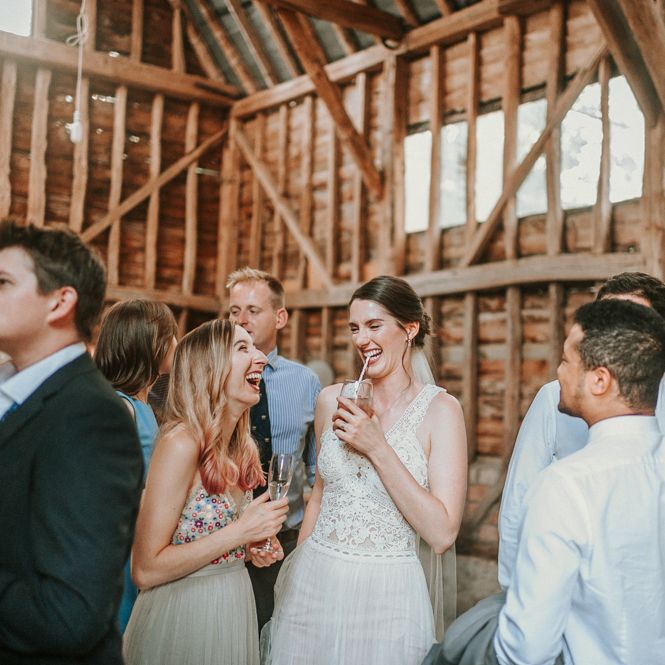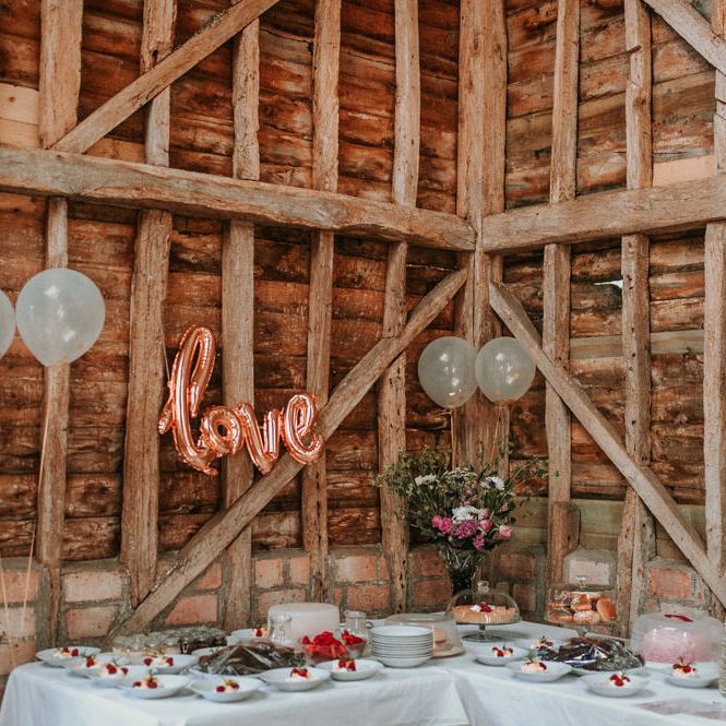 I wanted to try to achieve a relaxed English garden type vibe for the day. Our wedding was during the summer heatwave which allowed us to spend a lot of time outside, but also required us to water the grass for the days running up to the wedding! We arranged for Dominoes pizza to be delivered in the band's break and everyone was sitting on the grass with a box or two. The band were fantastic and we swung the barn doors open and danced the evening away. Alice, our photographer, and Bruno, our videographer, captured the day perfectly.