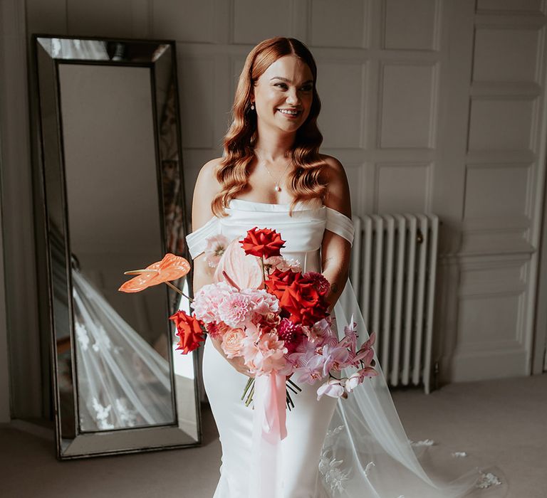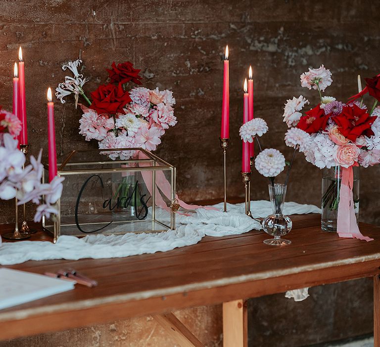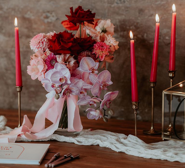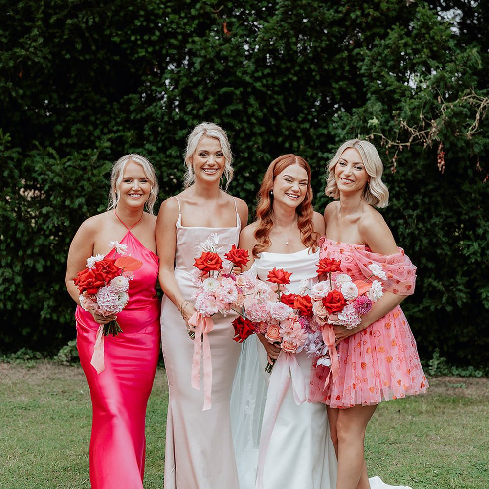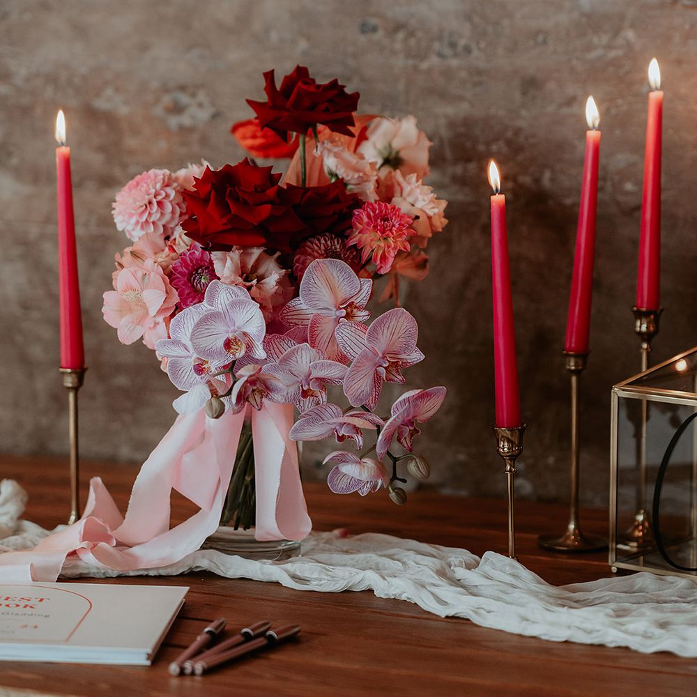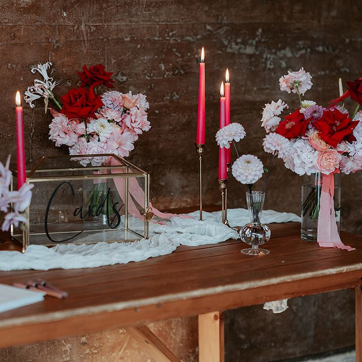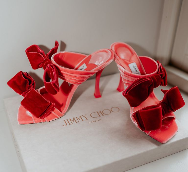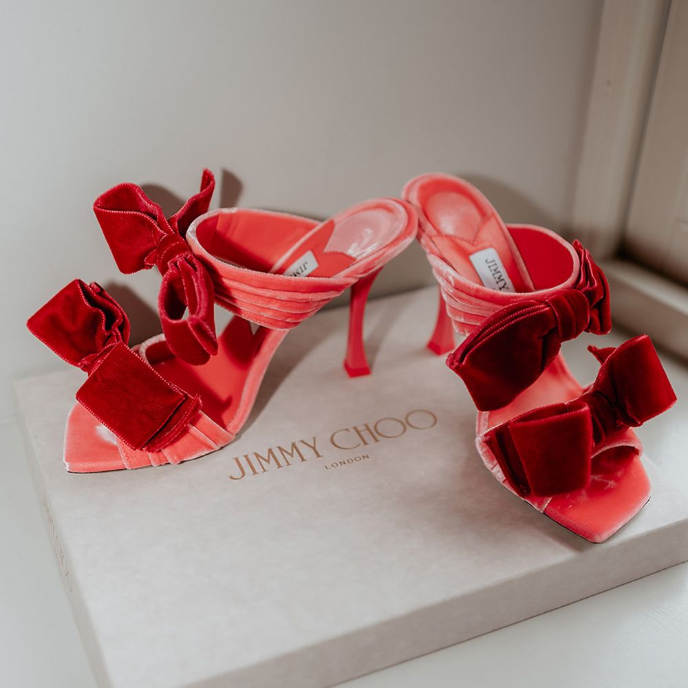 I always knew that pink would be the theme, but when I was gifted a pair of red and pink velvet Jimmy Choo heels from my sister and decided they would be my wedding shoes, I found myself basing the whole styling around them.