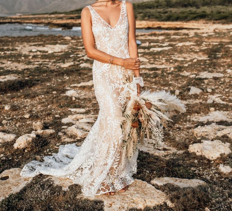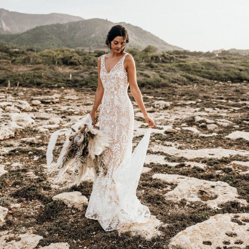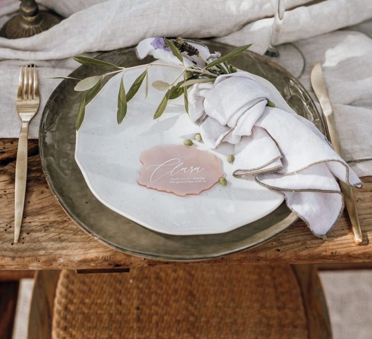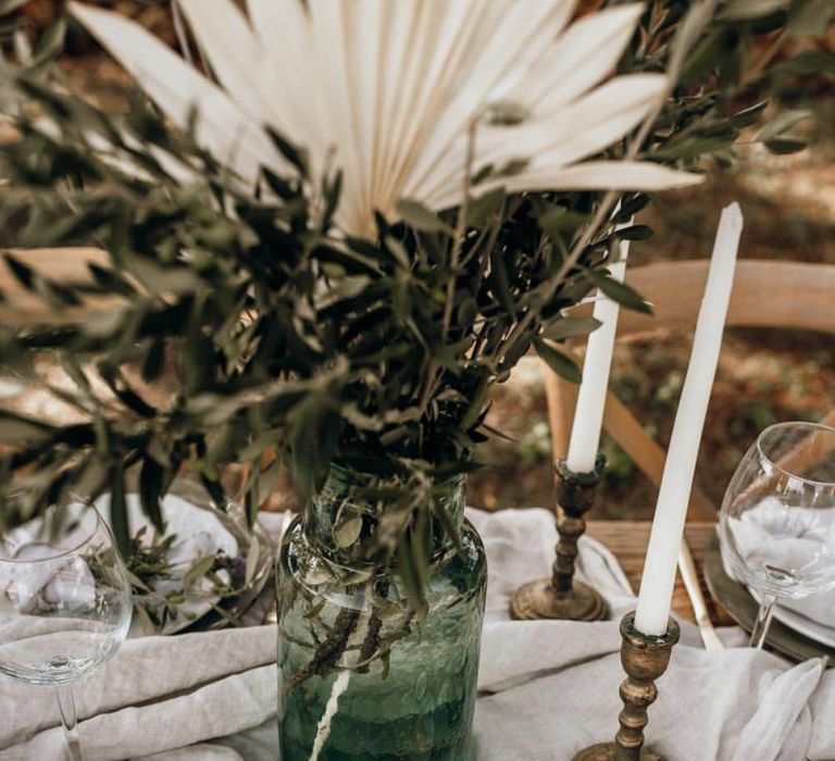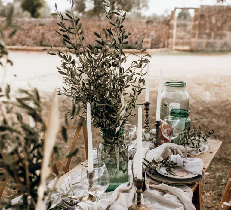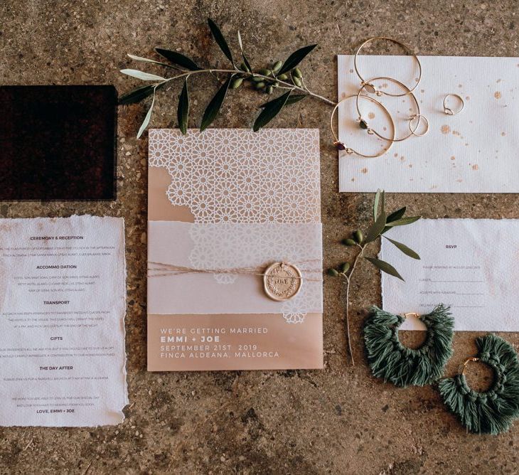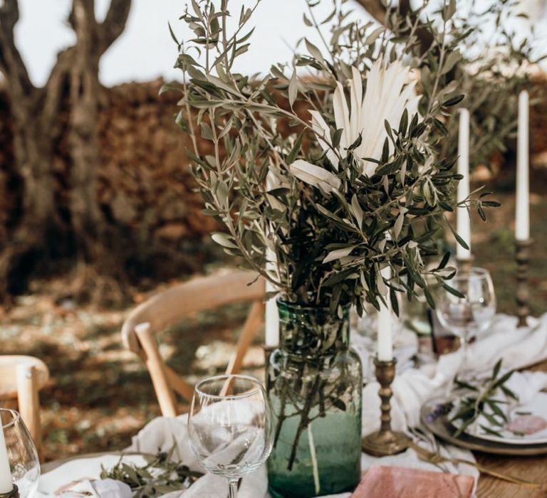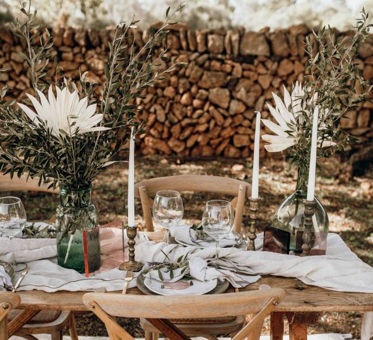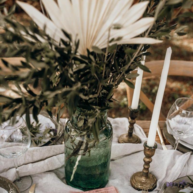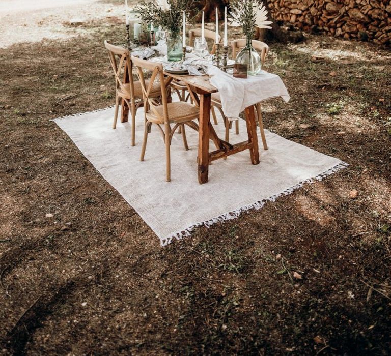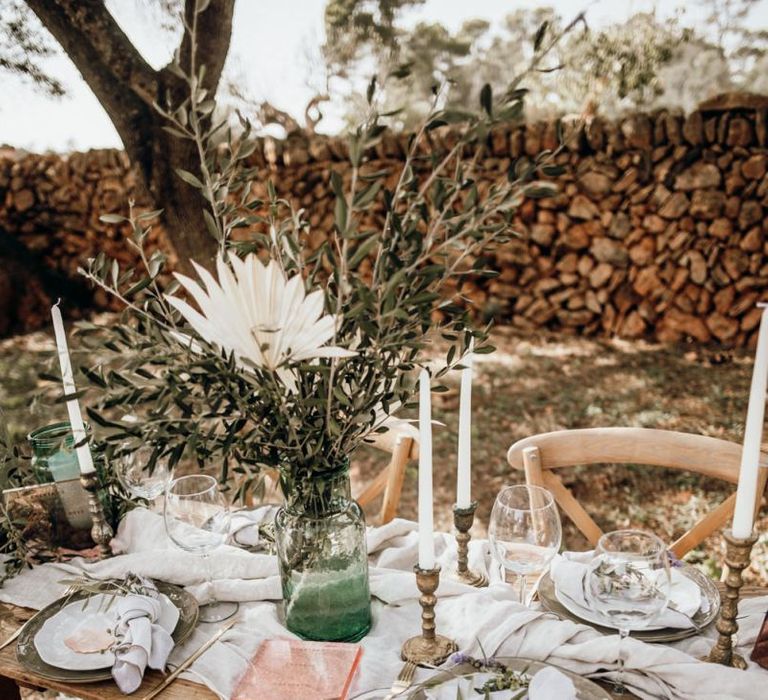 In this inspiration, we wanted to show the possibilities of celebrating in a private Finca, which is, in our opinion, one of the best options as you will have enough space for everyone to enjoy Mallorca's feel. As you can see, we decided to put the table setup somewhere outside in the shade of the trees to give the scene a natural and cozy vibe. The rentals are from