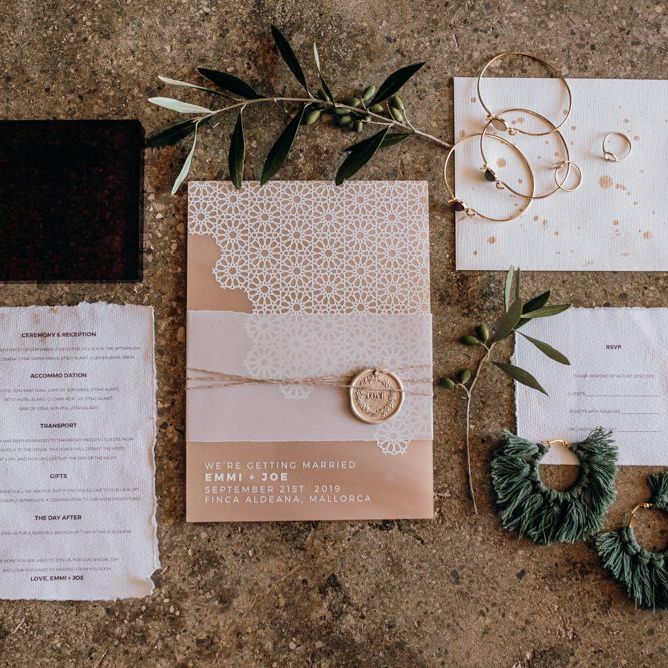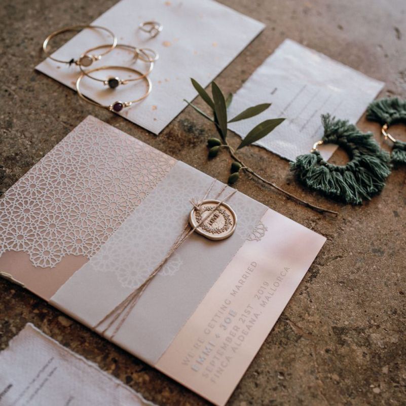 De Blanc. Both vendors are located on Mallorca. The stationery design is formed by