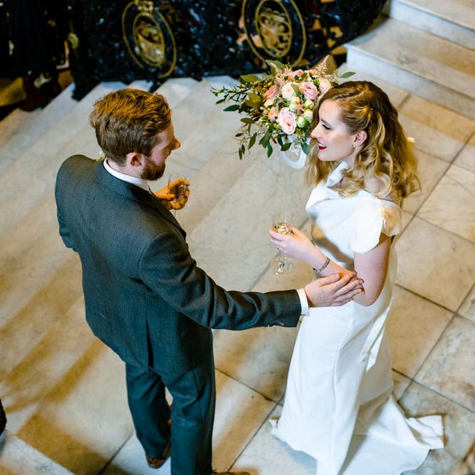 We just wanted something relaxed and fun. We were looking for somewhere we could imagine hanging out with friends, something that would be natural to us. That's why we swayed away from the Hotel or Manor House type venues and focused on restaurants/bars as they felt more like us. We liked the modern look of the Lead Station. We styled it with foliage runners and candles so make it feel more like a wedding and add some cosiness and colour. Our clothes were influenced in part by the venue as we wanted them to complement the style of the day. I ruled out one of the dresses as the skirt felt too big for the town hall and restaurant, the dress I chose complemented the settings better.
