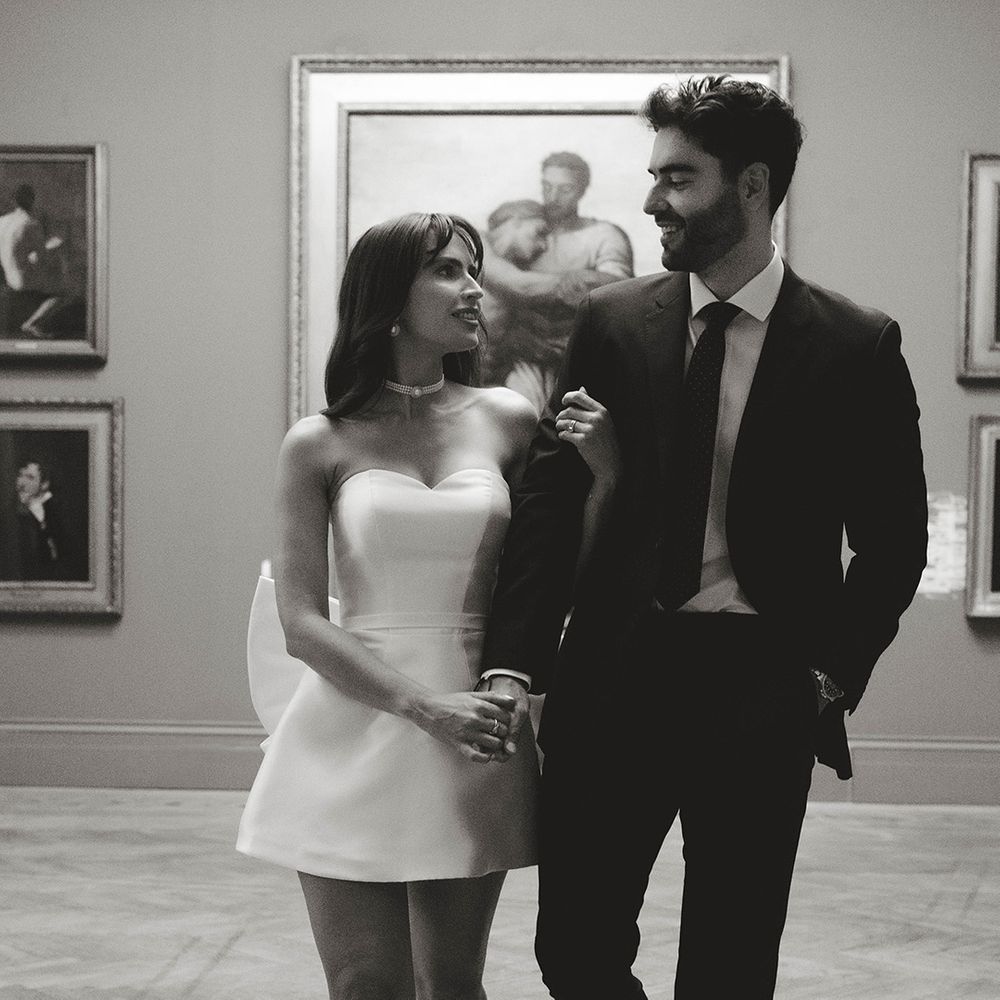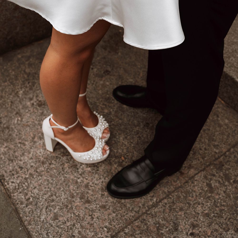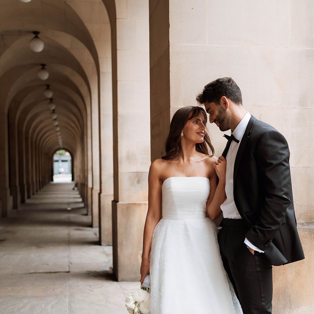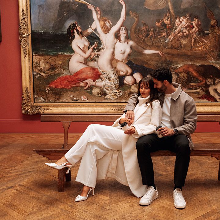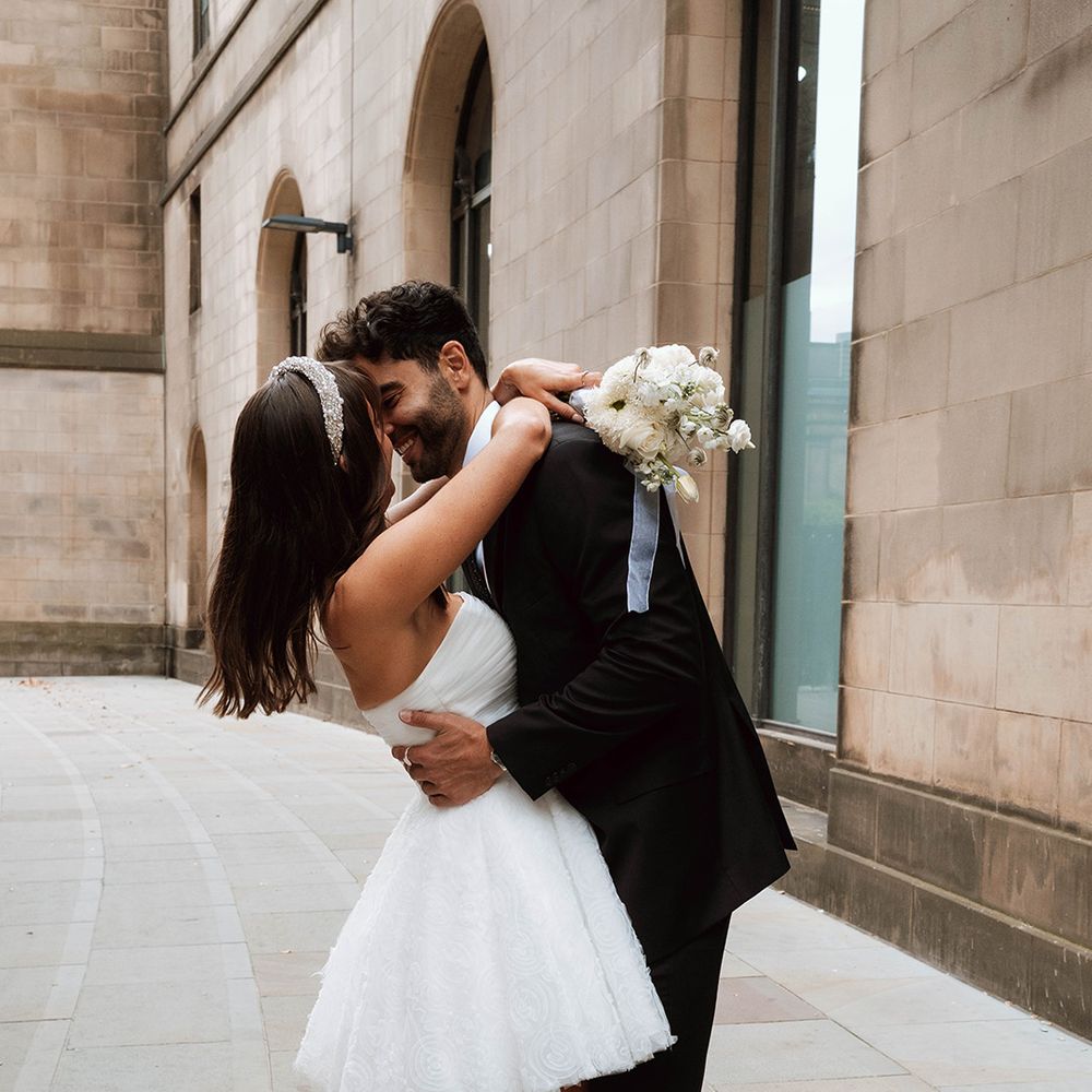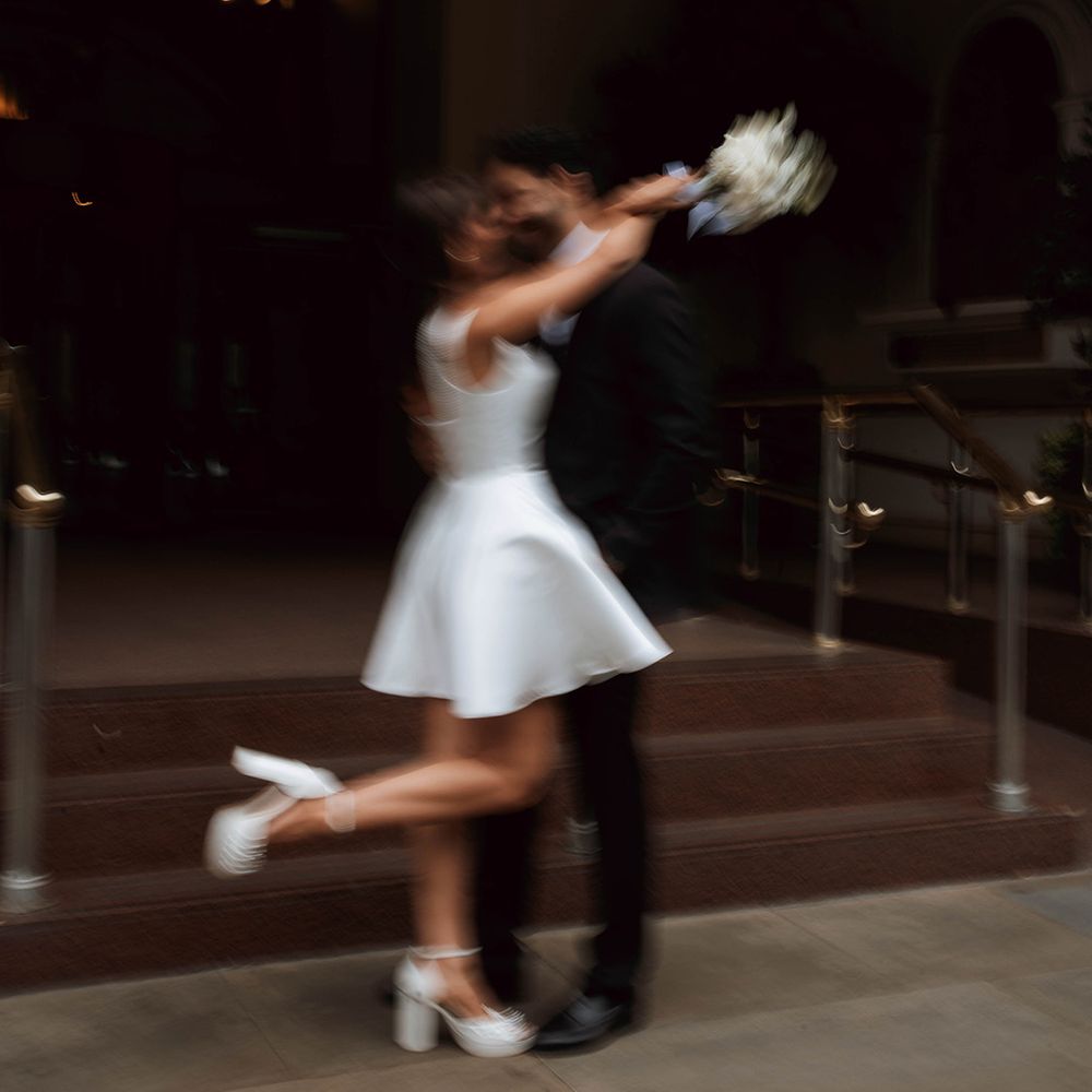 The vision for this shoot was twofold: firstly, to showcase our bridal mini dresses in a city centre elopement, captured in iconic Manchester venues that reflect our roots as a Manchester-based bridal brand. Secondly, to bring to life our campaign “Charlotte Mills for Every Occasion”, which tells the story of a couple on their wedding day and beyond, with the bride re-wearing her Charlotte Mills shoes for future milestones, from a romantic date at the art gallery to an anniversary celebration back at the very venue where they first said “I do”.