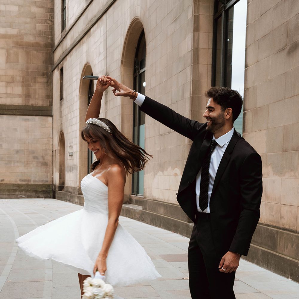 Step into Charlotte Mills’ Modern Manchester Elopement shoot featuring chic bridal mini dresses, versatile wedding shoes and inspiration beyond the big day.