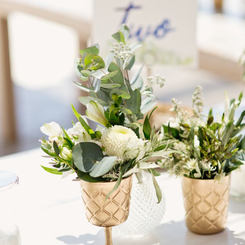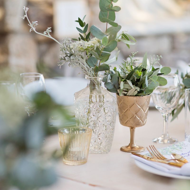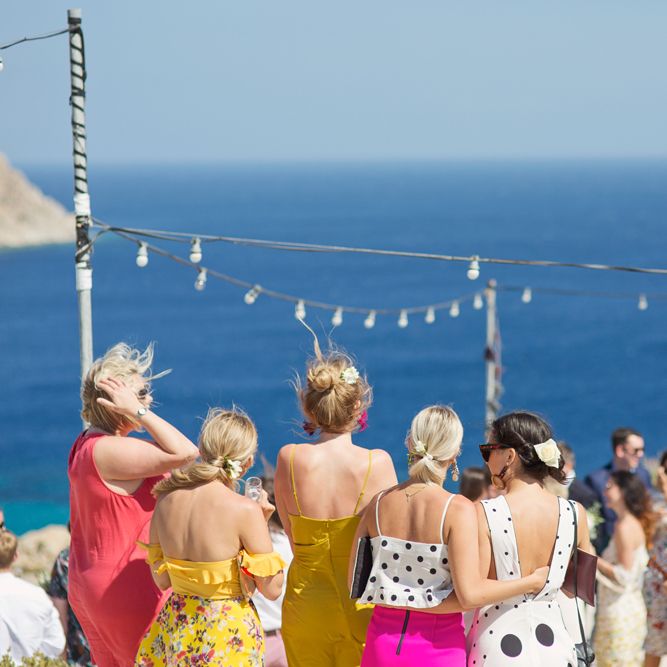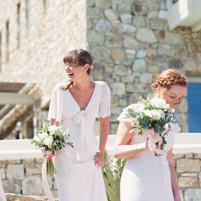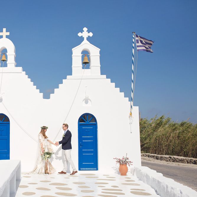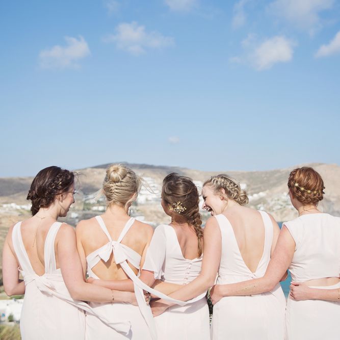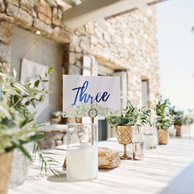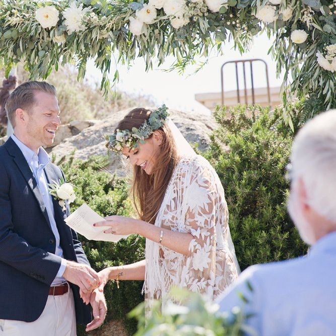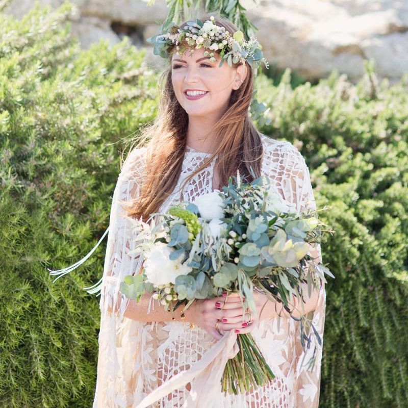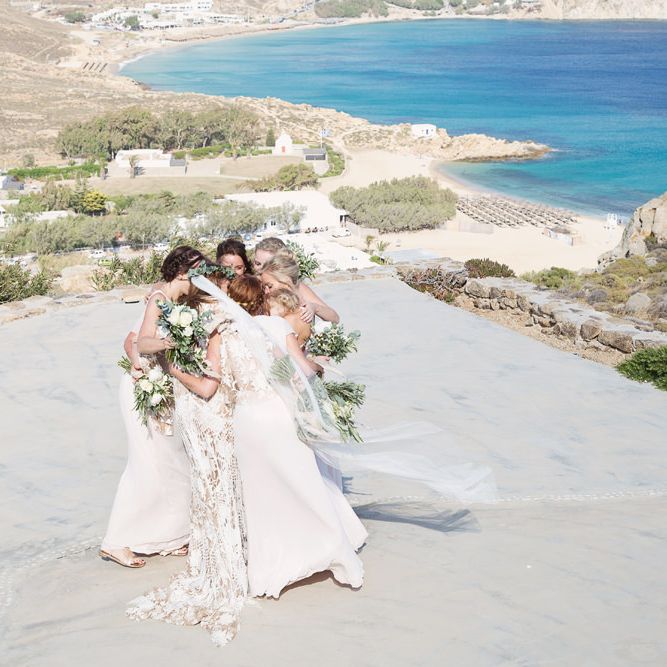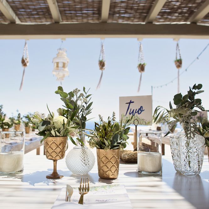 We wanted a very relaxed, untraditional style that encapsulated Mykonos Island’s vibe. Our rocky villas set in the cliffs overlooking the ocean set our scene, so our styling of neutral colours and bohemian accessories complimented this. My dress was also a big factor and the fringing inspired all the macramé elements. For the general atmosphere, we really wanted a relaxed holiday that our friends and family would love, not just a wedding day for us. The vibe for the whole week was incredible, everyone was so relaxed and had so much fun! We were all on such a high!