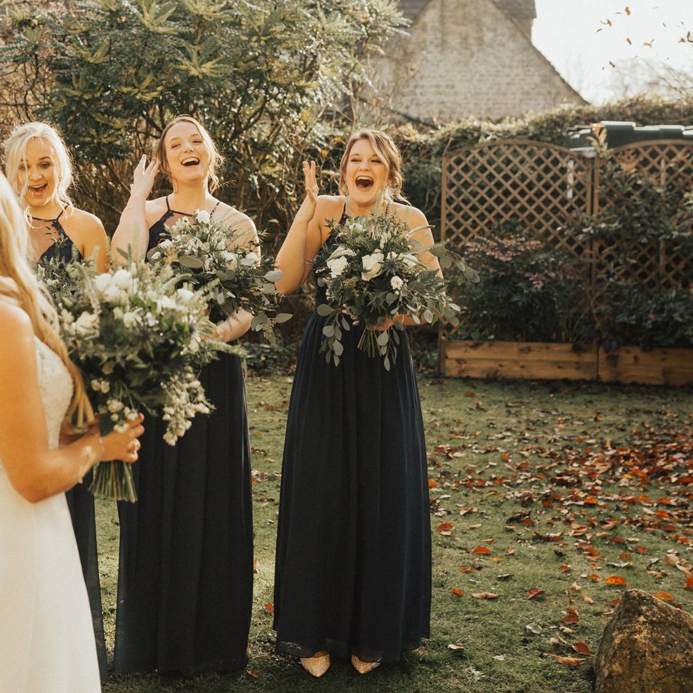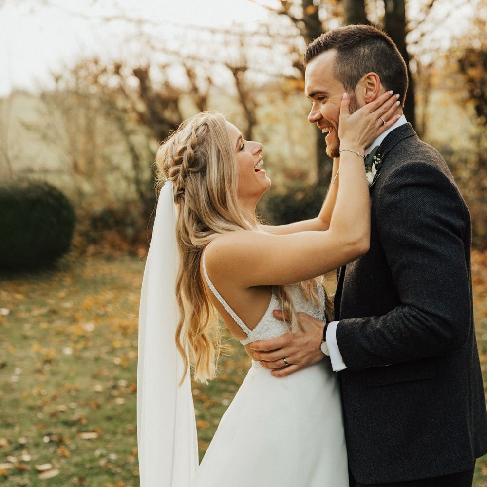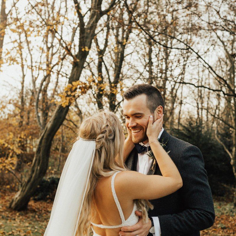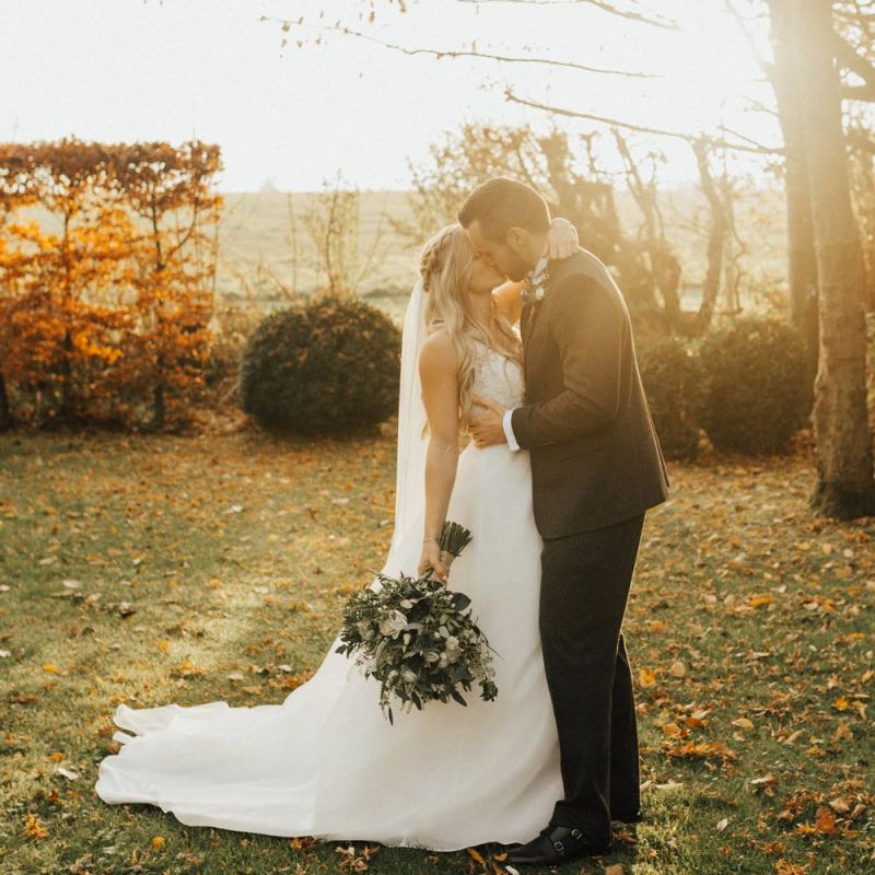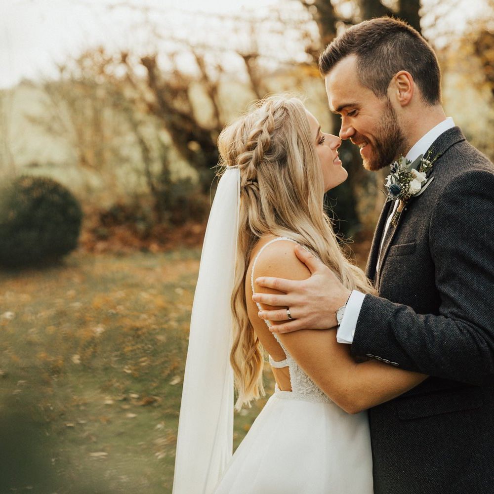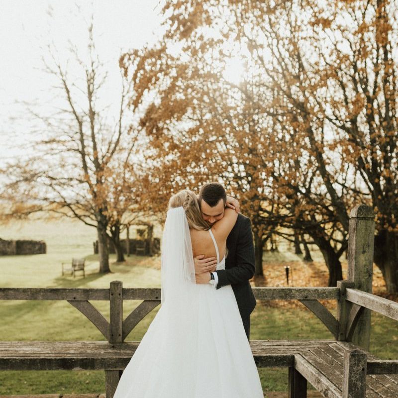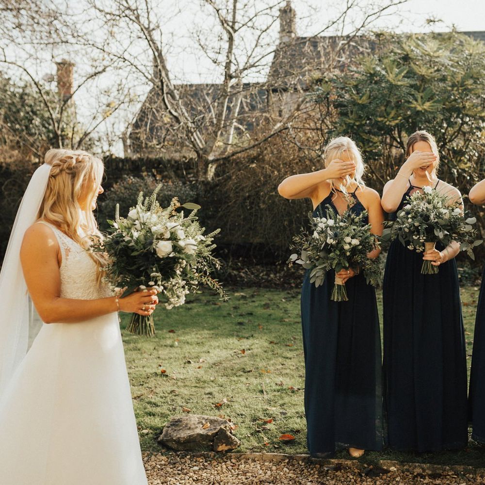 We did a 'first look' or ‘bride reveal' before our ceremony which was one of the most special moments. This was a last-minute decision and weather dependant - of course, we ending up having the most beautiful day with winter sun and we are so glad we decided to do this to share our last kiss together before becoming husband and wife. Having been childhood sweethearts (from aged 14 and 16) and together for 12 years, it felt really right to have this informal moment together before the ceremony where we could share our excitement, nerves and love for each other before we said I do. (It was also important from a photography perspective to catch us together as bride and groom in the light before it got dark!)