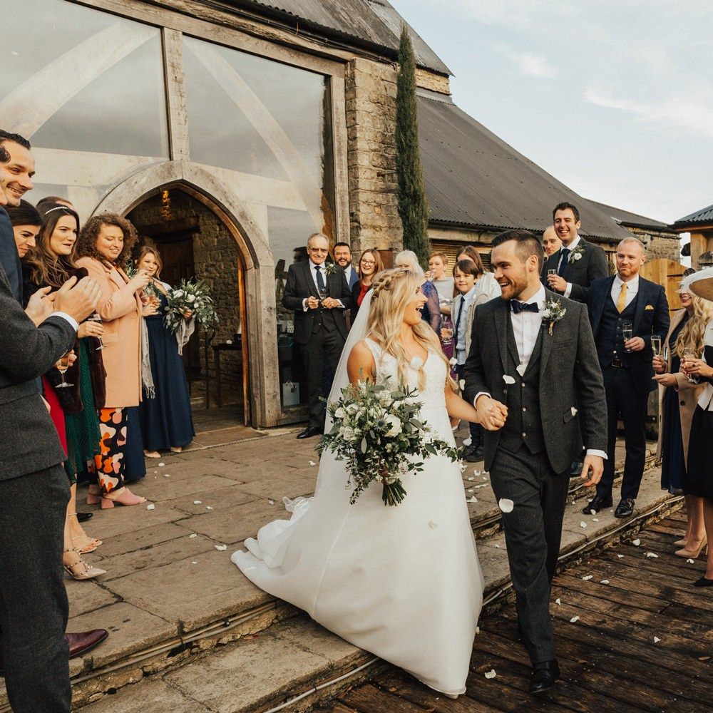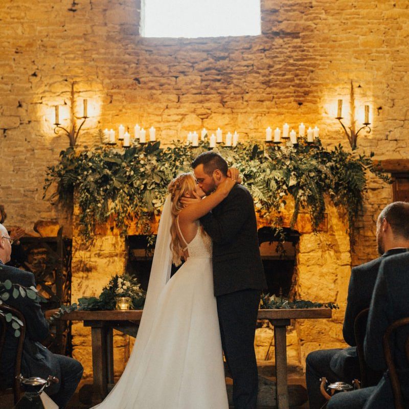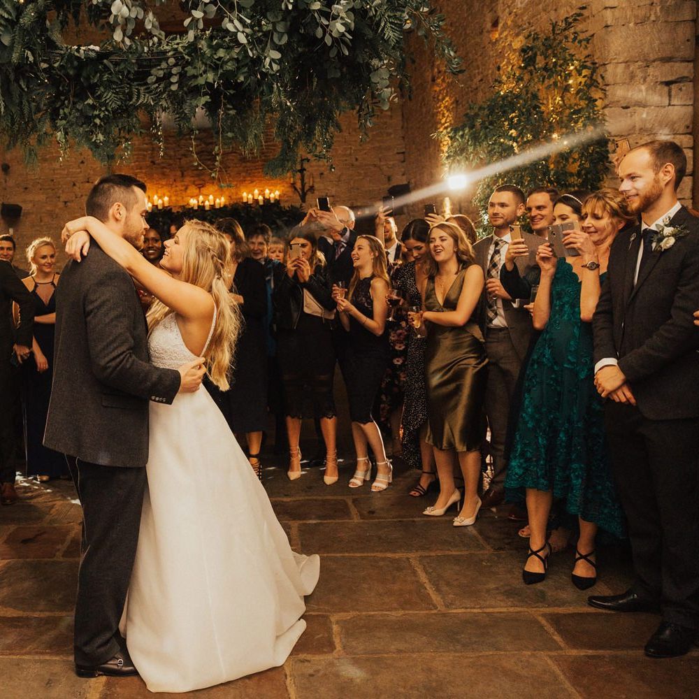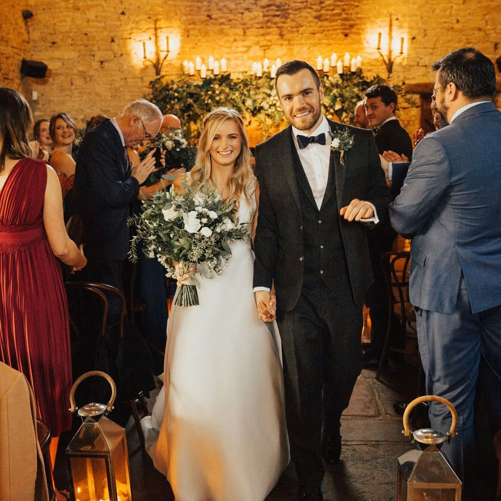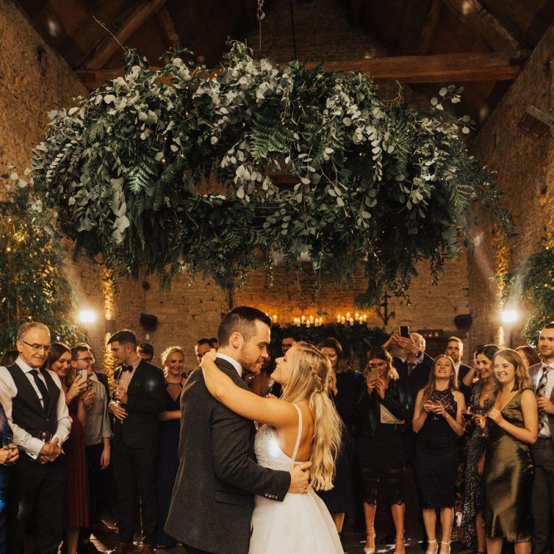 The magical fairy lights and fireplace in the beautiful Cripps Barn made our winter wedding day feel extra special, unique and romantic. Everything from our private first dance by Damson Sky Duo, to the guests carving their own meat at the table, to doing a Brides speech, lighting up the sky with smoke bombs and sparklers, and doing a bride reveal before the ceremony made our day stand out. Guests loved the food including our second wedding cake of cheese - the perfect winter feast with meats, fresh bread and chutney, which kept everyone dancing all night - the dance floor was never empty!