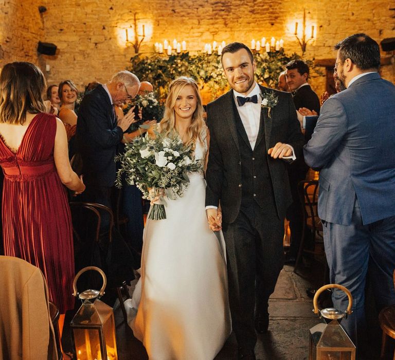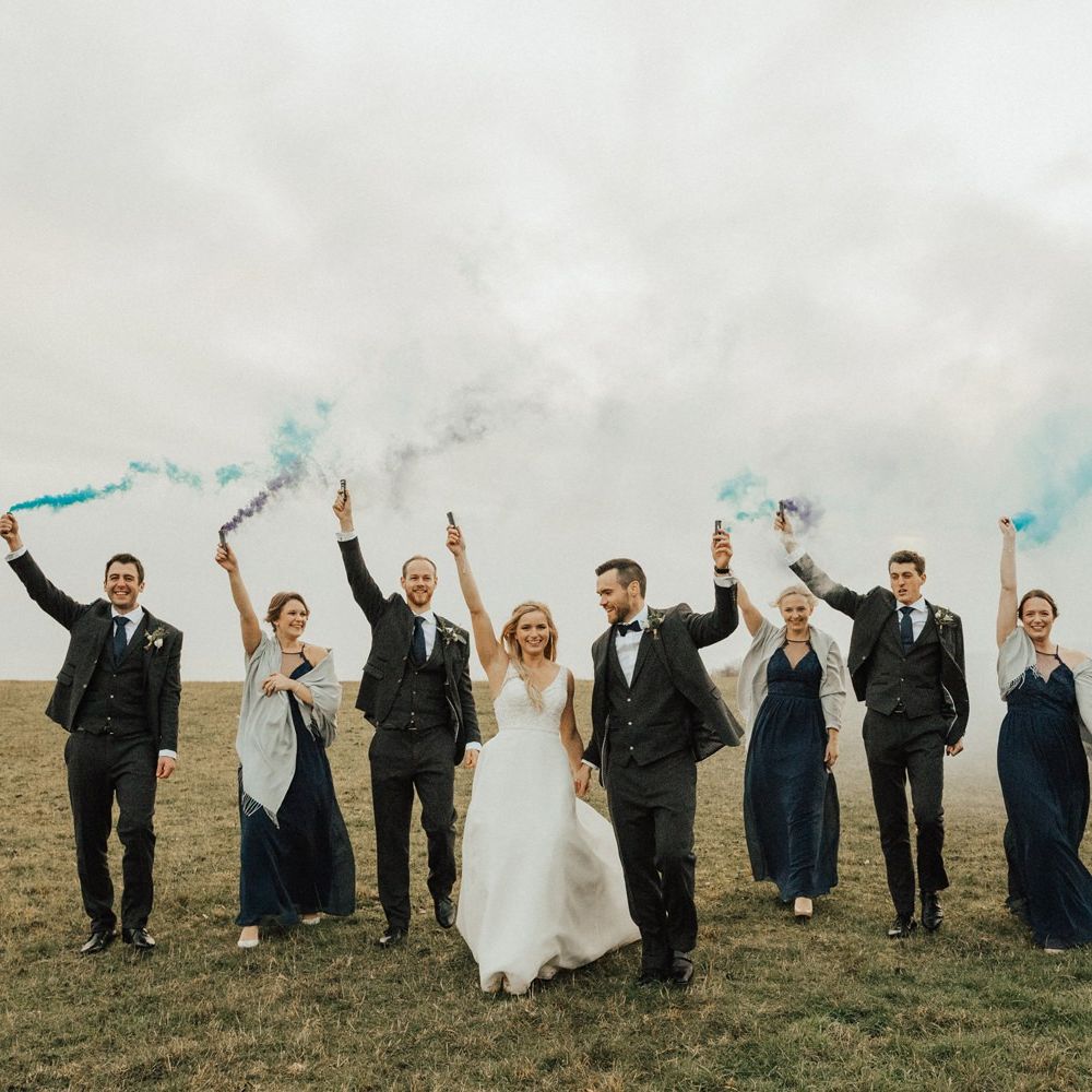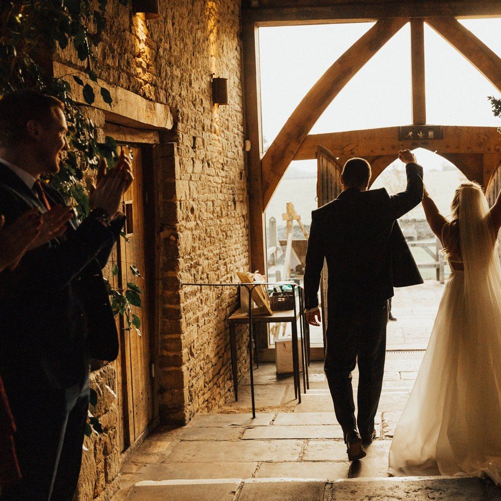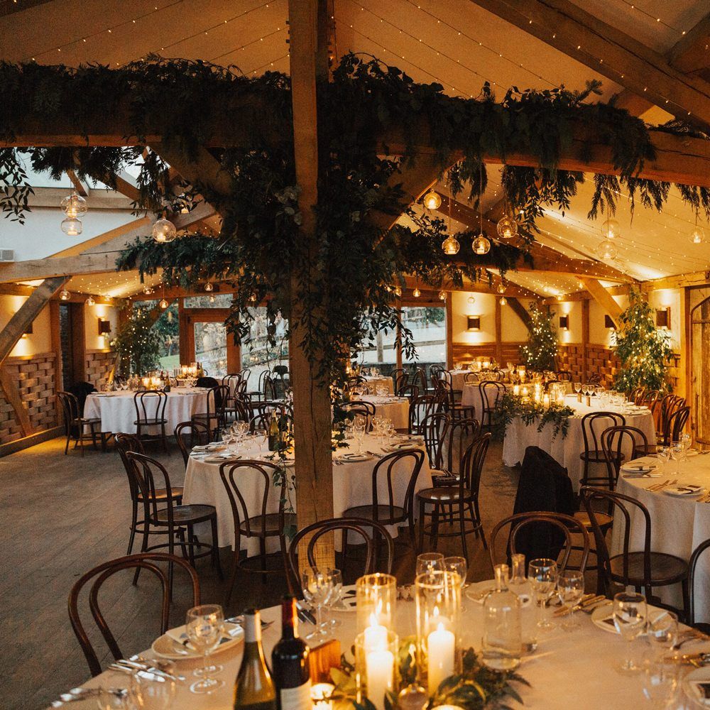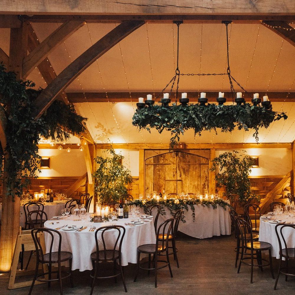 The magical fairy lights and fireplace in the beautiful Cripps Barn made our winter wedding day feel extra special, unique and romantic. Everything from our private first dance by Damson Sky Duo, to the guests carving their own meat at the table, to doing a Brides speech, lighting up the sky with smoke bombs and sparklers, and doing a bride reveal before the ceremony made our day stand out. Guests loved the food including our second wedding cake of cheese - the perfect winter feast with meats, fresh bread and chutney, which kept everyone dancing all night - the dance floor was never empty!