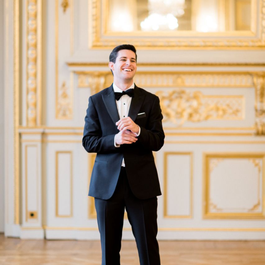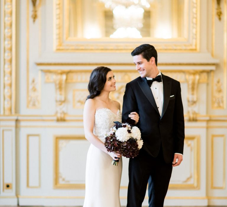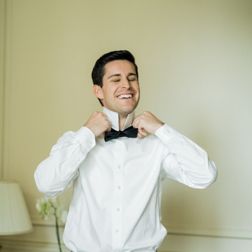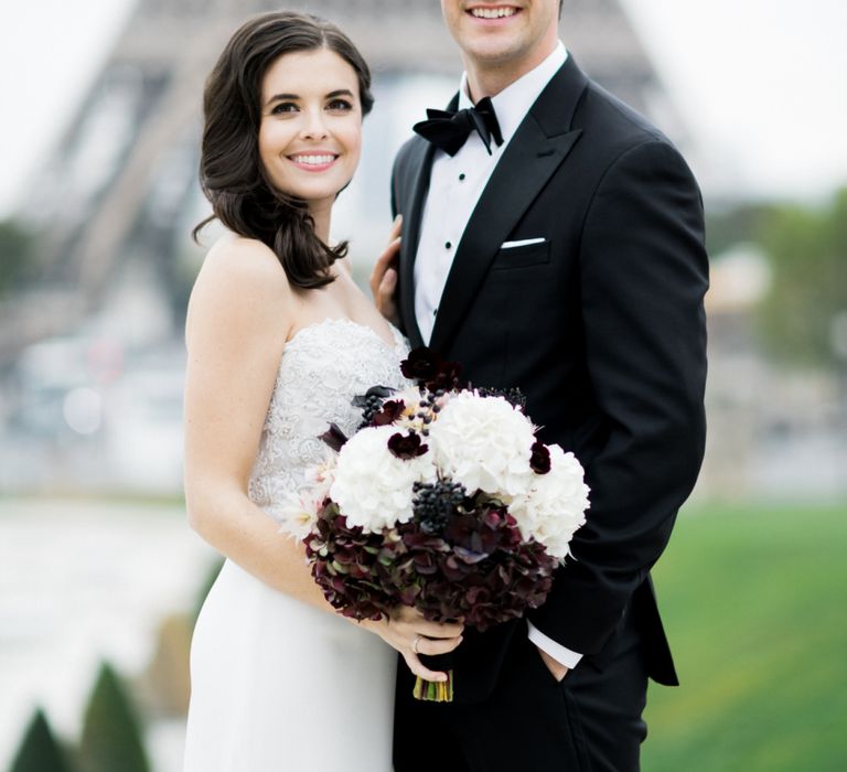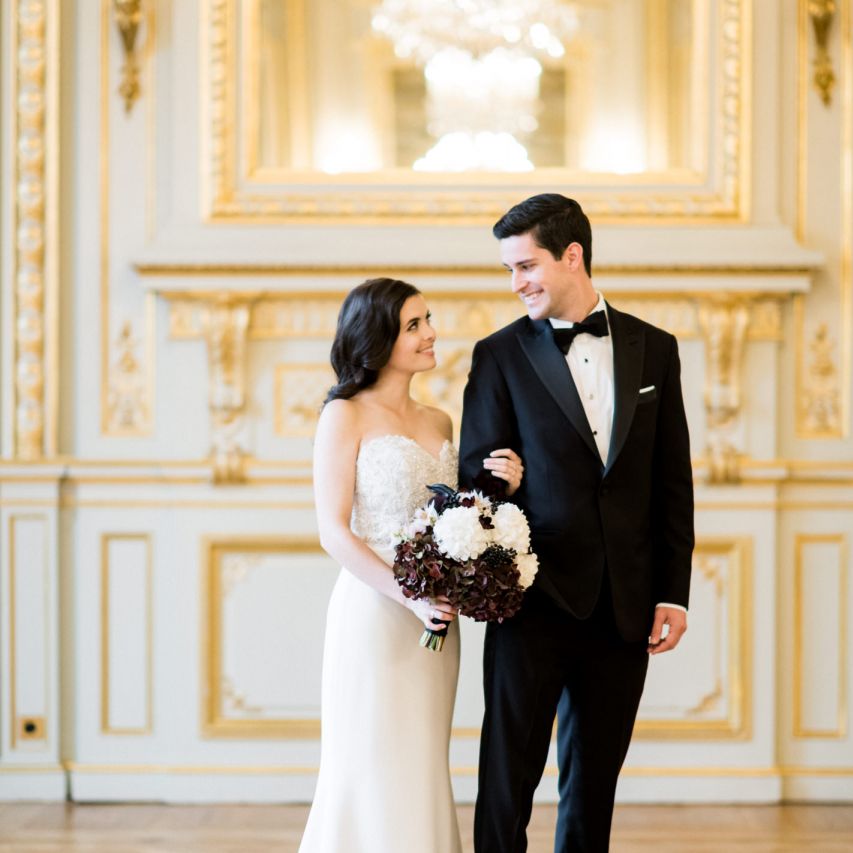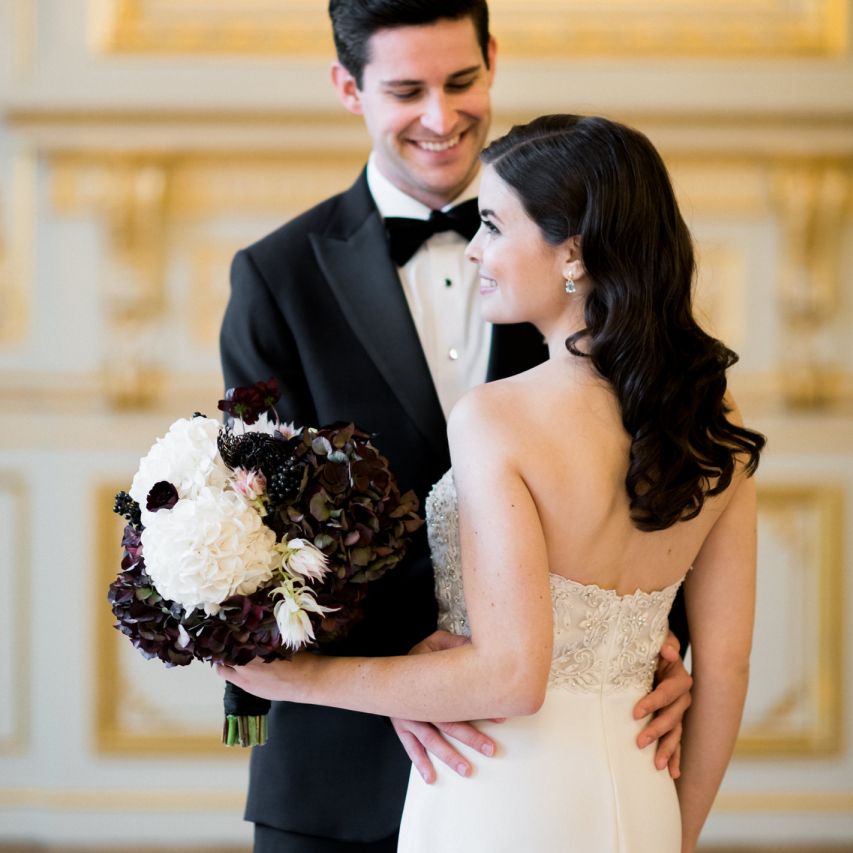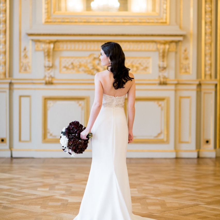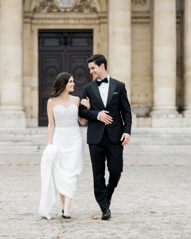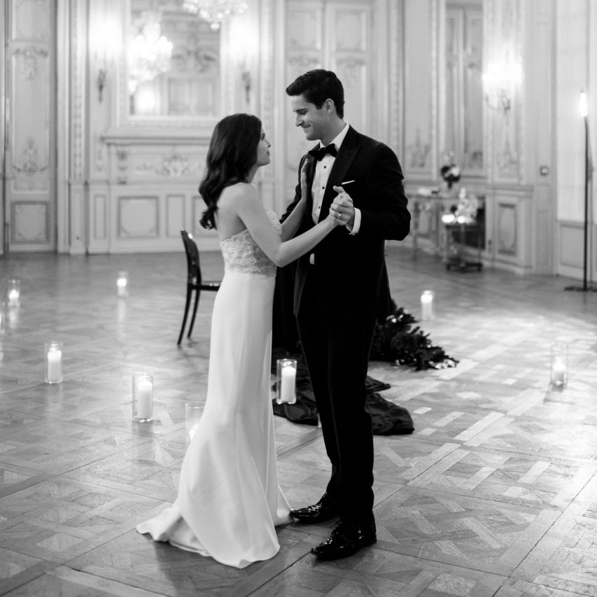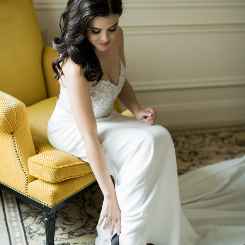 Although Paris is not known for being sunny in October, the days leading up to our wedding were unseasonably warm and absolutely gorgeous for that time of year. On our wedding day we woke up to overcast skies, wet weather, and a big drop in temperature, I was so down. Adam assured me it would be okay and we'd make the best of it. In the end, it turned out better than okay. The rain cleared up just in time for pictures around the city and ready for our outdoor ceremony. For dinner, we had originally planned to be served outside on the terrace but it was moved inside into the Shangri-La's incredible Grand Salon. We ended up having the entire space to ourselves and it truly could not have been a more magical setting. - Brooke & Adam