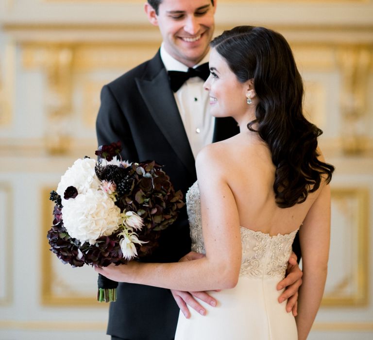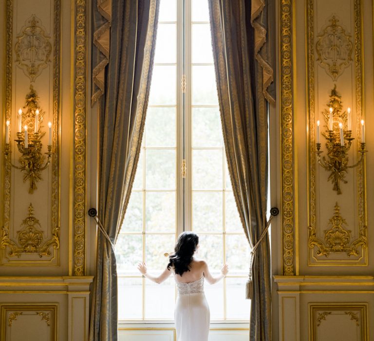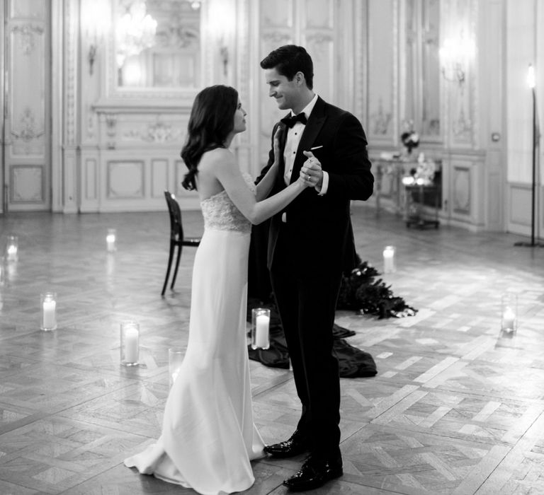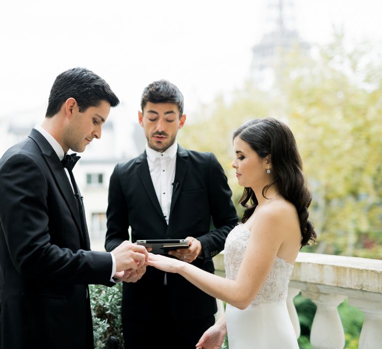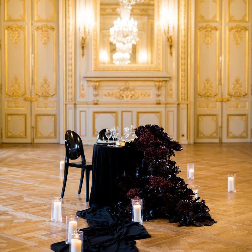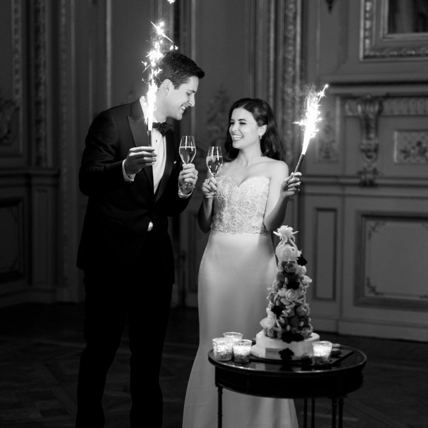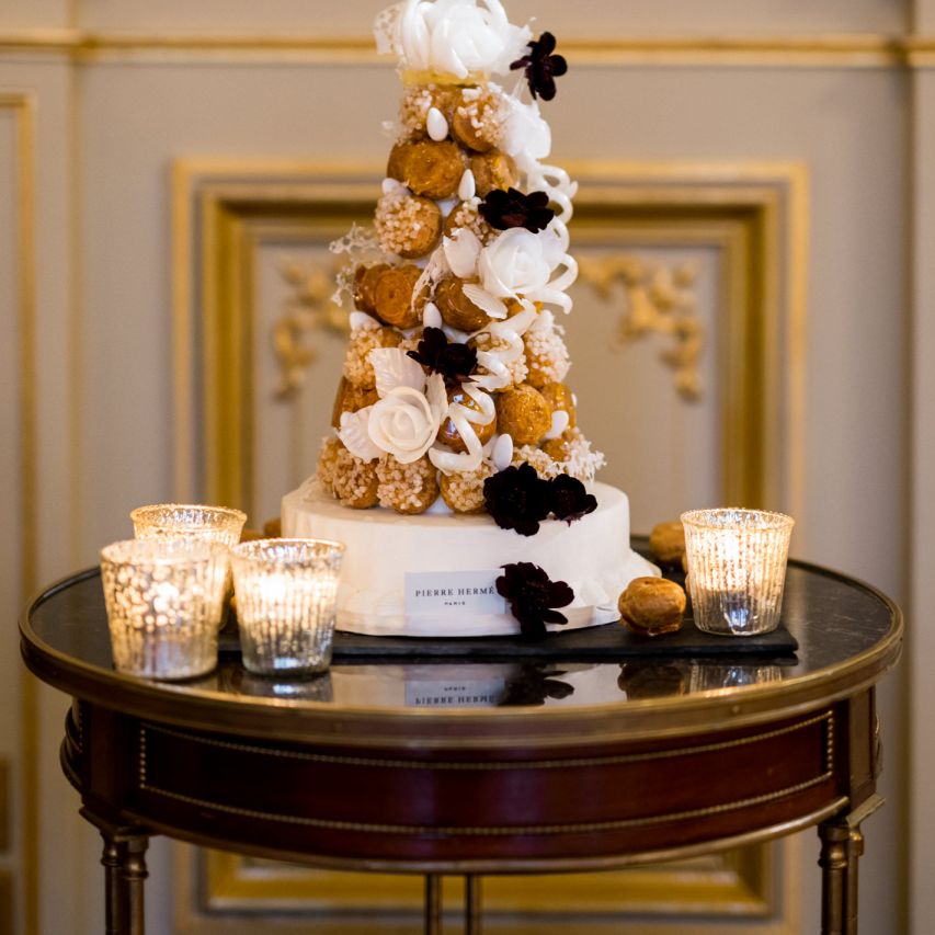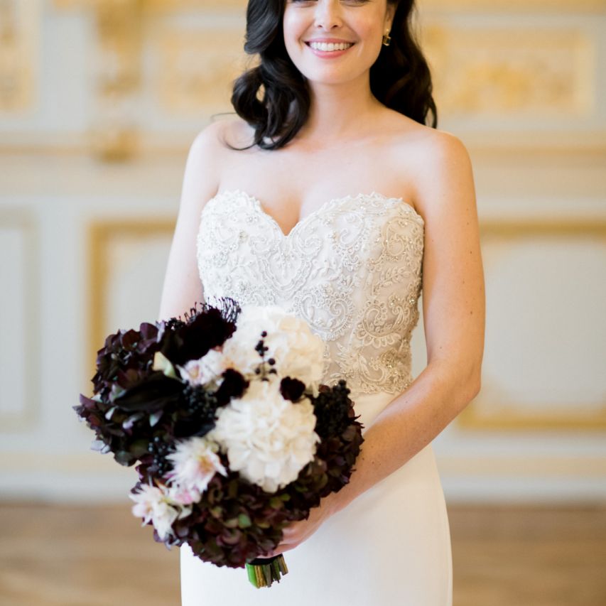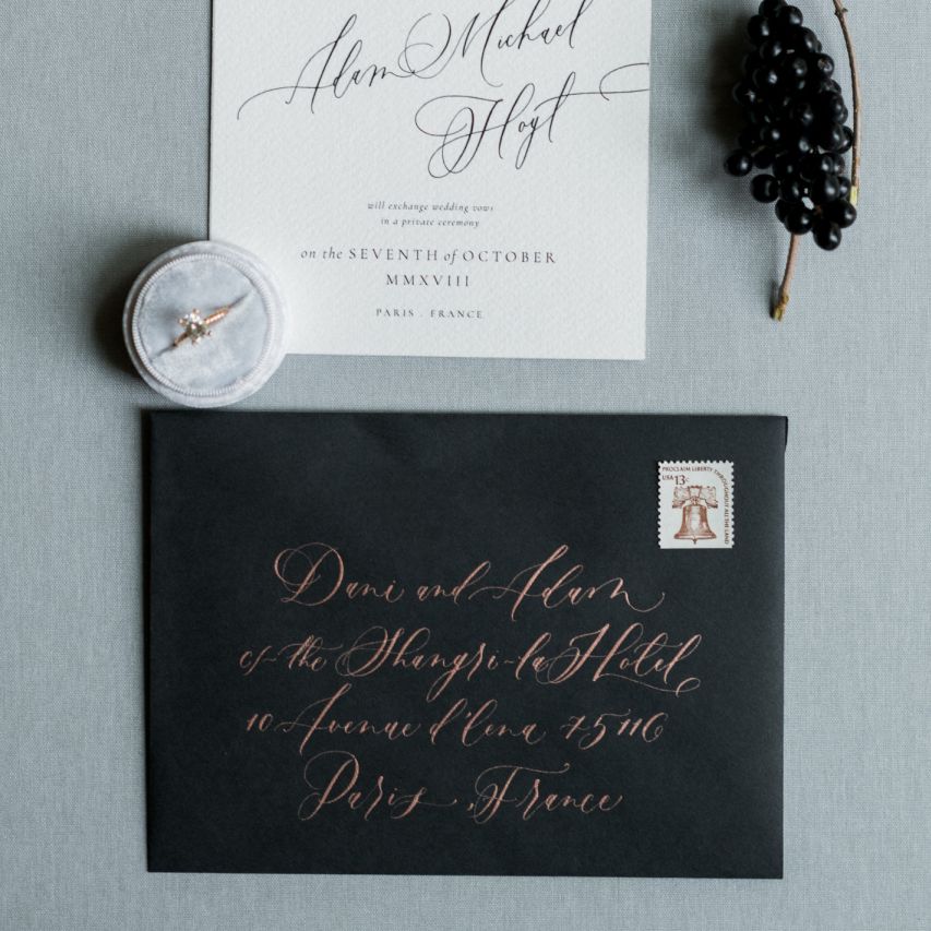 Although Paris is not known for being sunny in October, the days leading up to our wedding were unseasonably warm and absolutely gorgeous for that time of year. On our wedding day we woke up to overcast skies, wet weather, and a big drop in temperature, I was so down. Adam assured me it would be okay and we'd make the best of it. In the end, it turned out better than okay. The rain cleared up just in time for pictures around the city and ready for our outdoor ceremony. For dinner, we had originally planned to be served outside on the terrace but it was moved inside into the Shangri-La's incredible Grand Salon. We ended up having the entire space to ourselves and it truly could not have been a more magical setting. - Brooke & Adam