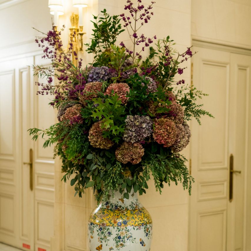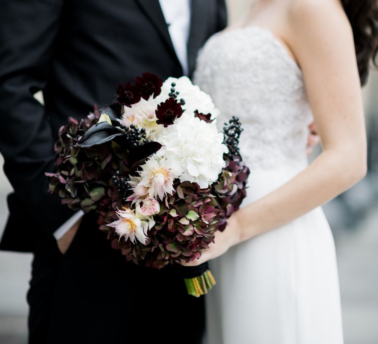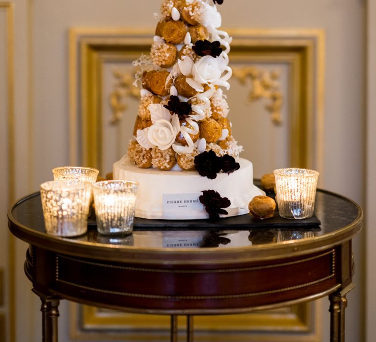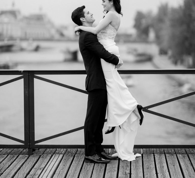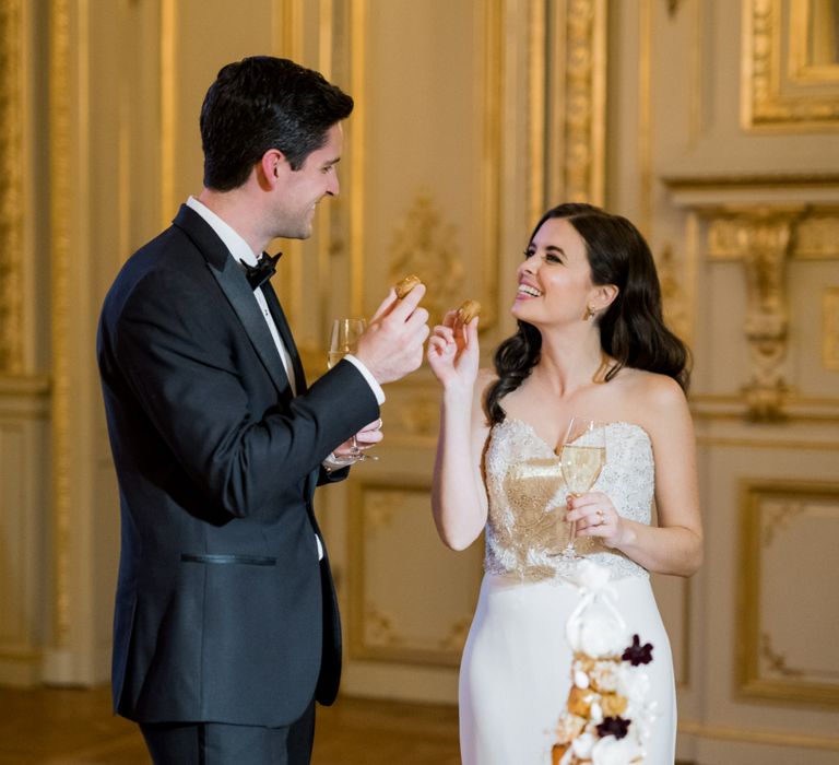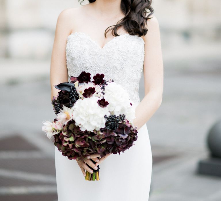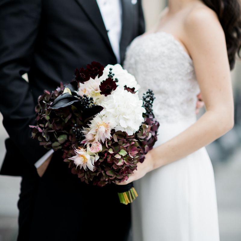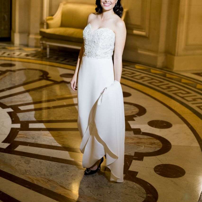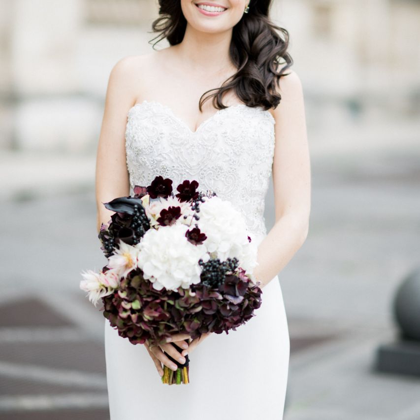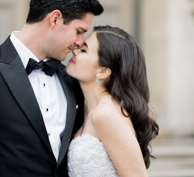 Although Paris is not known for being sunny in October, the days leading up to our wedding were unseasonably warm and absolutely gorgeous for that time of year. On our wedding day we woke up to overcast skies, wet weather, and a big drop in temperature, I was so down. Adam assured me it would be okay and we'd make the best of it. In the end, it turned out better than okay. The rain cleared up just in time for pictures around the city and ready for our outdoor ceremony. For dinner, we had originally planned to be served outside on the terrace but it was moved inside into the Shangri-La's incredible Grand Salon. We ended up having the entire space to ourselves and it truly could not have been a more magical setting. - Brooke & Adam