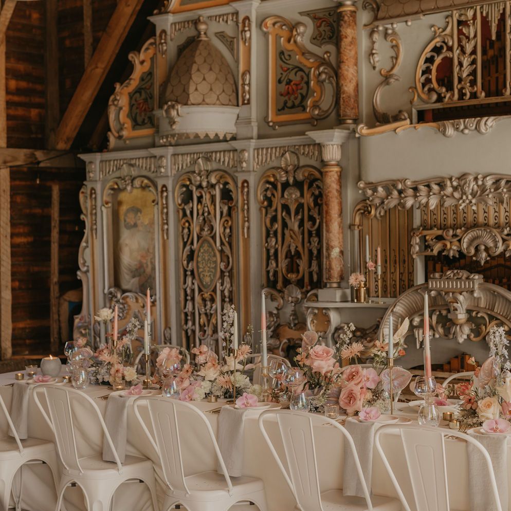 Preston Court is one of Kent’s most coveted wedding venues, known for its quirky take on a traditional barn venue - complete with a vintage carousel, festoon lighting in the courtyard, a beautiful lakeside pergola for intimate outdoor ceremonies and a swanky rustic bar. Breathtaking yet welcoming and relaxing all at the same time. We wanted to bring something different to a barn venue in Kent, our job is to bring couples fresh inspiration again and again!