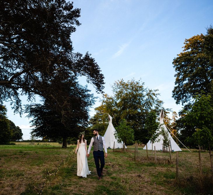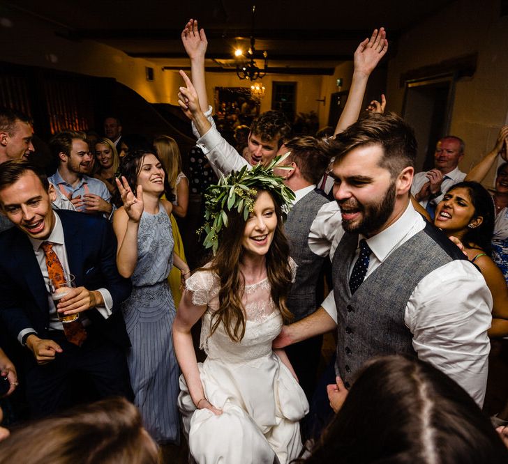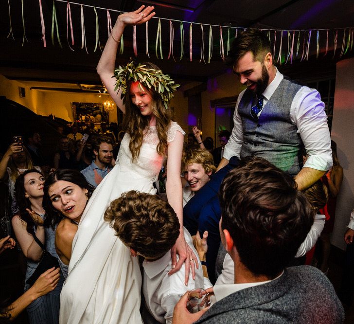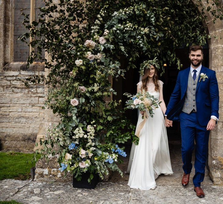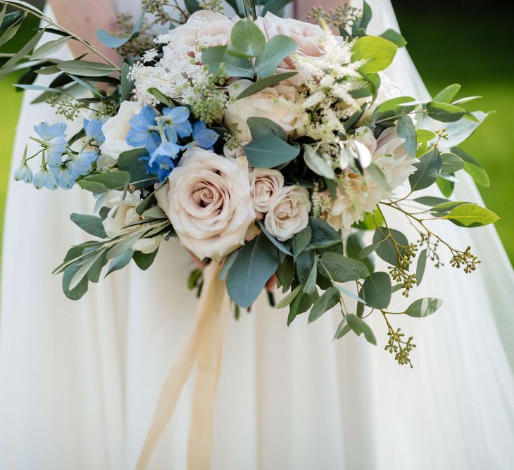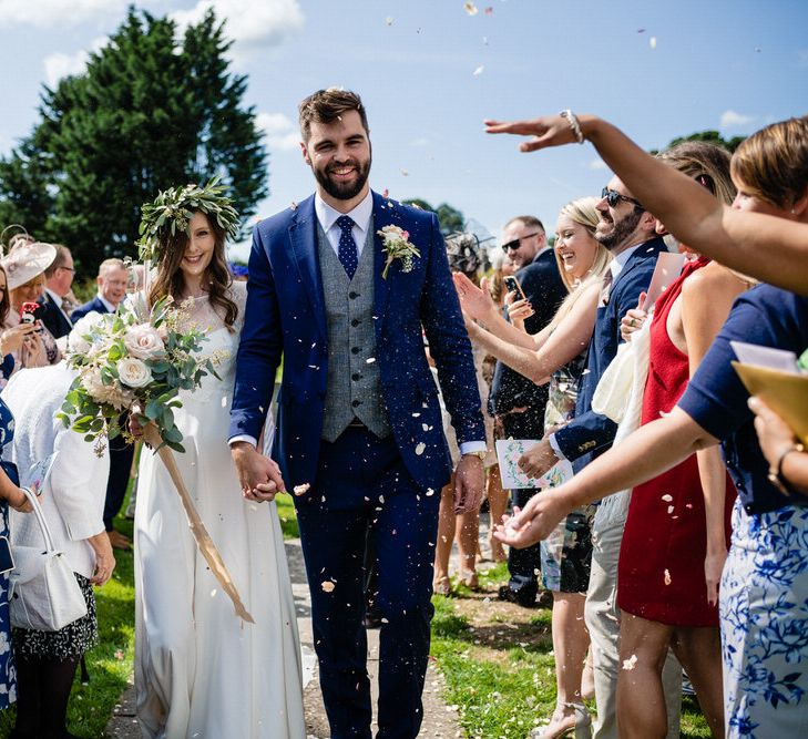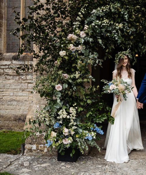 I found my wedding dress at Perfect Day Bridal in Bradford Upon Avon. The shop is beautiful and the girls who work there made me, my Mum and Granny feel so welcome! I chose a Charlie Brear dress with a separate French lace top and cathedral length veil. I wore my Mum’s rose gold bracelet, which she wore on her wedding day and Bob’s Mum bought me gold earrings. With eight bridesmaids – I originally thought I would get the girls to choose their own dresses in a similar shade and then found these dresses from Monsoon which they all loved and looked amazing in!