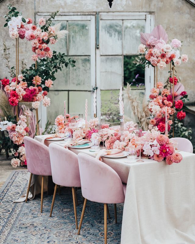 Pink Colour Scheme for Intimate Wedding Inspiration in a Glasshouse