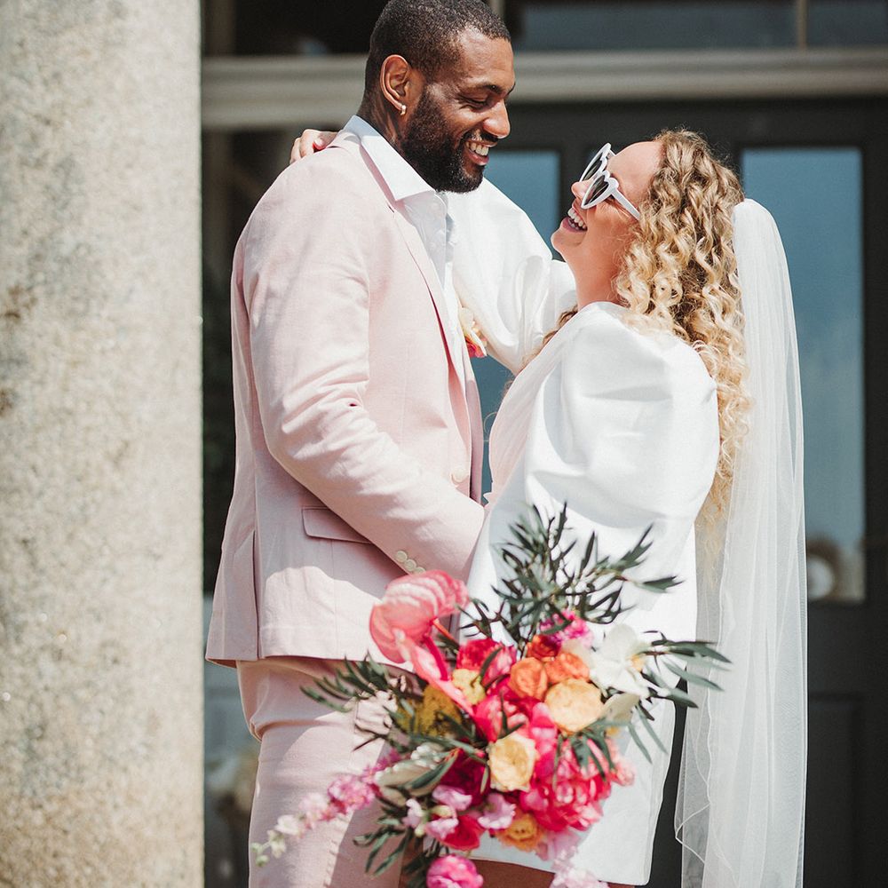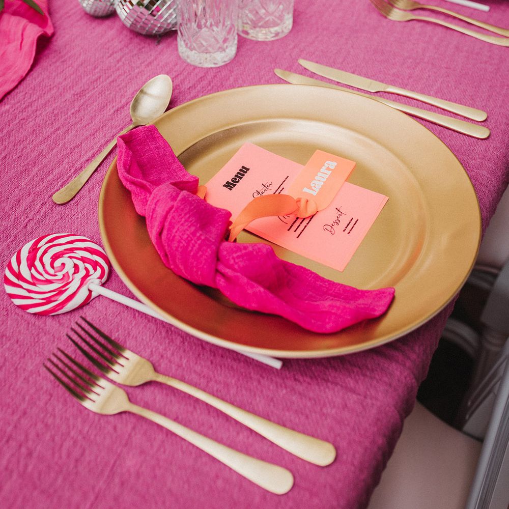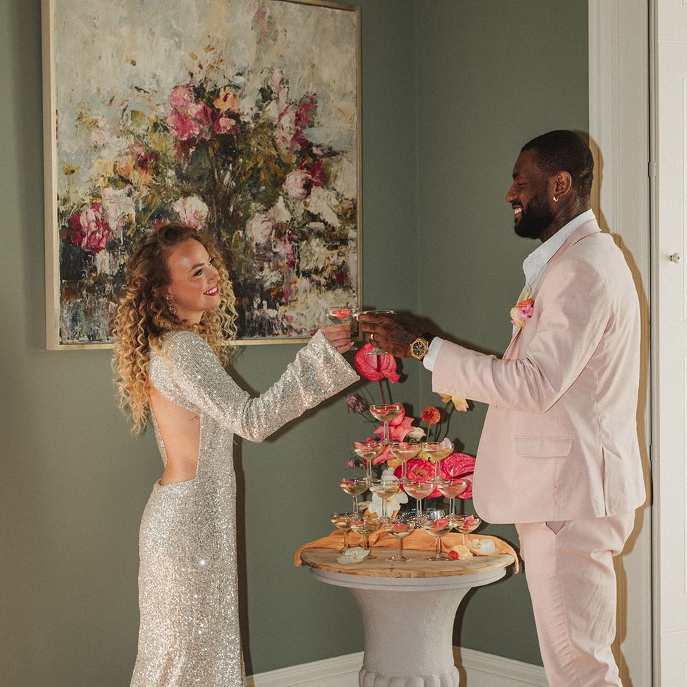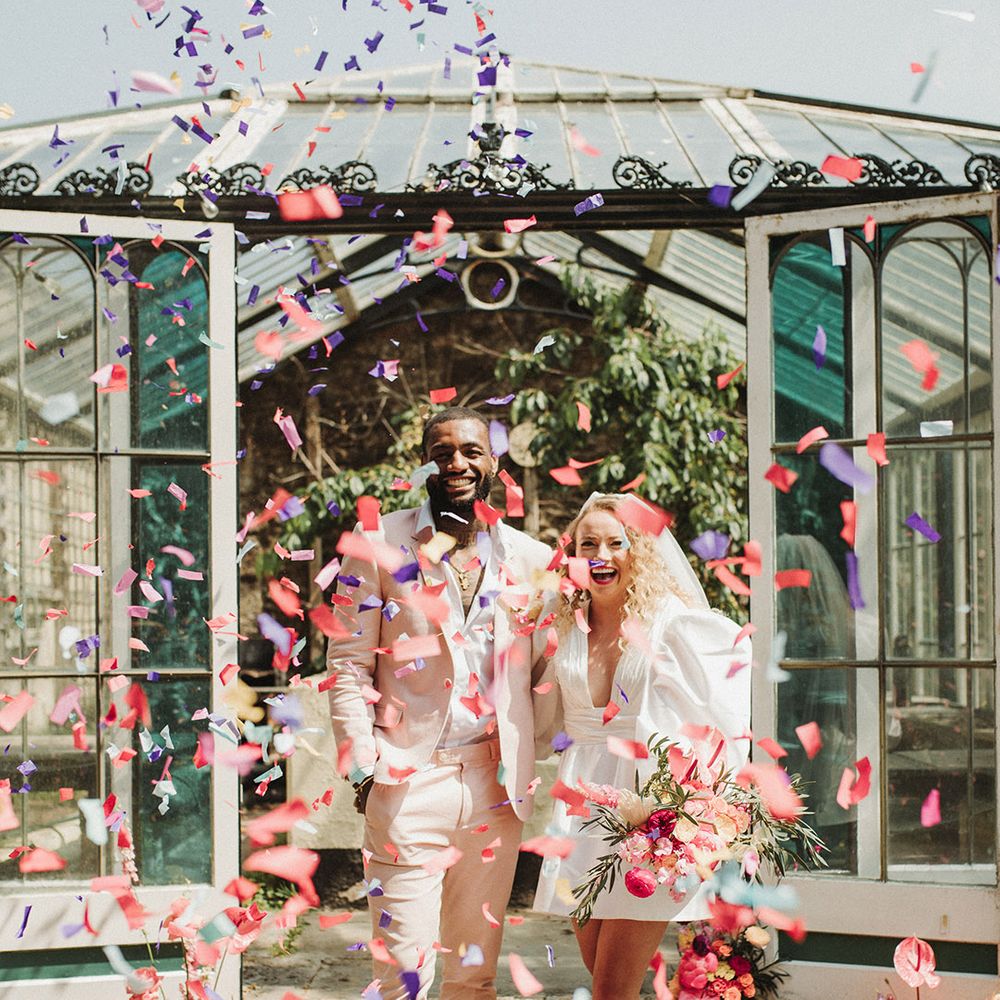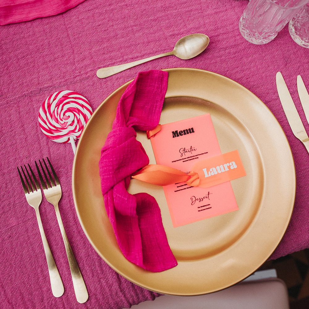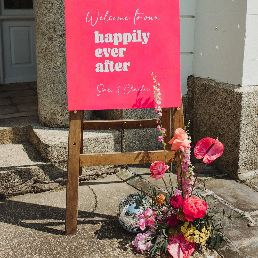We included disco balls in our table set-up and biodegradable confetti canons full of colour for that extra wow factor. The wedding cake also reflected the style of the shoot with disco balls and bright pink colouring.