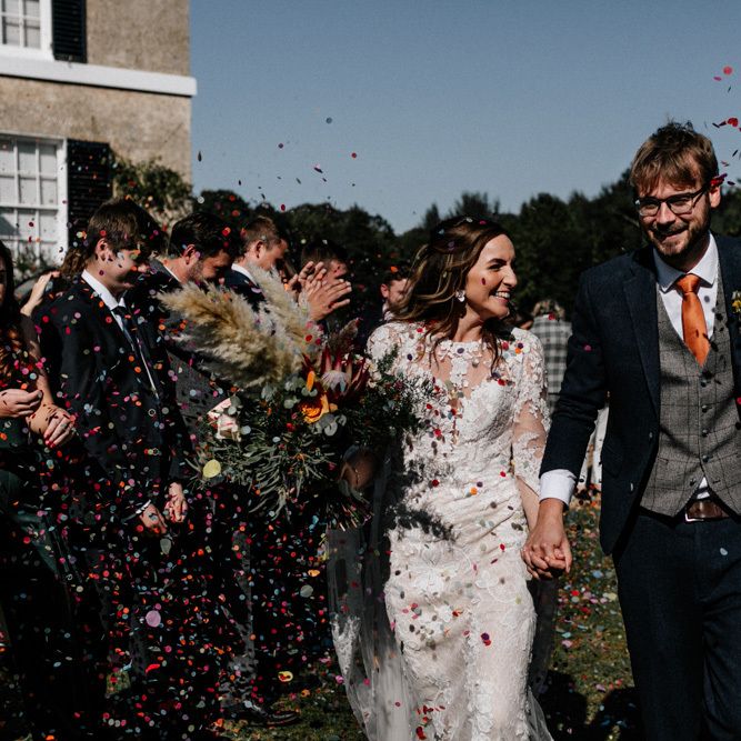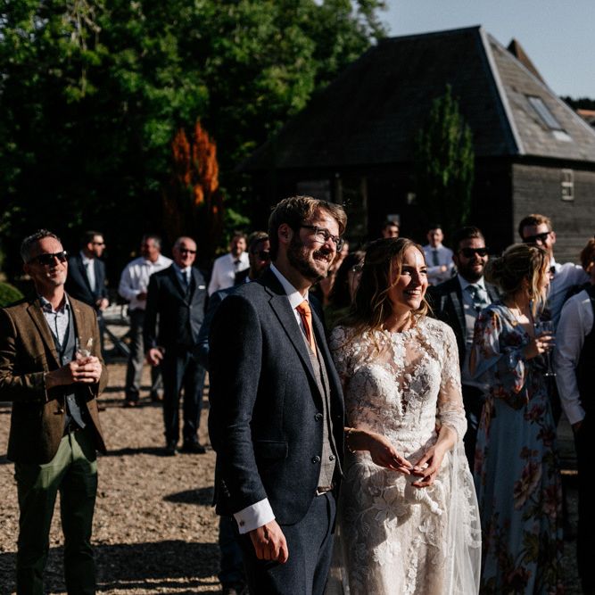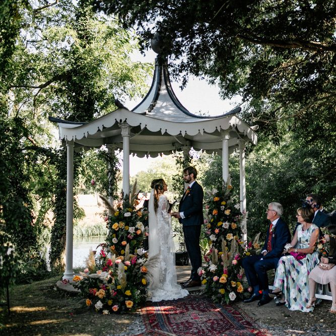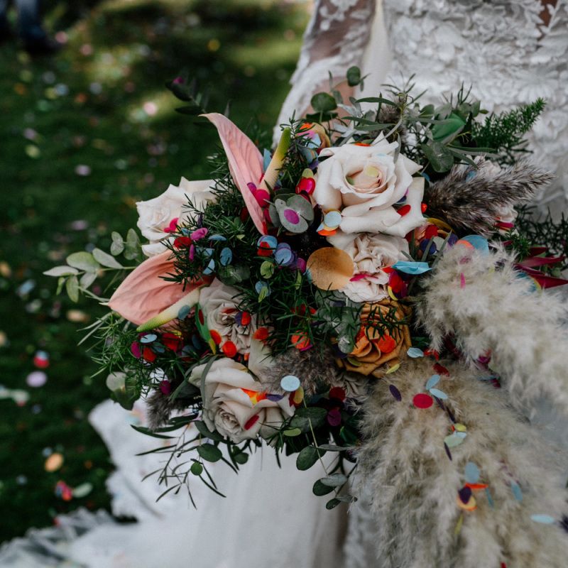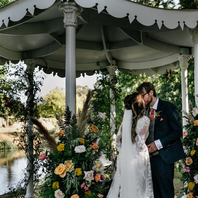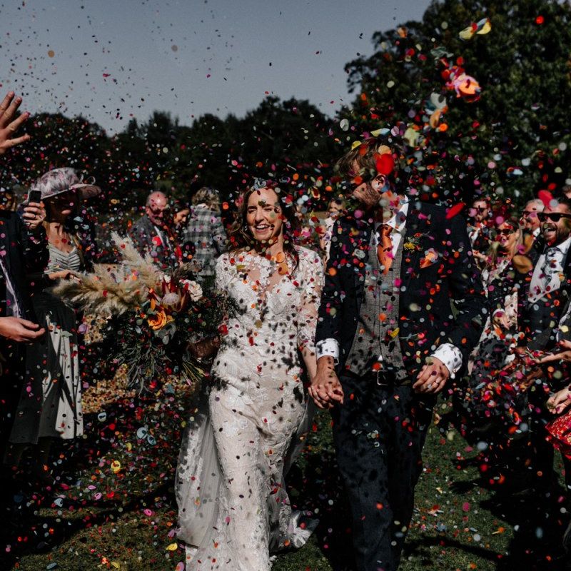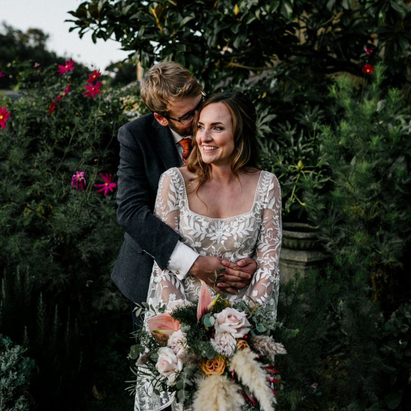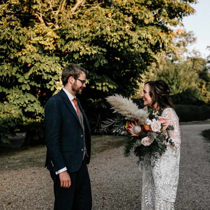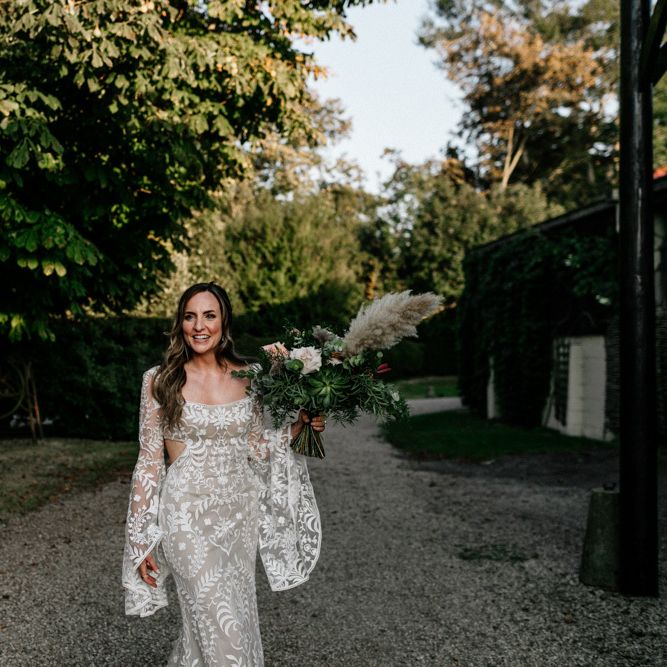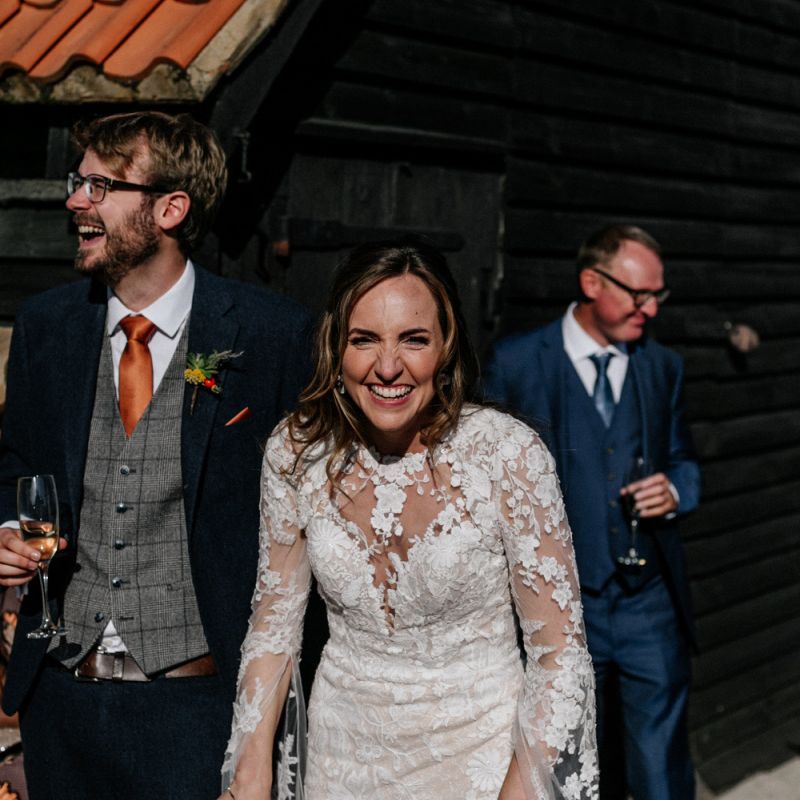 Many of the guests at our wedding made the journey to Kent from abroad or from other parts of the country- we wanted them to come and experience the best of Kent in September. We worked with our caterer to create a menu which showcased local and seasonal ingredients such as locally baked bread, smoked fish and cheeses. For the toasts, we used a sparkling wine produced down the road from the venue. We also used an autumnal colour palette with shades of burgundy, burnt orange, and peach. We hired Persian rugs, macrame chandeliers and had plenty of pampas grass to keep the space looking rustic and bohemian.
