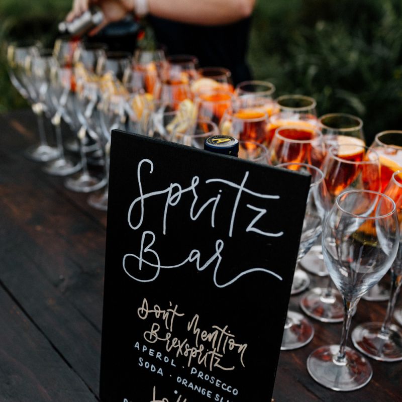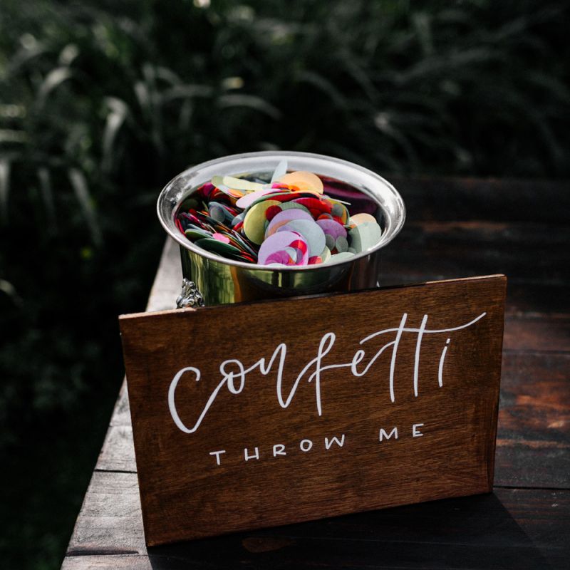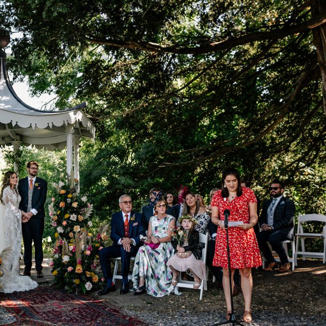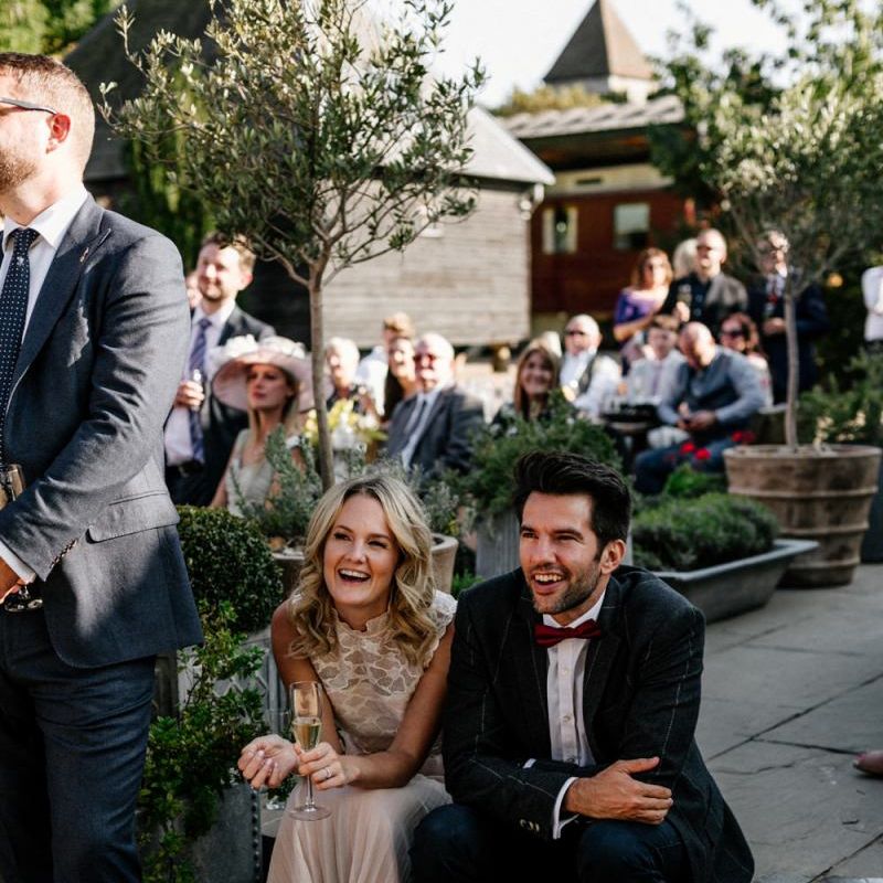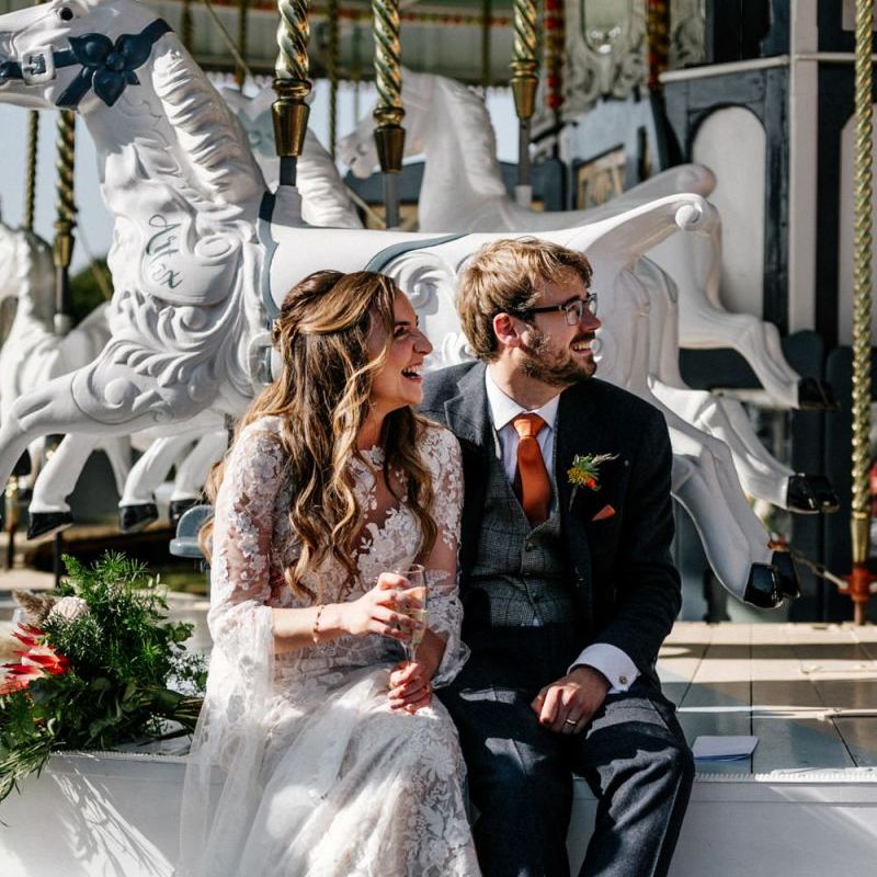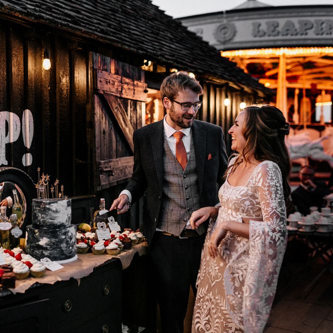 We broke with tradition by having our speeches before dinner outside on the carousel. This worked really well as everyone had had a few drinks and was mingling and by having them standing around us it felt much more interactive. A bonus of this was that the backdrop of the carousel made for really lovely photographs. It also meant we could really enjoy our meal as we didn't have to eat with the nerves of the speeches to come. For dessert, our family made a selection of cakes and brownies which we displayed on a dresser outside with our wedding cake. Dessert is always the part of the wedding where everyone is in a bit of a food-coma and the mood starts to dip. By doing it outside along with the cutting of the cake, it got everyone up and back outside to make the most of the amazing weather.